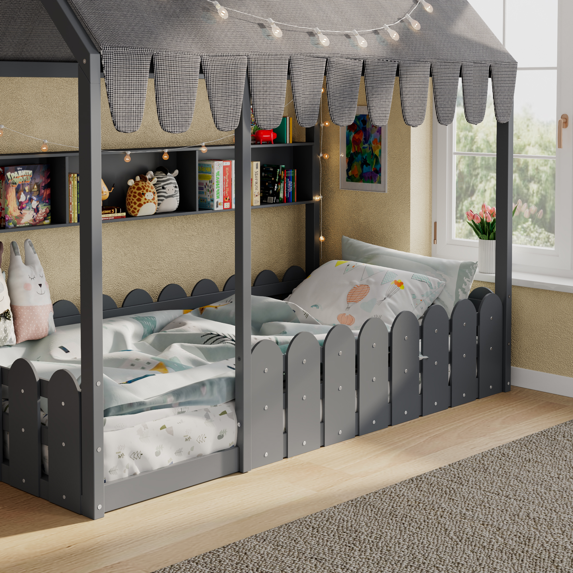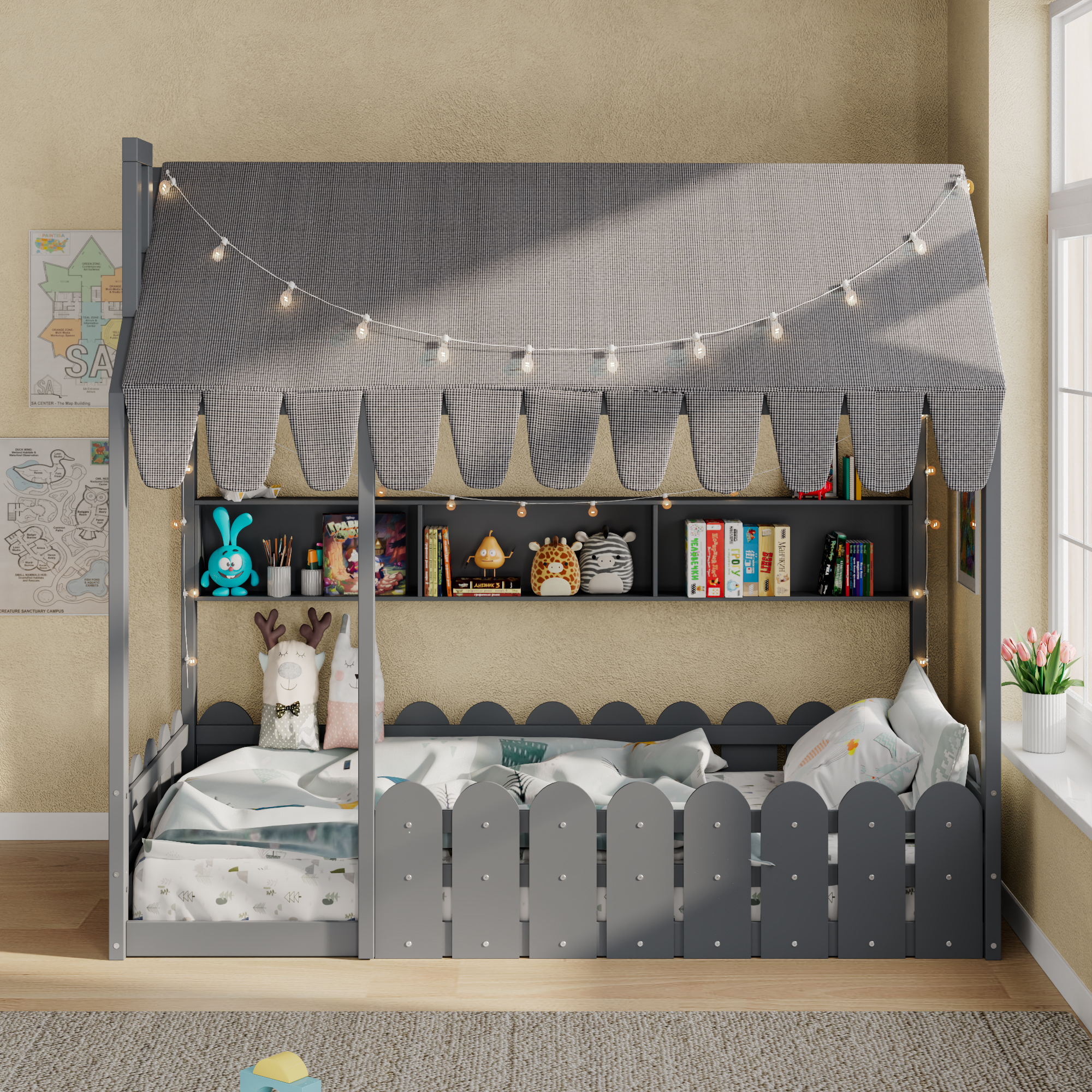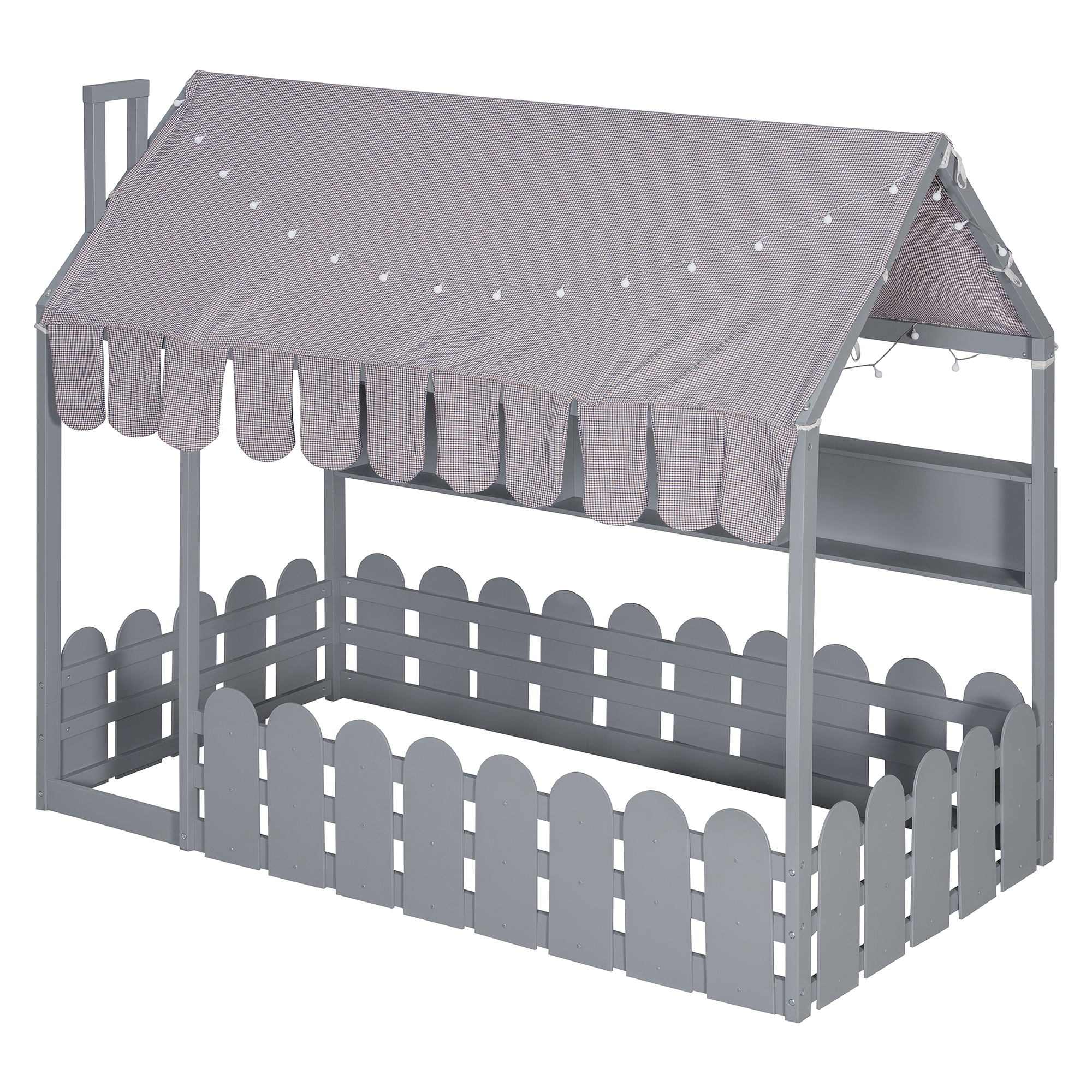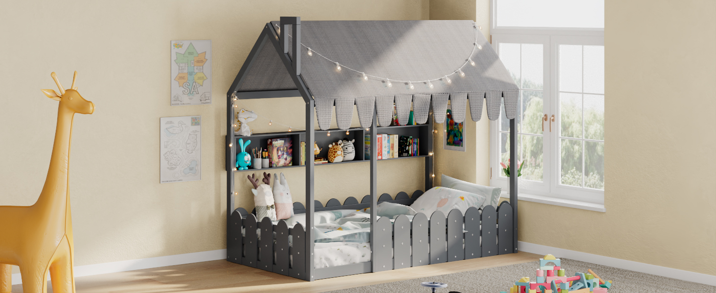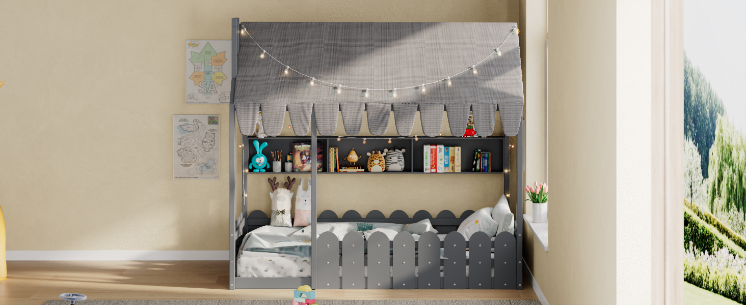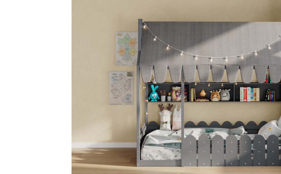 - Secure Fence Railings & Durable Wood Build: The bed is surrounded by a charming fence-style railing that provides a secure 360-degree boundary, ensuring your child stays safely tucked in all night long. The fence design not only adds a rustic, playful aesthetic to the room but also ensures maximum visibility and breathability.