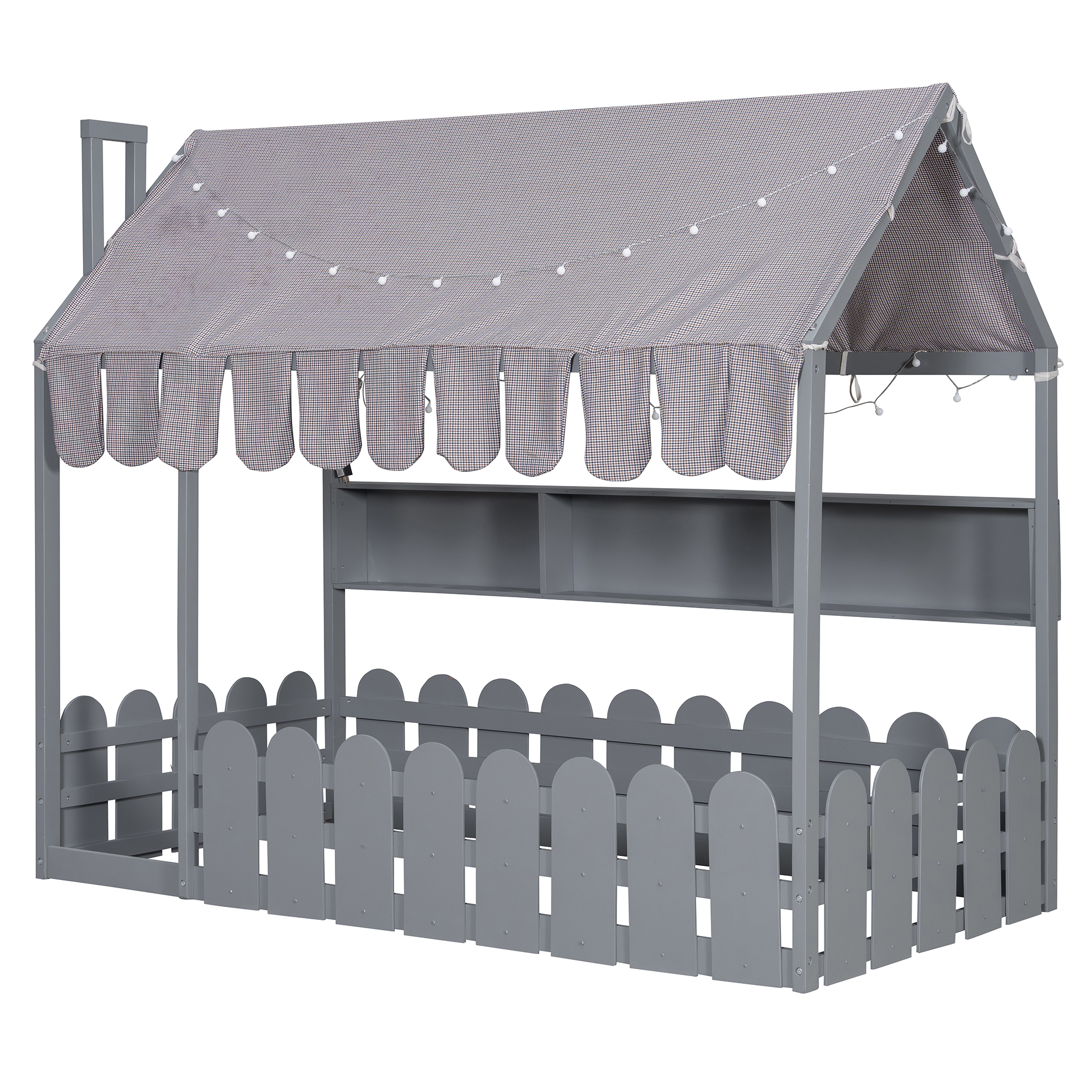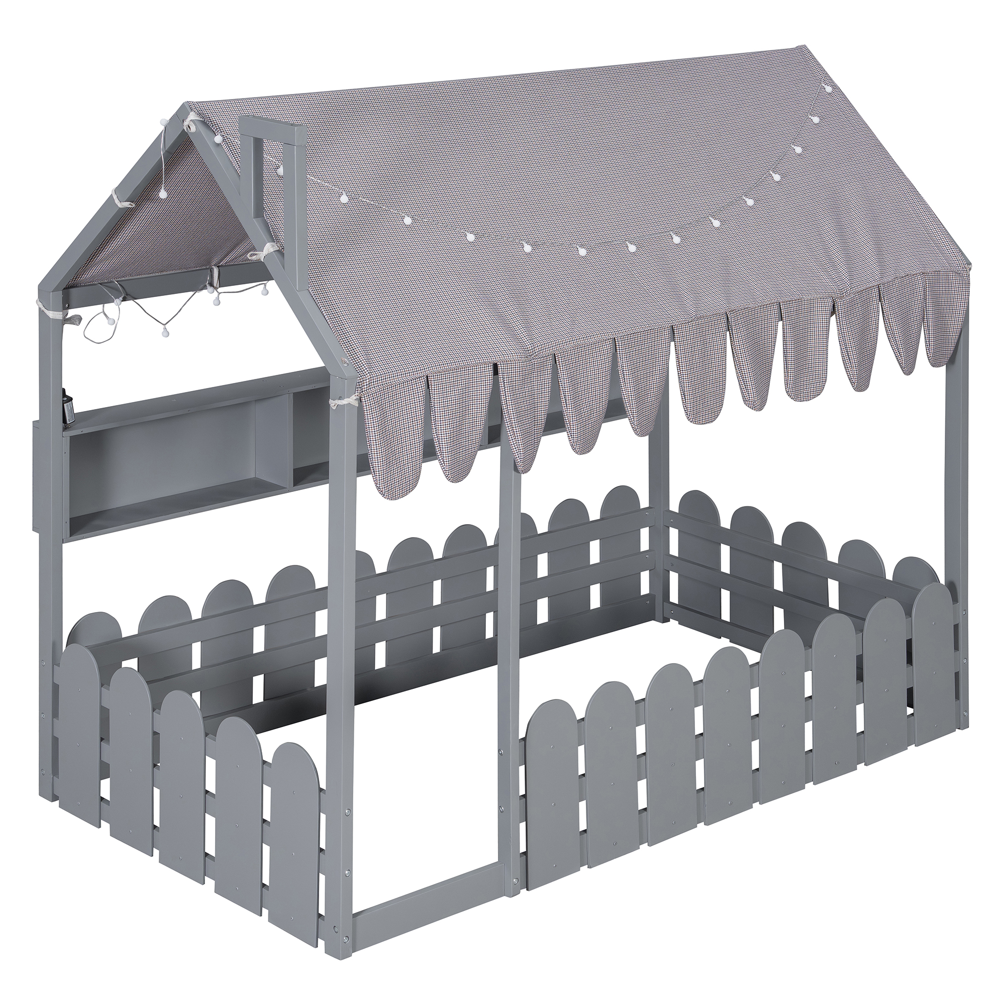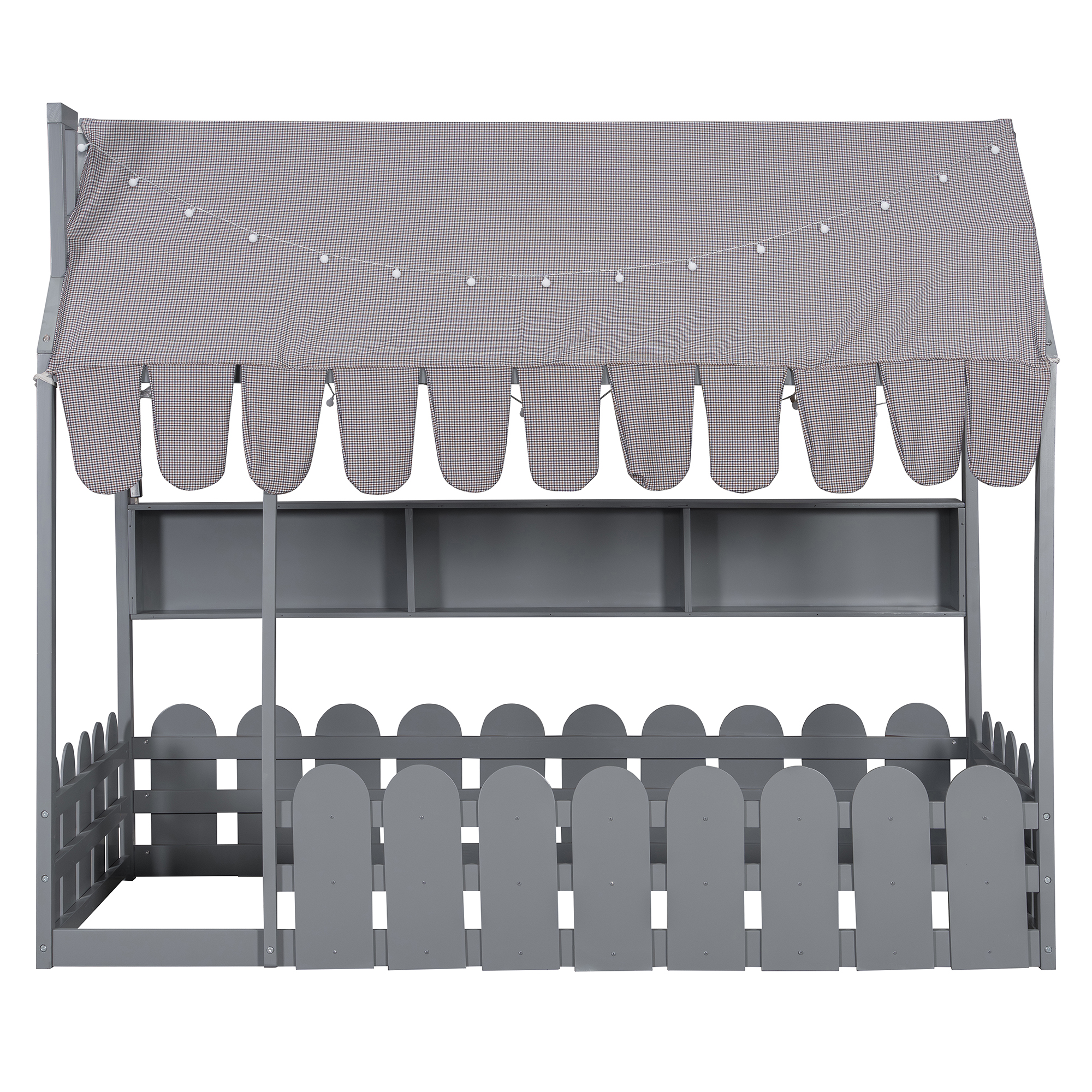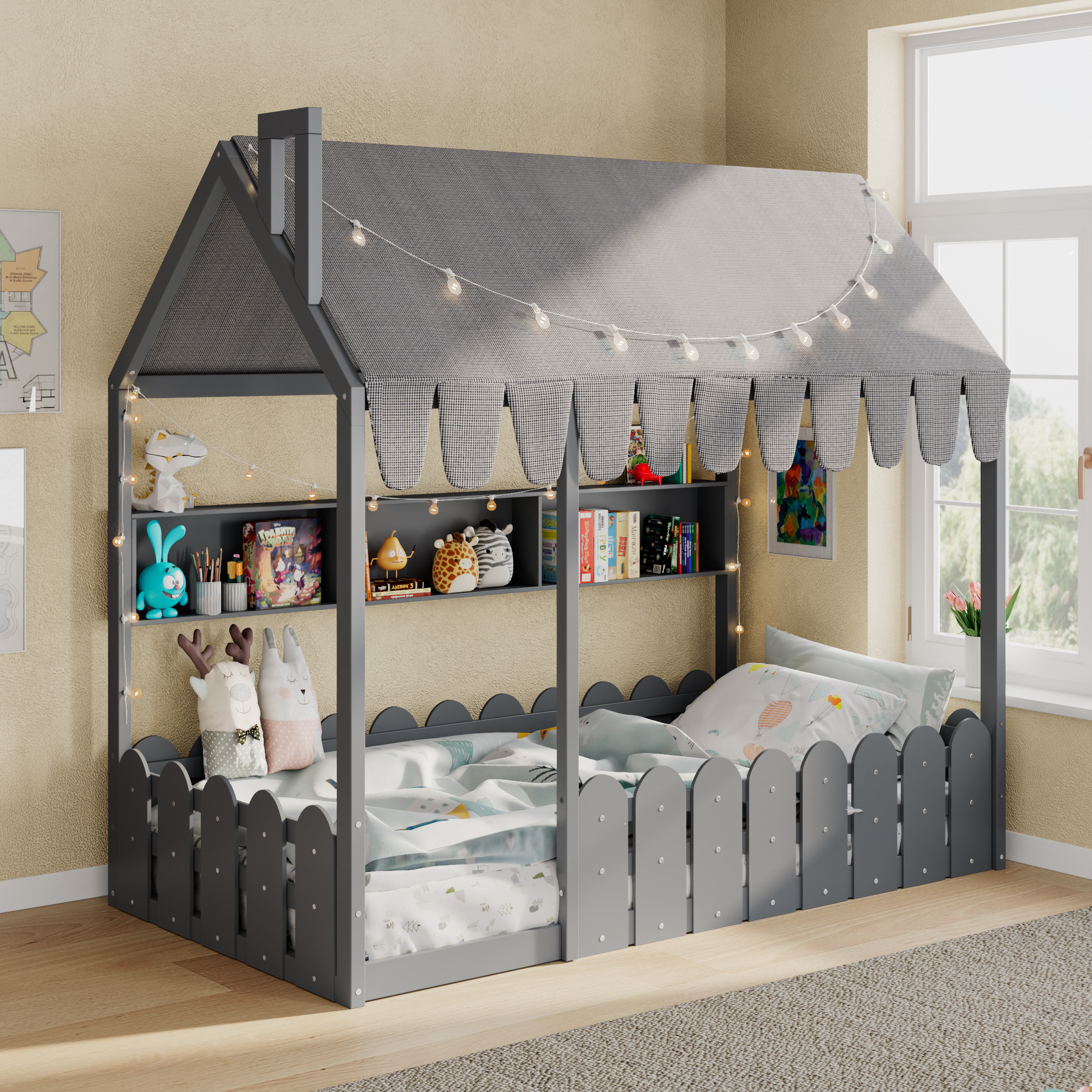 - Secure Fence Railings & Durable Wood Build: The bed is surrounded by a charming fence-style railing that provides a secure 360-degree boundary, ensuring your child stays safely tucked in all night long. The fence design not only adds a rustic, playful aesthetic to the room but also ensures maximum visibility and breathability.