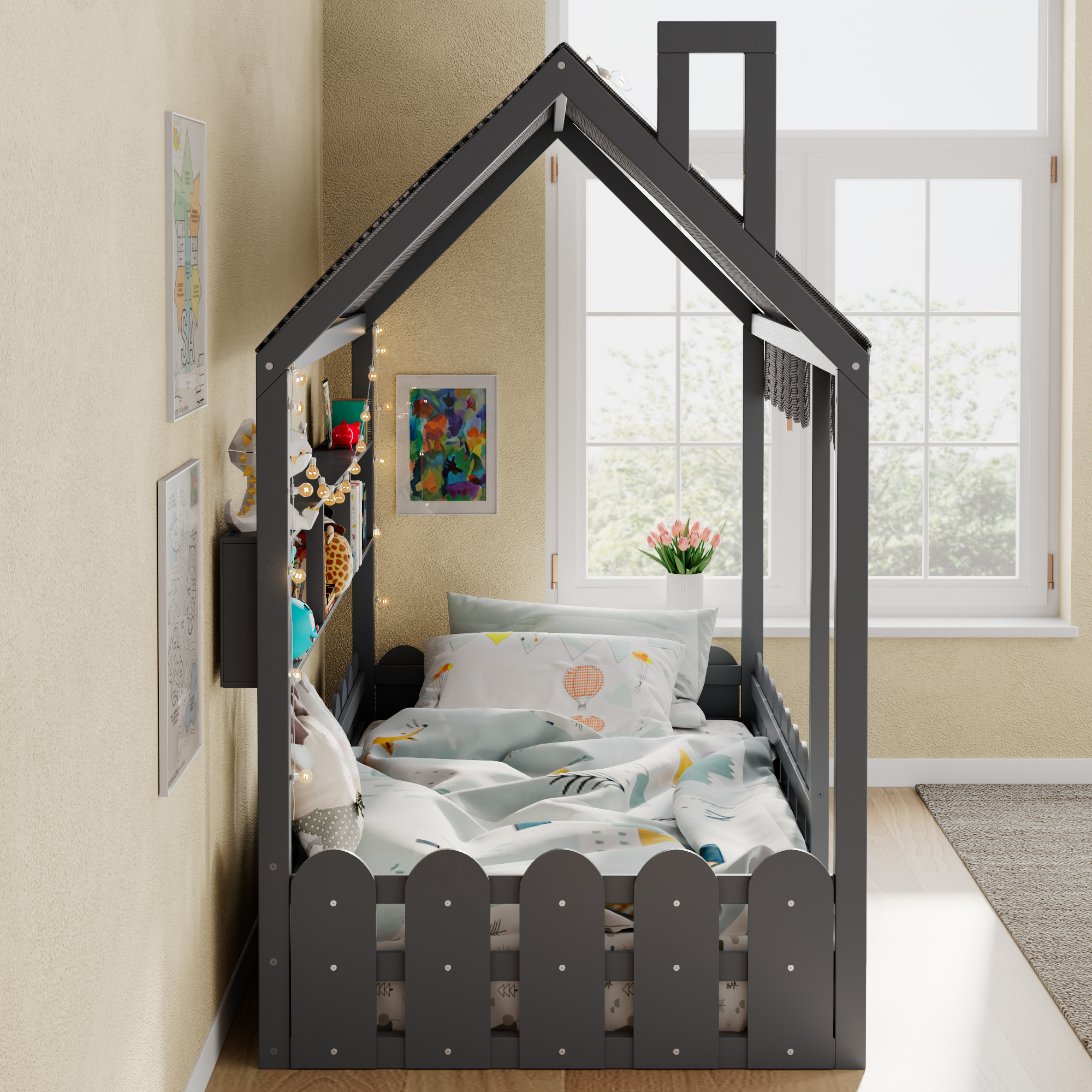 - Two Size Options & Customizable Chimney:To perfectly fit your space and your child’s needs, this house bed is available in both Twin and Full sizes. Whether you have a compact nursery or a spacious playroom, you can choose the dimensions that work best for you. Adding to its versatility, the charming chimney can be installed on either the left or right side of the roof frame. This modular design allows you to arrange your furniture freely according to your room’s layout or window placement.