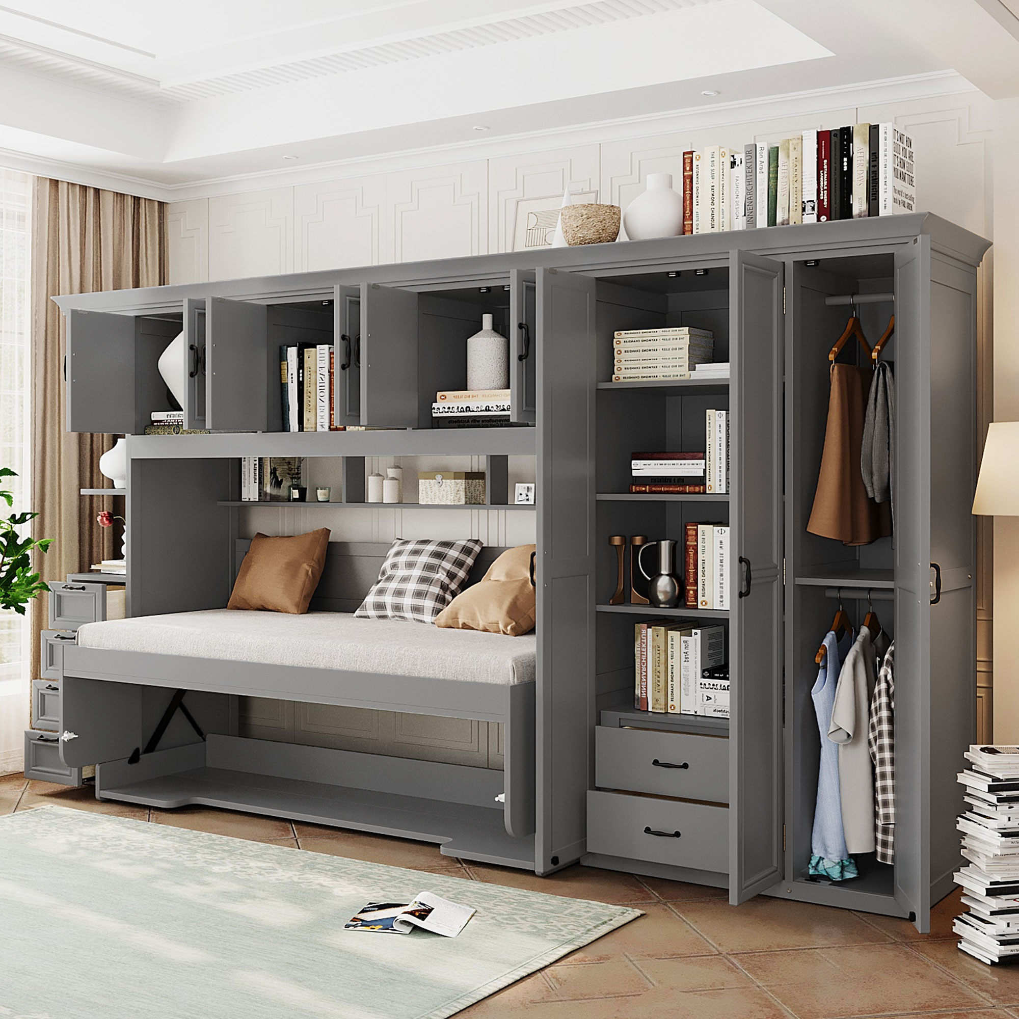 - Powerful Storage Capacity – Featuring three top cabinets, a side wardrobe with versatile internal compartments, plus four drawers and open shelves on the other side, this bed provides abundant storage options for clothes, books, and daily essentials.