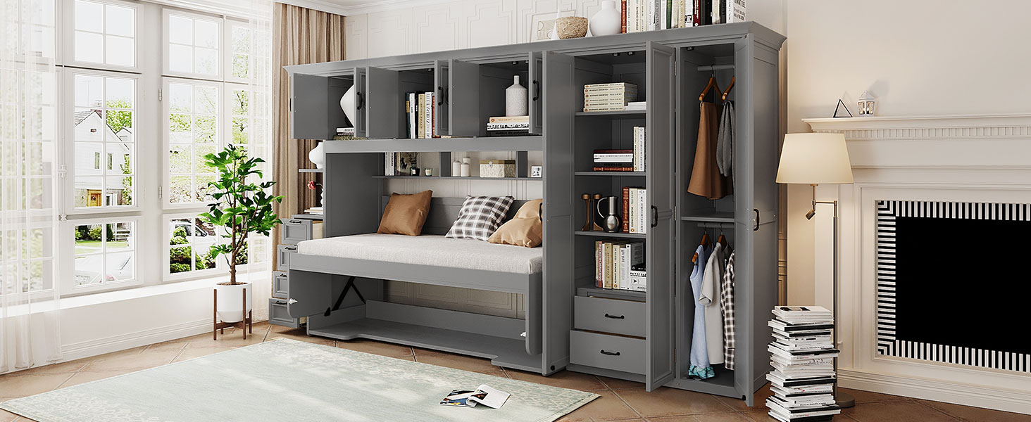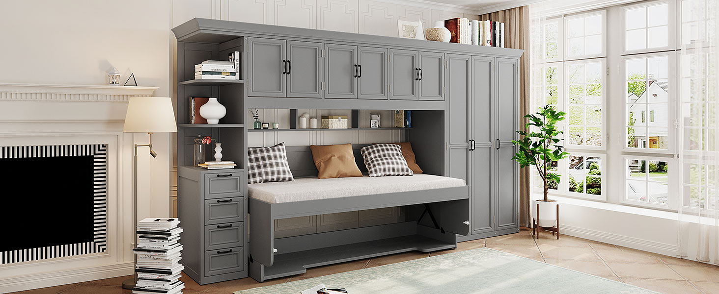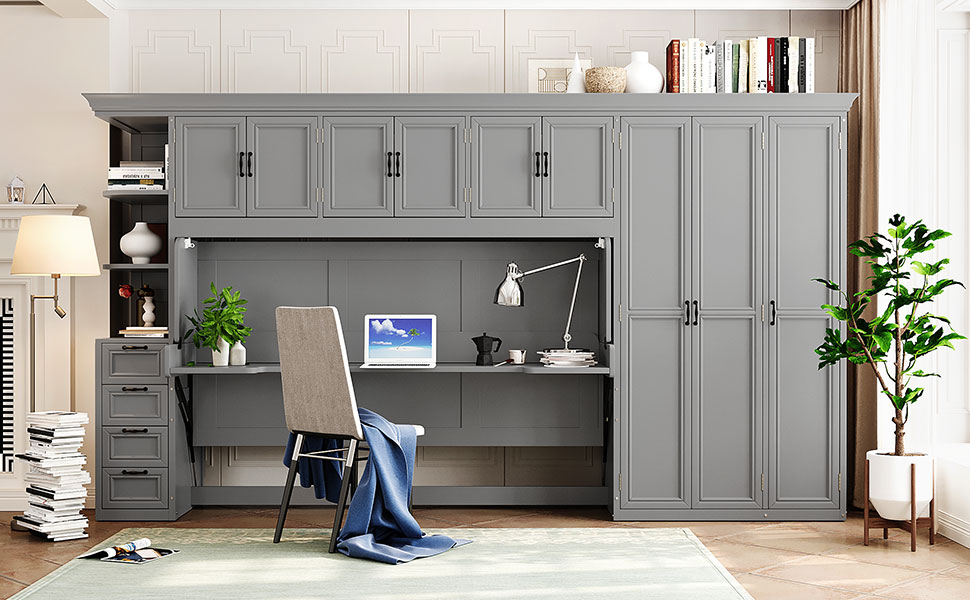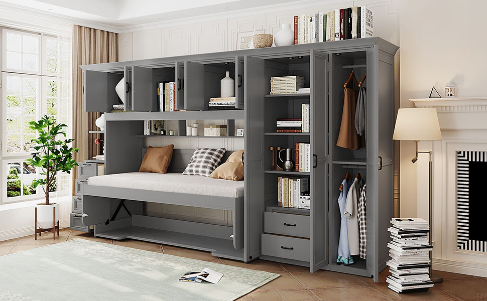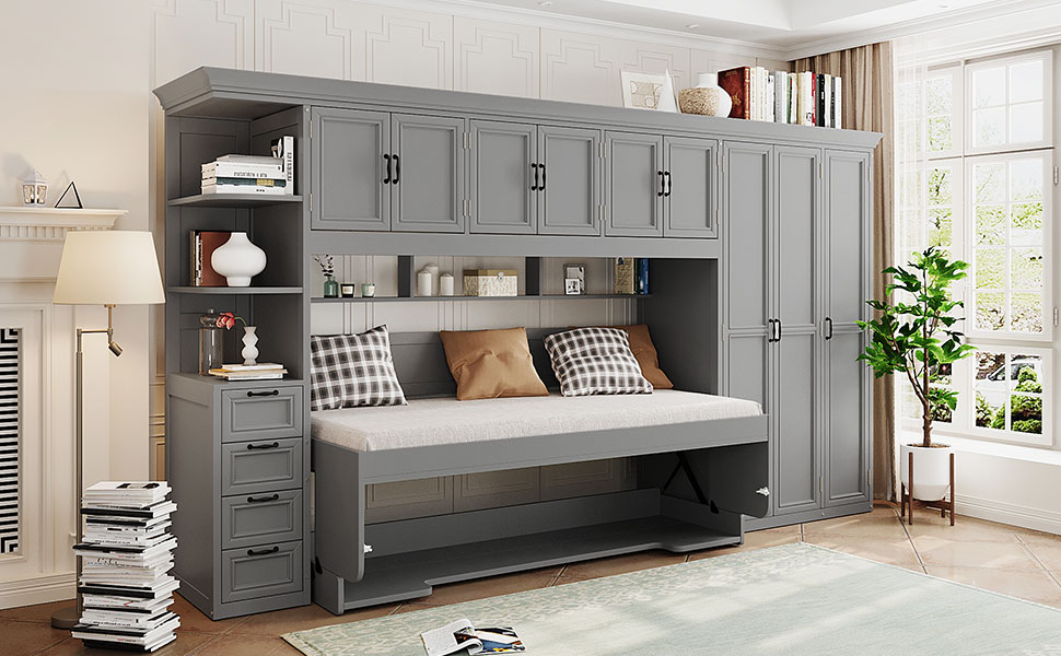 - Space-Saving Design – This twin size Murphy bed doubles as a temporary desk when not in use, giving you the flexibility to switch between work and rest in seconds, ideal for small or multifunctional living areas.