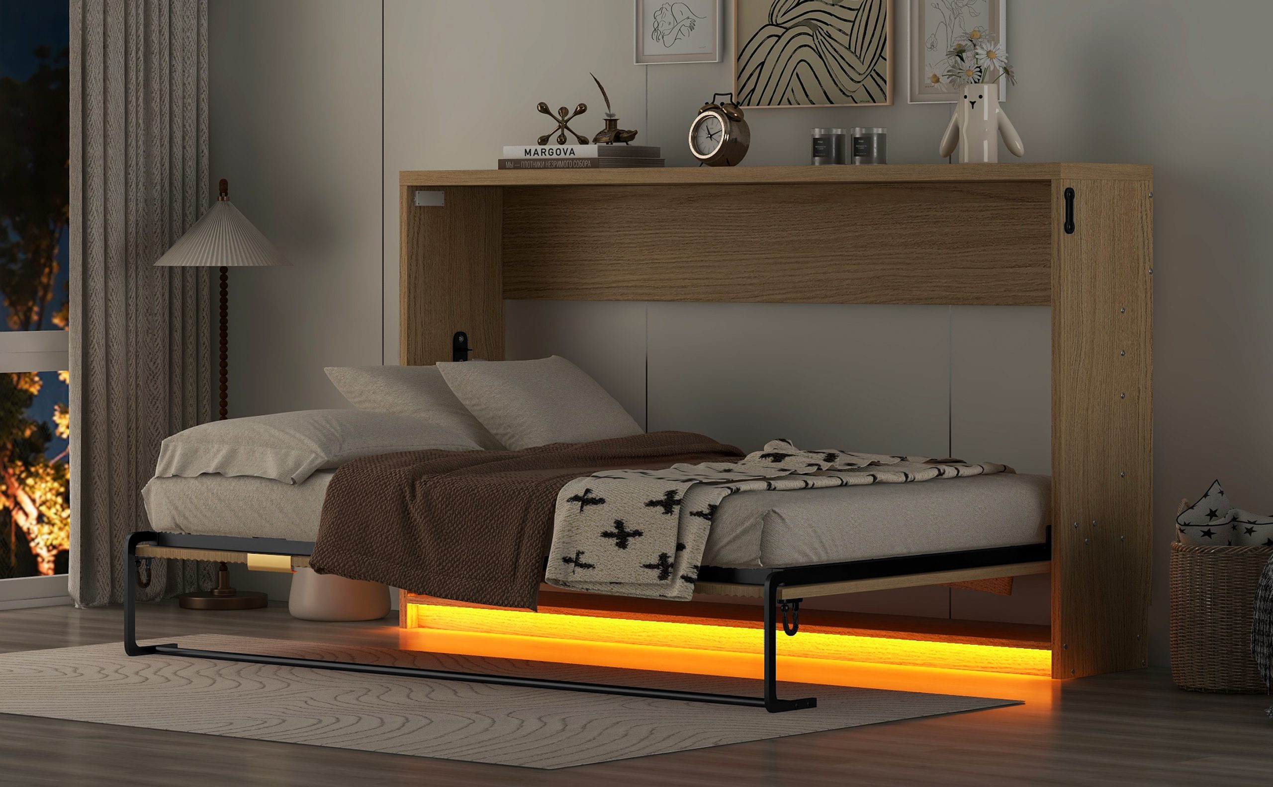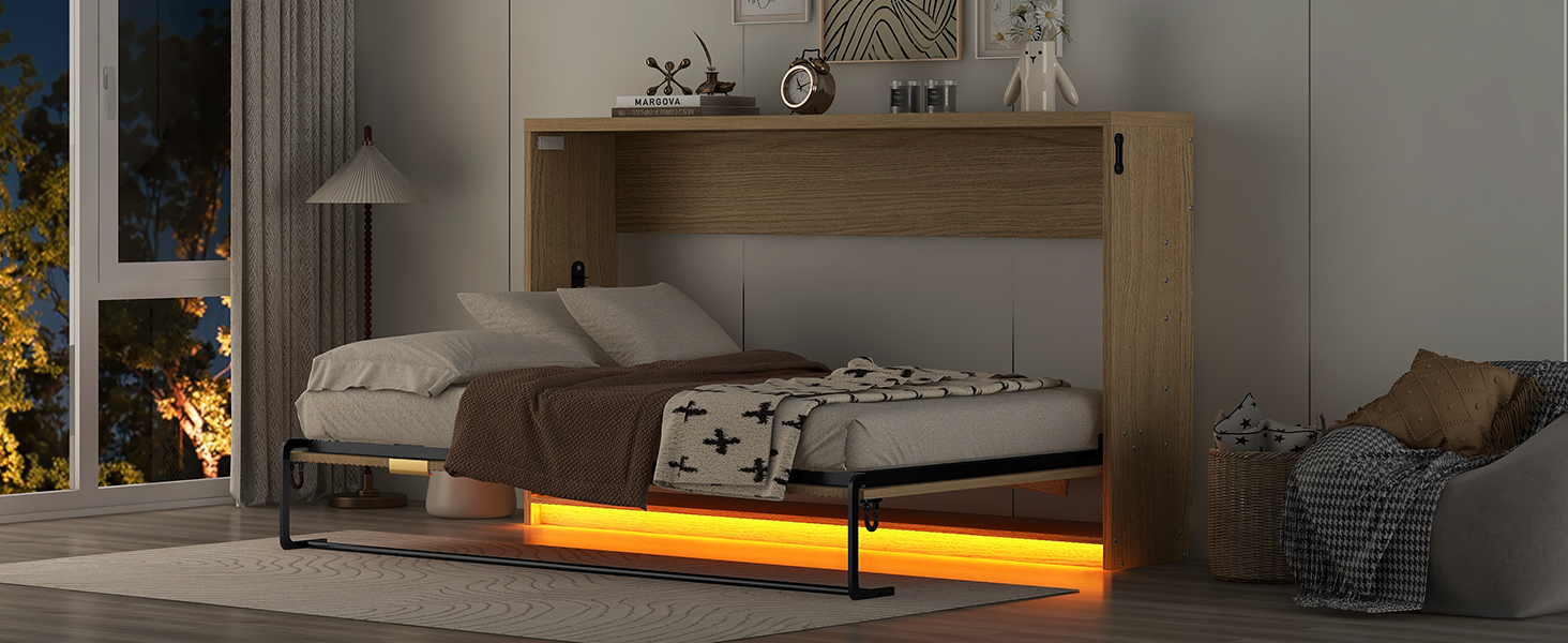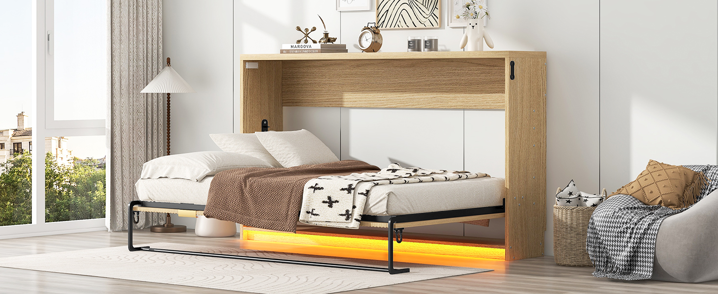 - [Bed with LED Light] In addition,this cabinet-type bed frame is equipped with LED lights, which can serve as night lights, emitting soft light to create a warm and comfortable atmosphere for you. When you get up at night, the soft light won’t irritate your eyes and is convenient for you to move around.