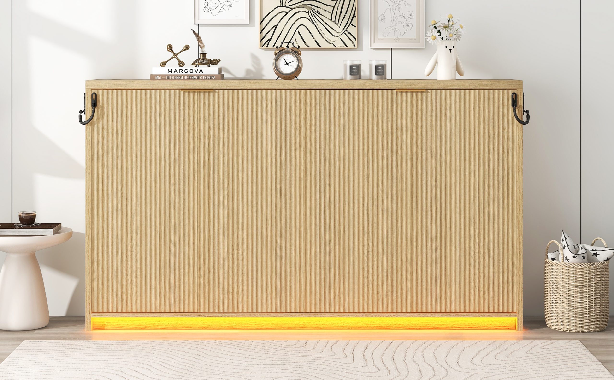 - [Clever Design] The space in the cabinet can perfectly accommodate your bed, and the legs of the bed are designed to fit your mattress and sheets just right, so you don’t need to worry about bedding falling out of the cabinet alone the next time you use it.