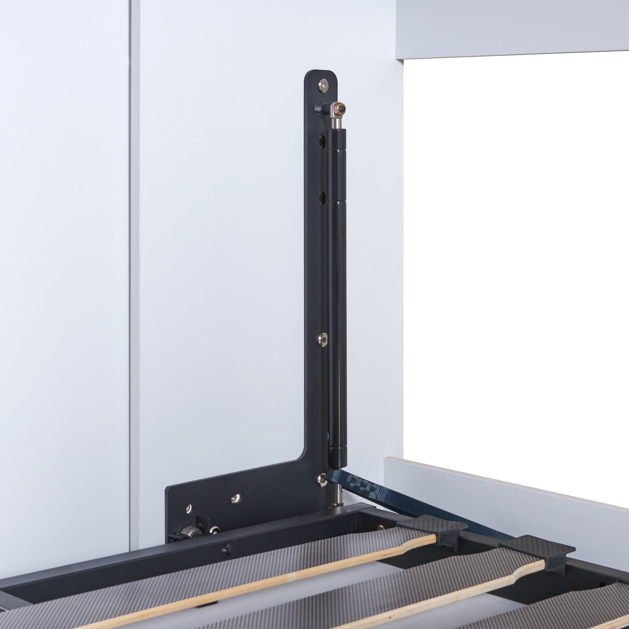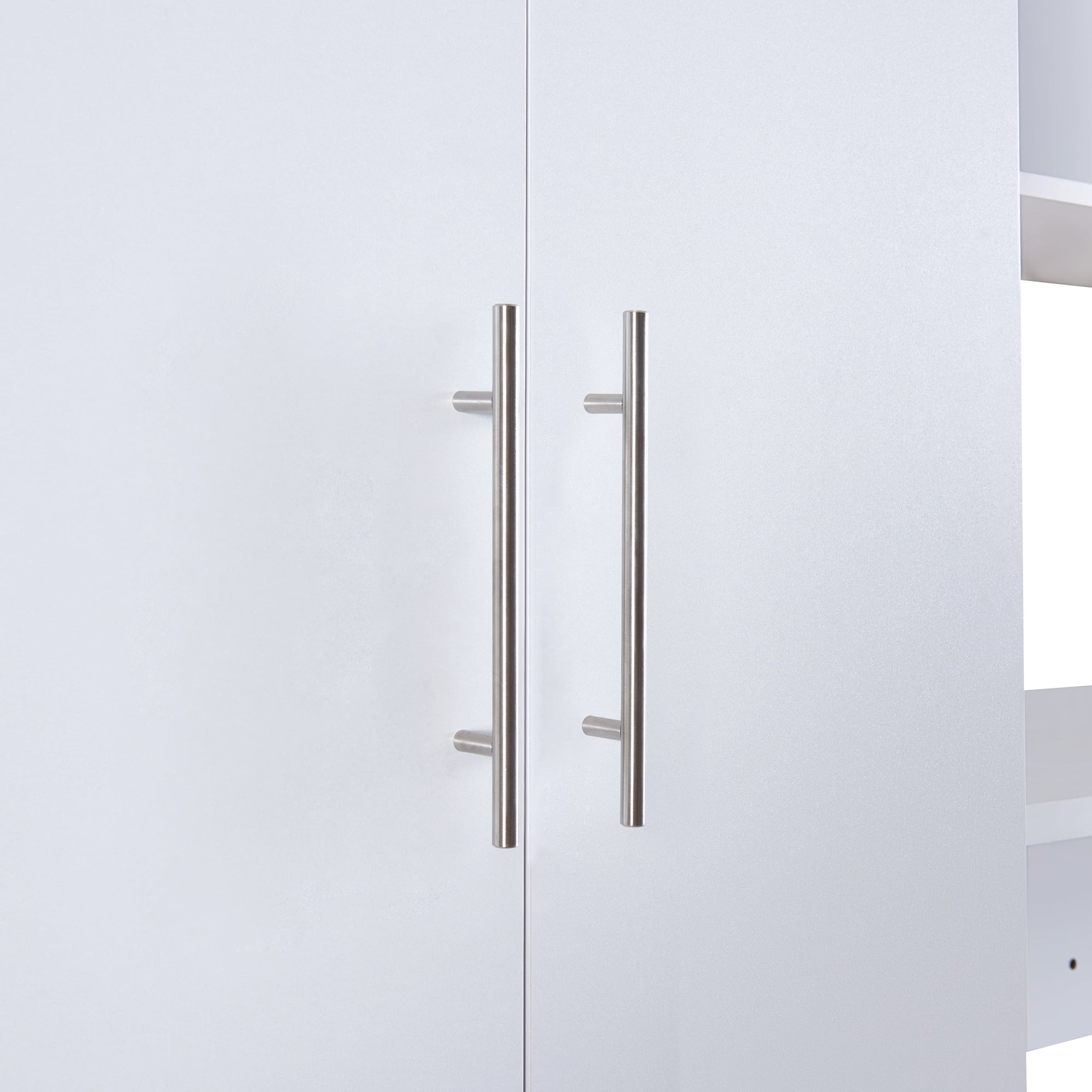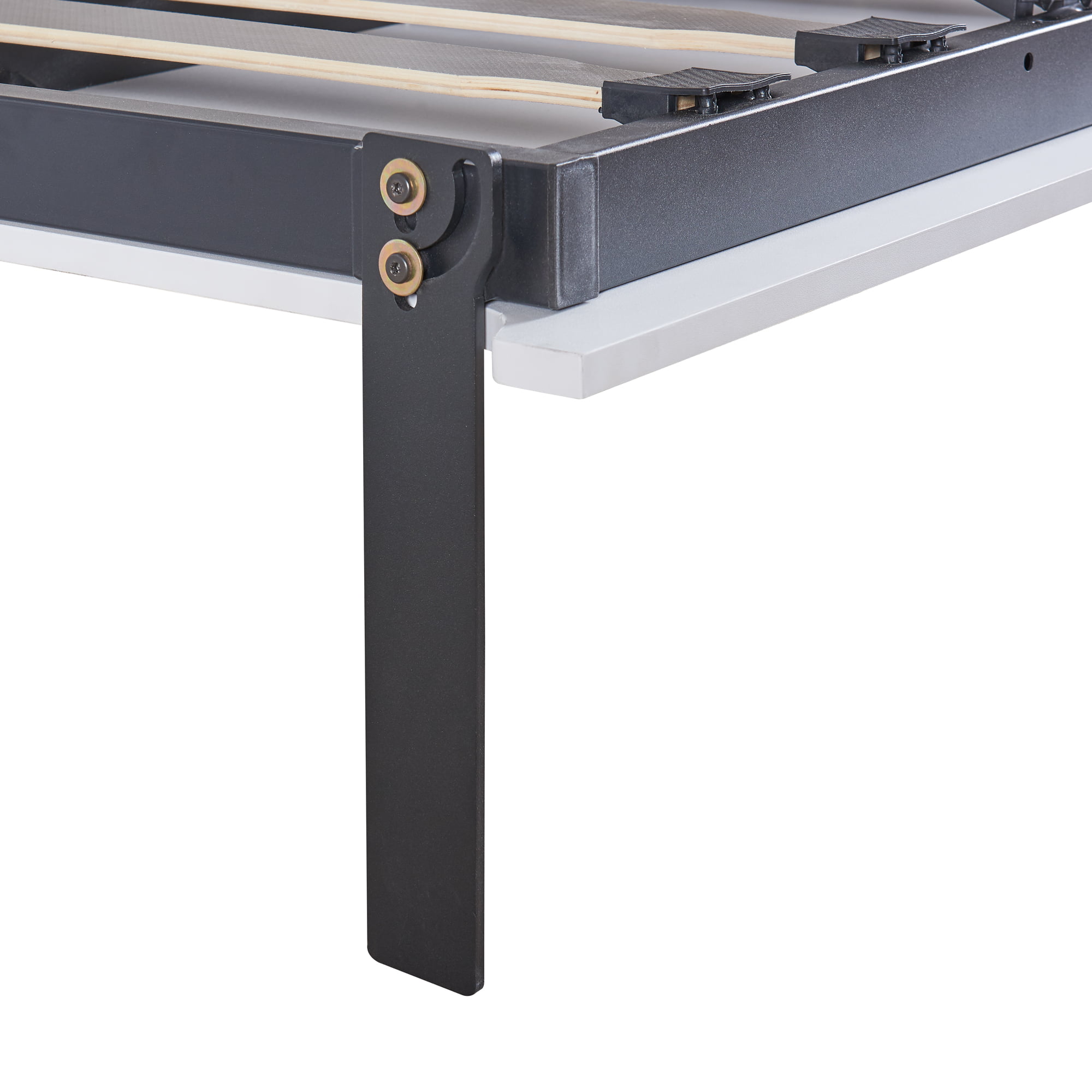 This platform murphy bed gives you a spot to sleep without sacrificing the style of your guest room or home office. It folds against the wall when you need extra floor space, and it blends seamlessly into the background as a bookcase or cabinet when not in use. The structure is crafted from MDF and metal, and it comes in a sleek, solid finish for a modern touch.Several storage compartments,cabinets, drawers, and wardrobe to tuck away items and display decor. And whether you need to do some work or indulge in entertainment activities, the built-in desk provides a convenient and adaptable solution.