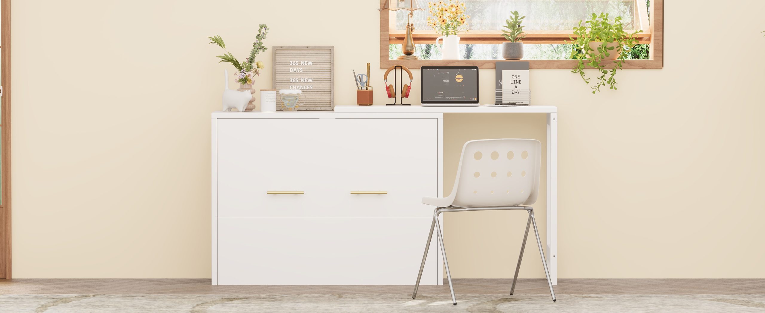 - Murphy Bed with Desk:The desk that comes with this Murphy bed is fully adjustable and can be positioned in multiple ways to suit your space. Whether placed in a straight line with the dresser or arranged in an L-shape, it offers flexible layout options to accommodate compact rooms of various shapes and sizes. A perfect fit for maximizing functionality in small apartments, studios, or guest rooms.