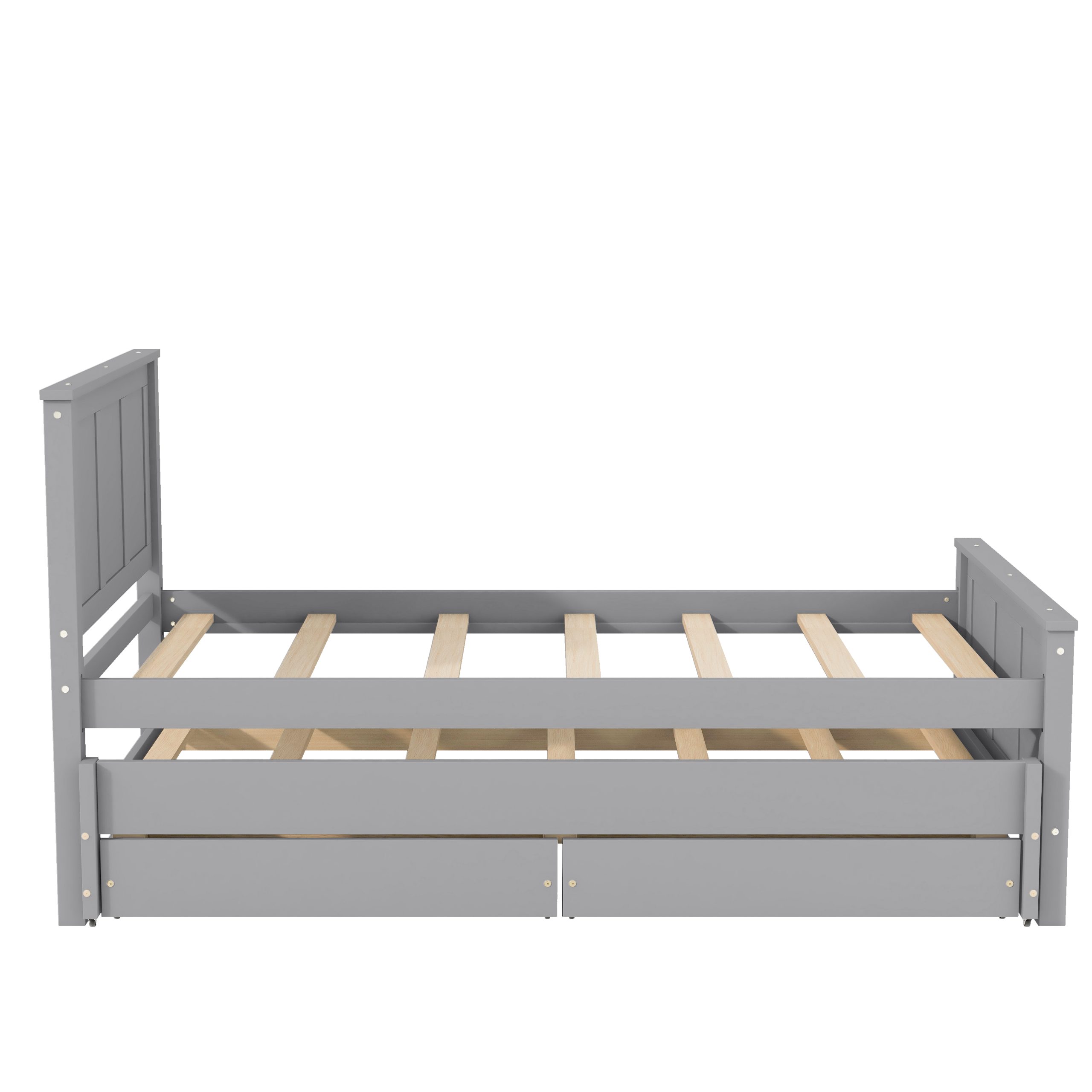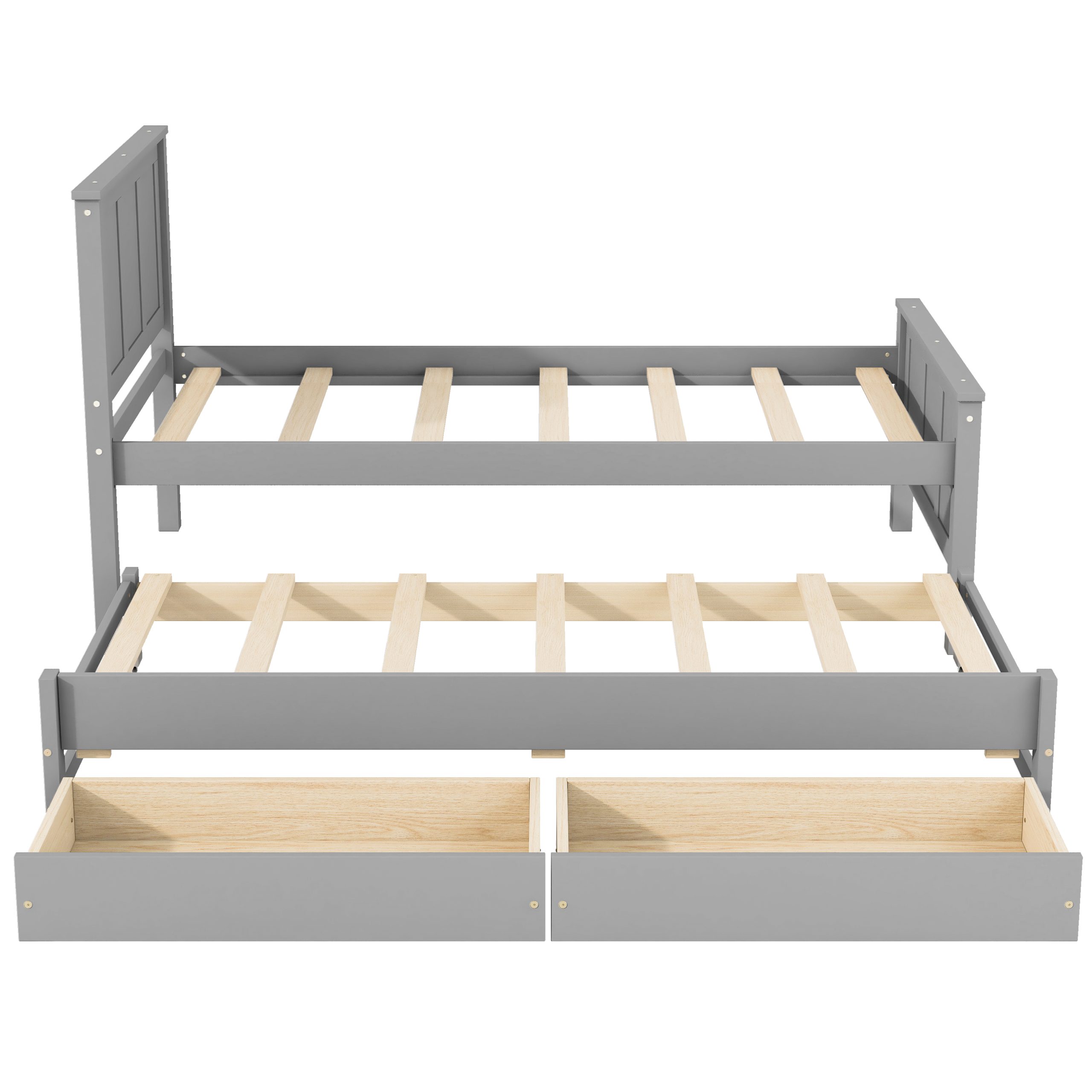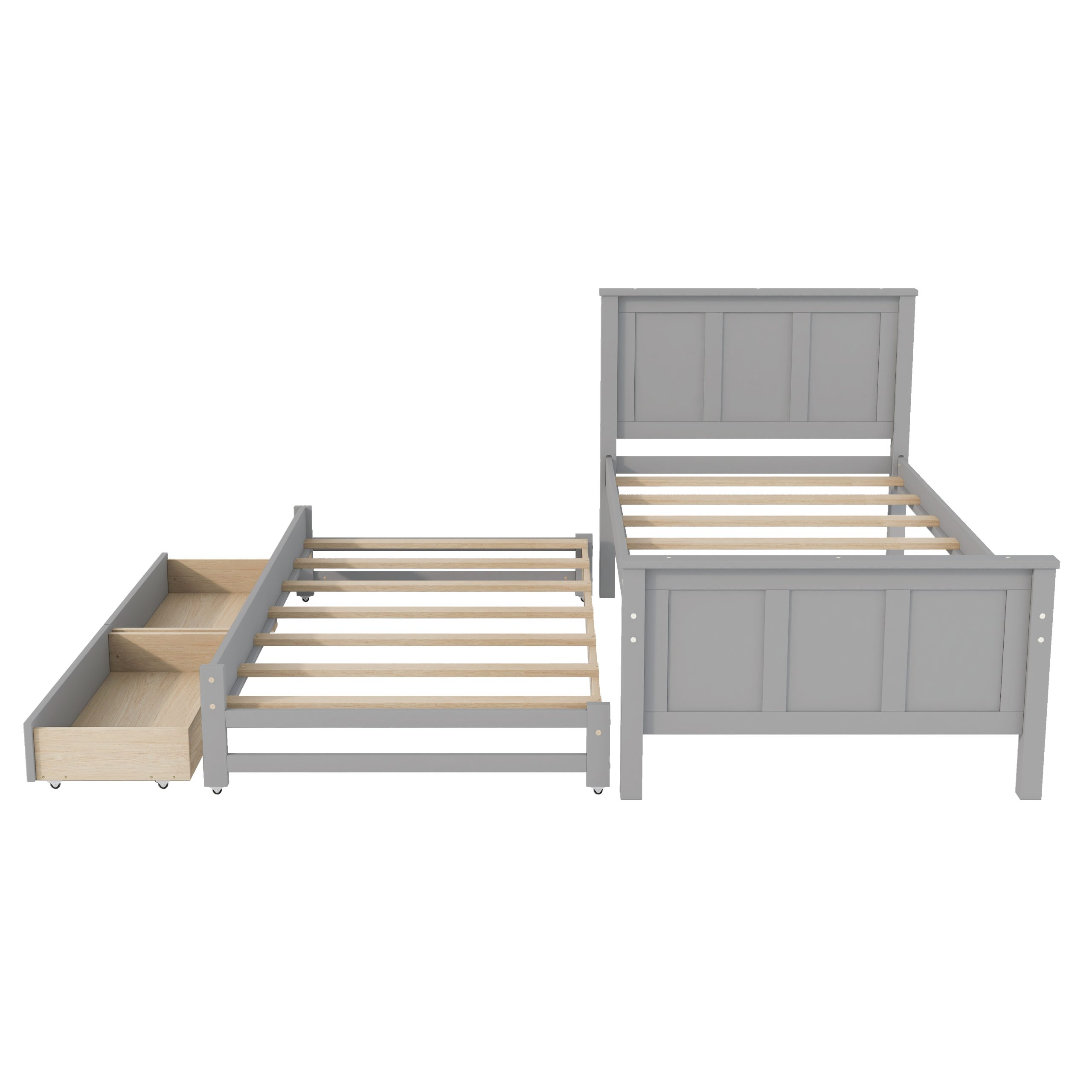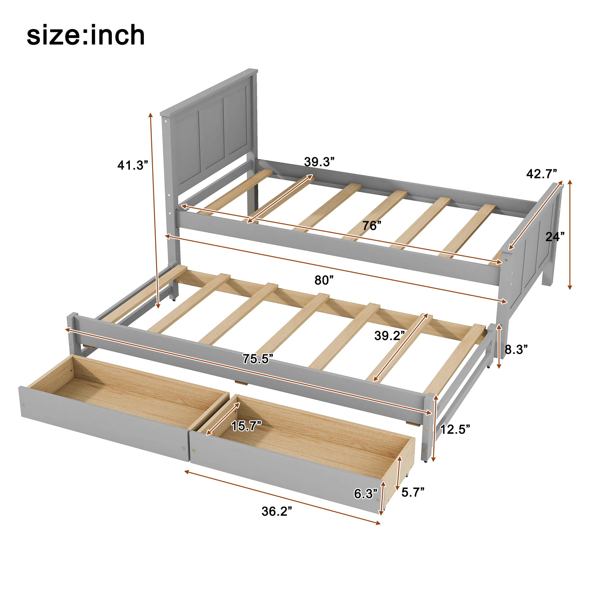 (Price Includes Shipping, No Tax Fee.)This bed offers a variety of features to meet your various needs. The bed comes with two drawers with rollers, which are very convenient to use and offer excellent storage for your belongings or bedding. There is a trundle under the bed, perfect for an overnight stay or friends, perfect for a bedroom or guest room. With its minimalist lines and appearance, this bed adds a touch of rustic style to your room, elegant and suitable for any room style. Made of solid pine wood and high-quality MDF, the bed provides strong support and will serve your family for many years.