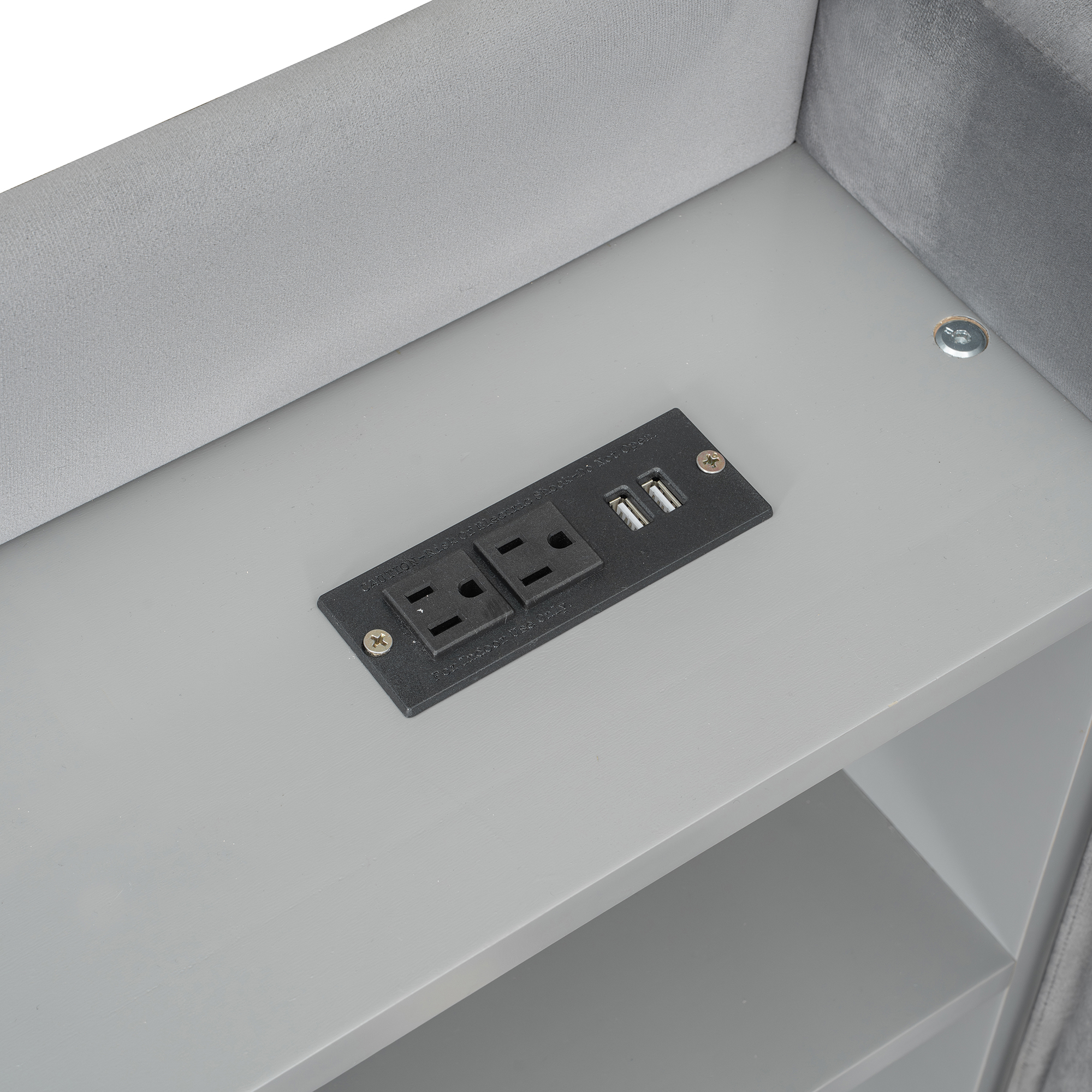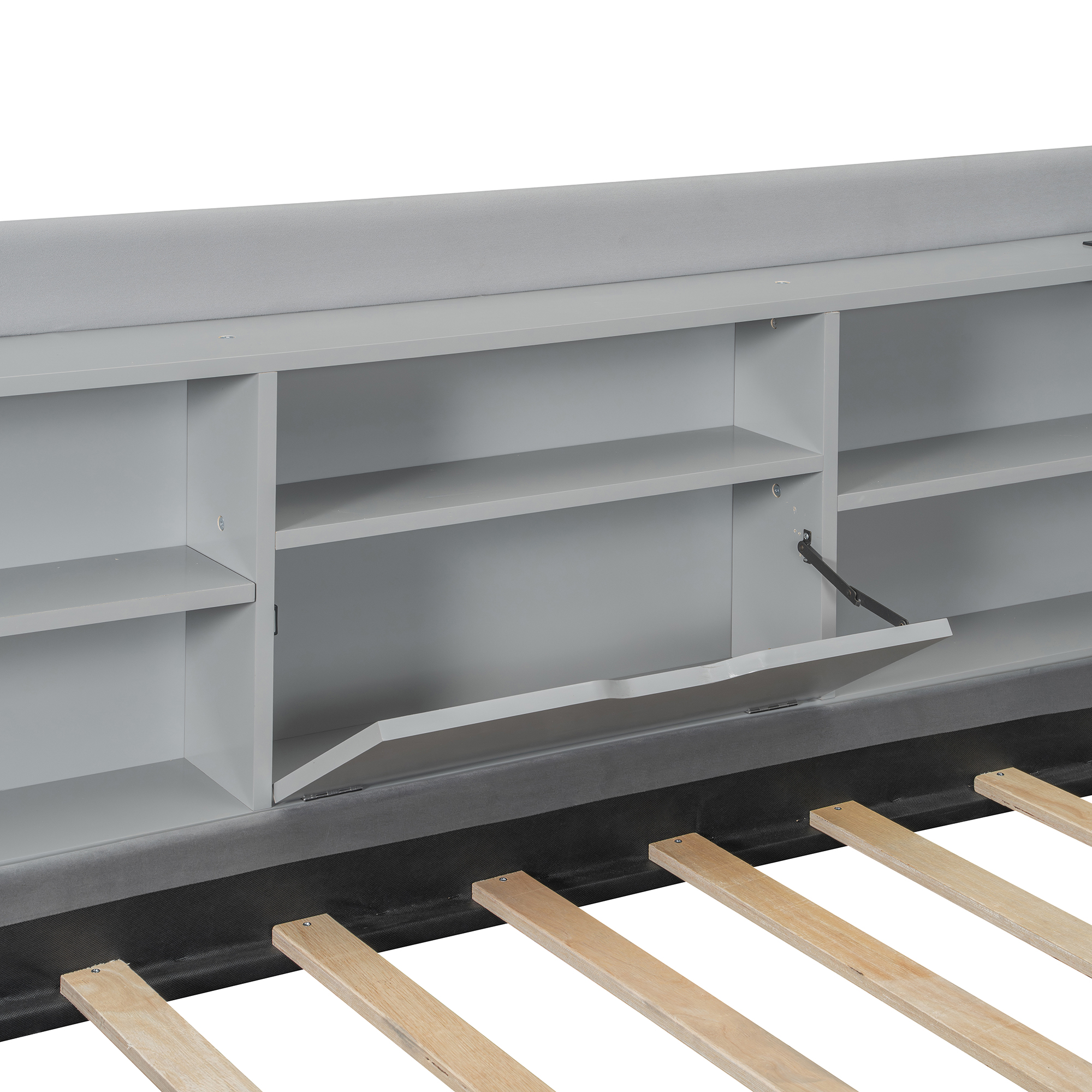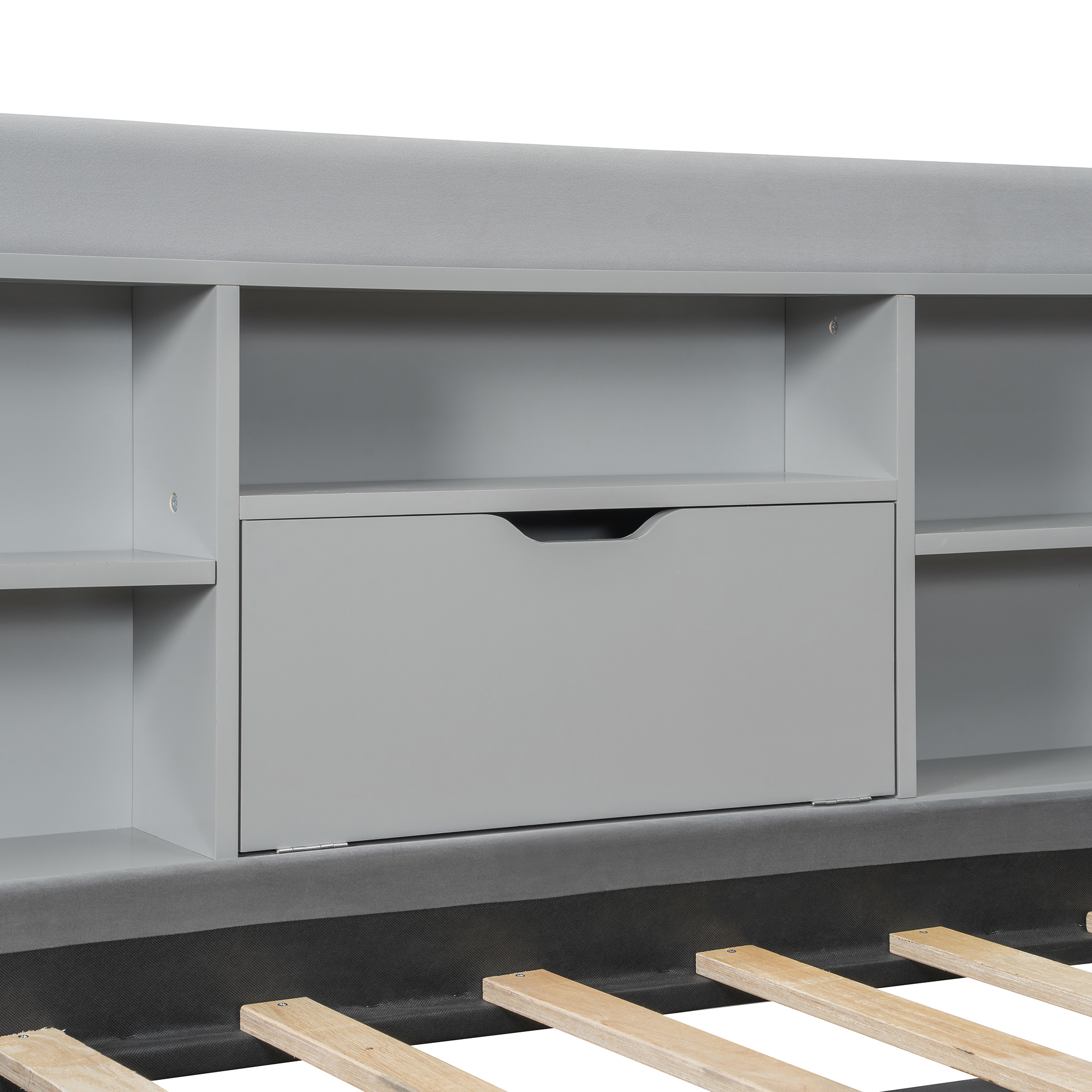 Twin Size Upholstered Daybed with Trundle, Storage Shelves, USB & Outlet