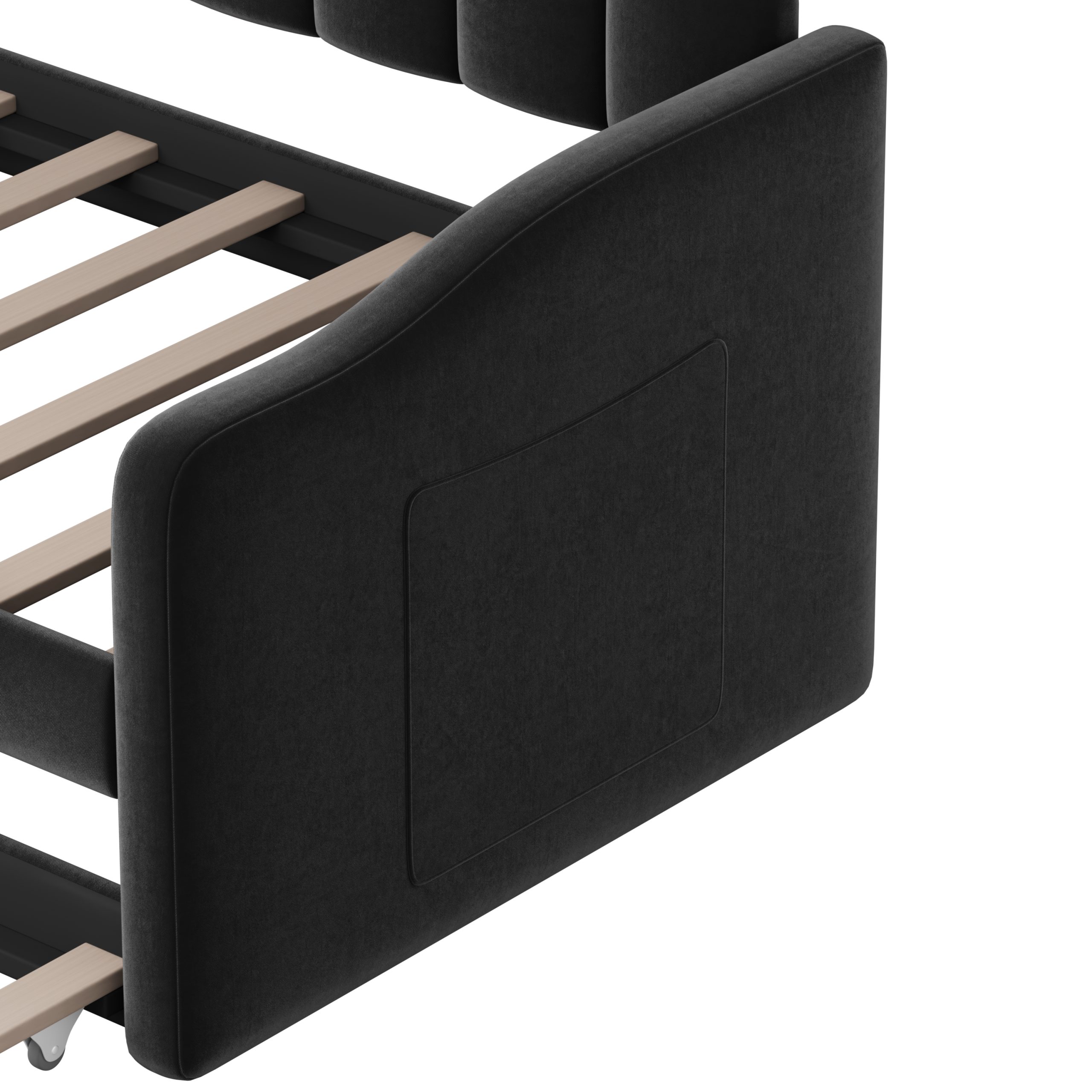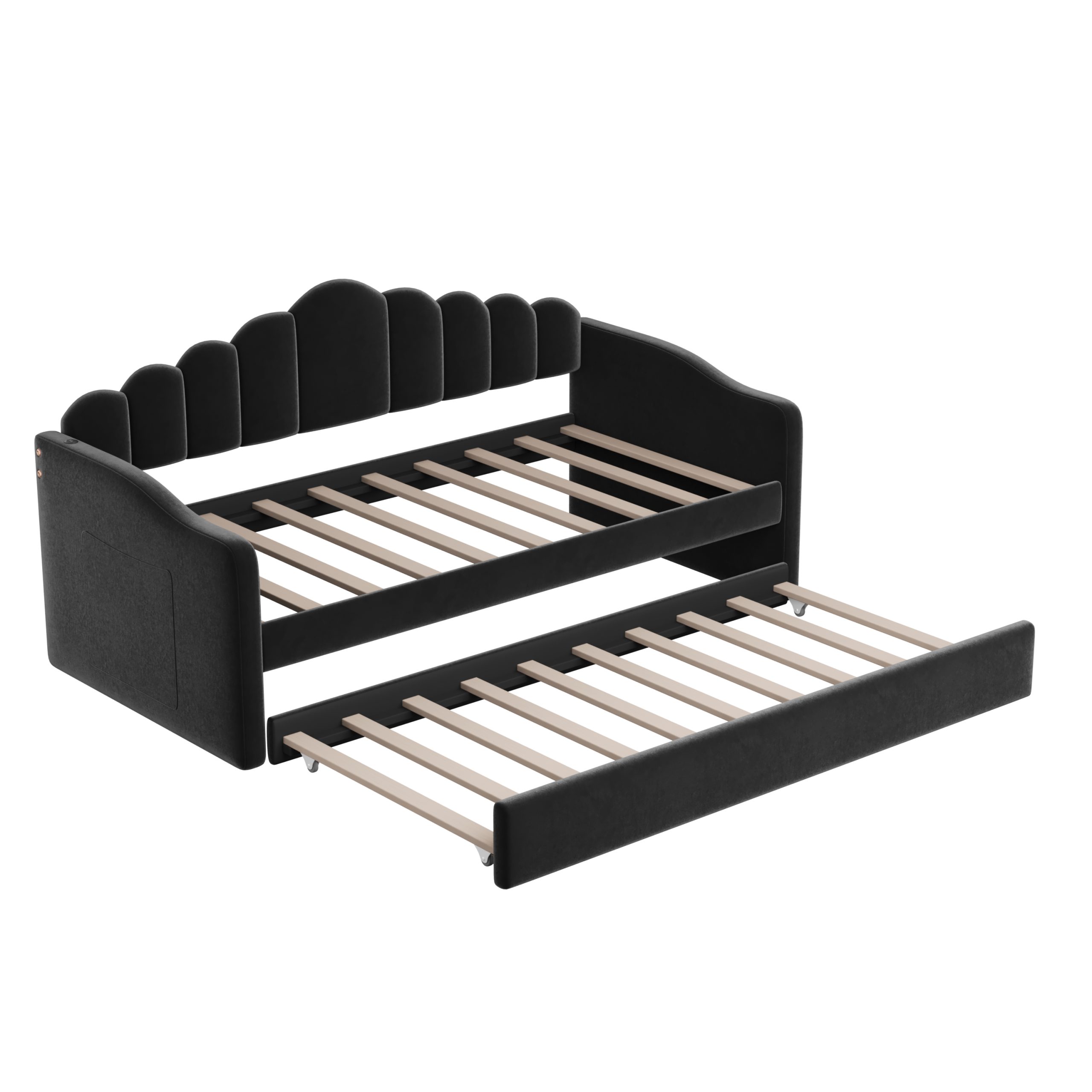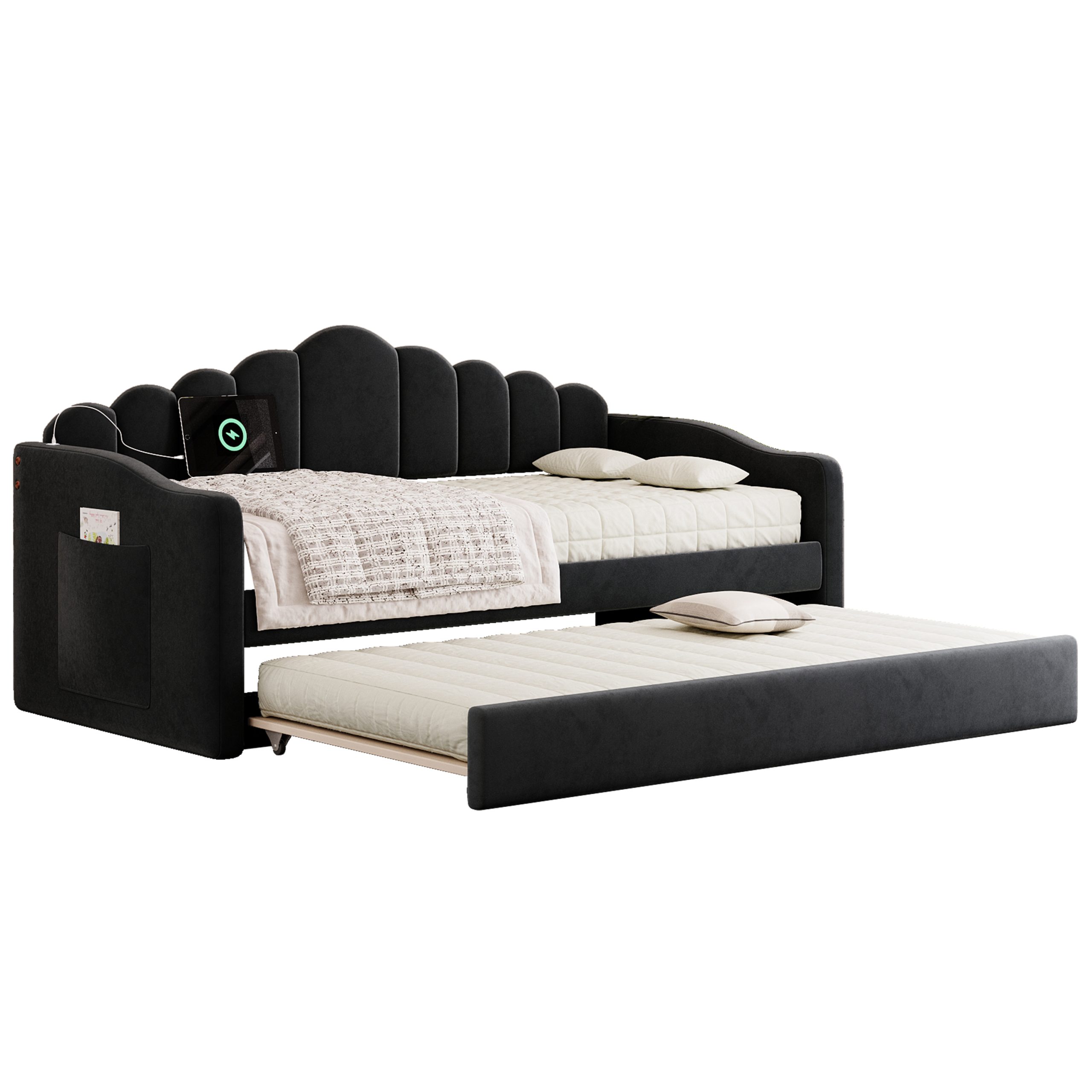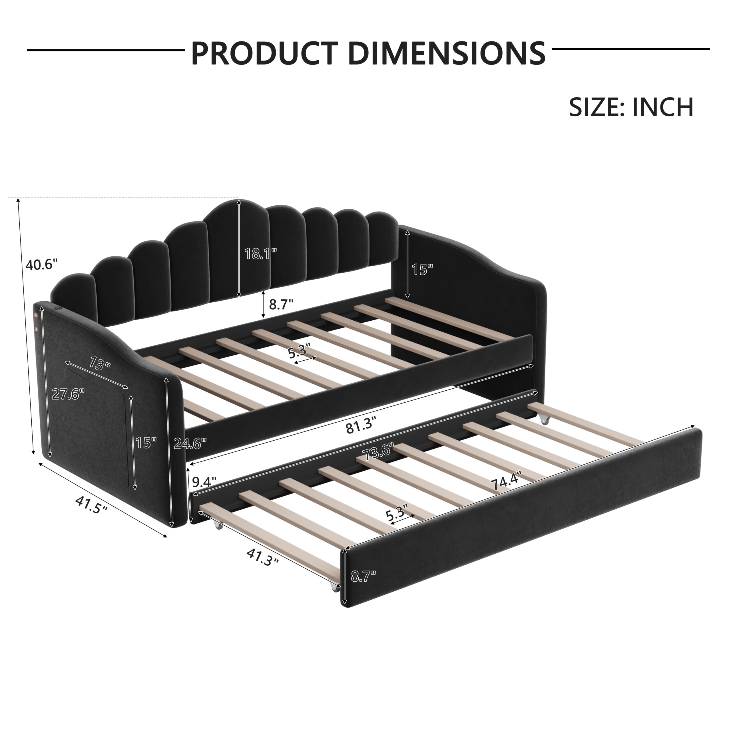 Twin Size Upholstered Daybed With Trundle , USB Charging Ports