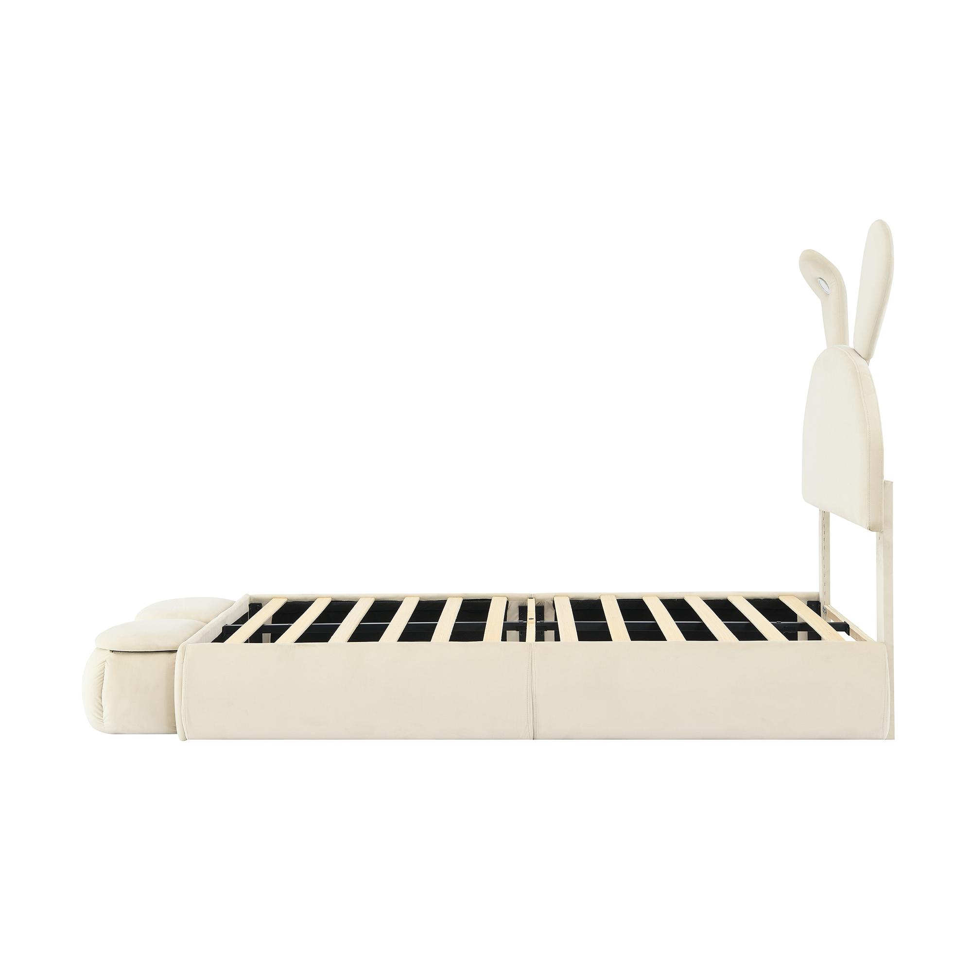 - [Cute Bed] Perfect for your little one’s bedroom, this twin daybed shows off soft upholstery with a playful cartoon ears look both you and your little one will love.