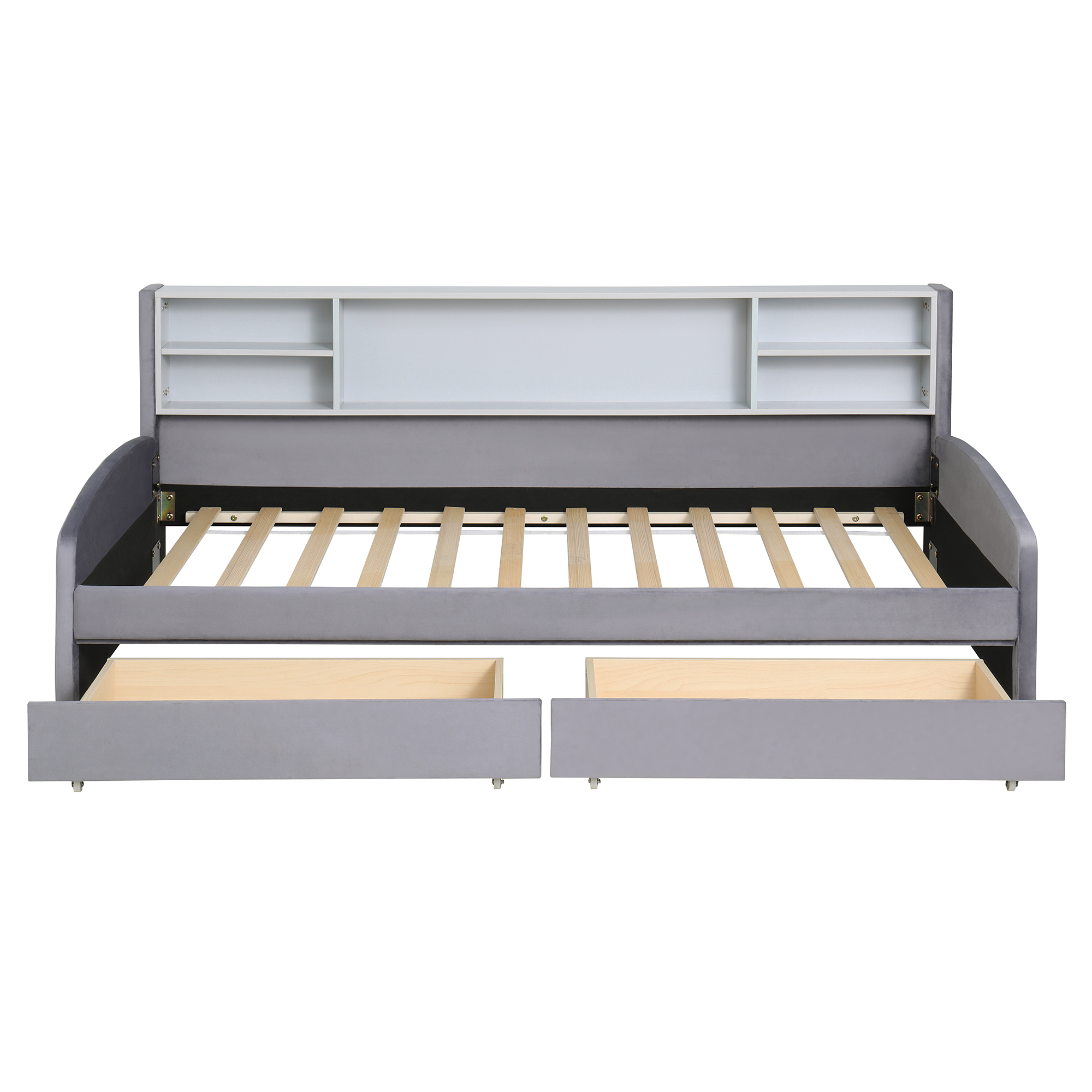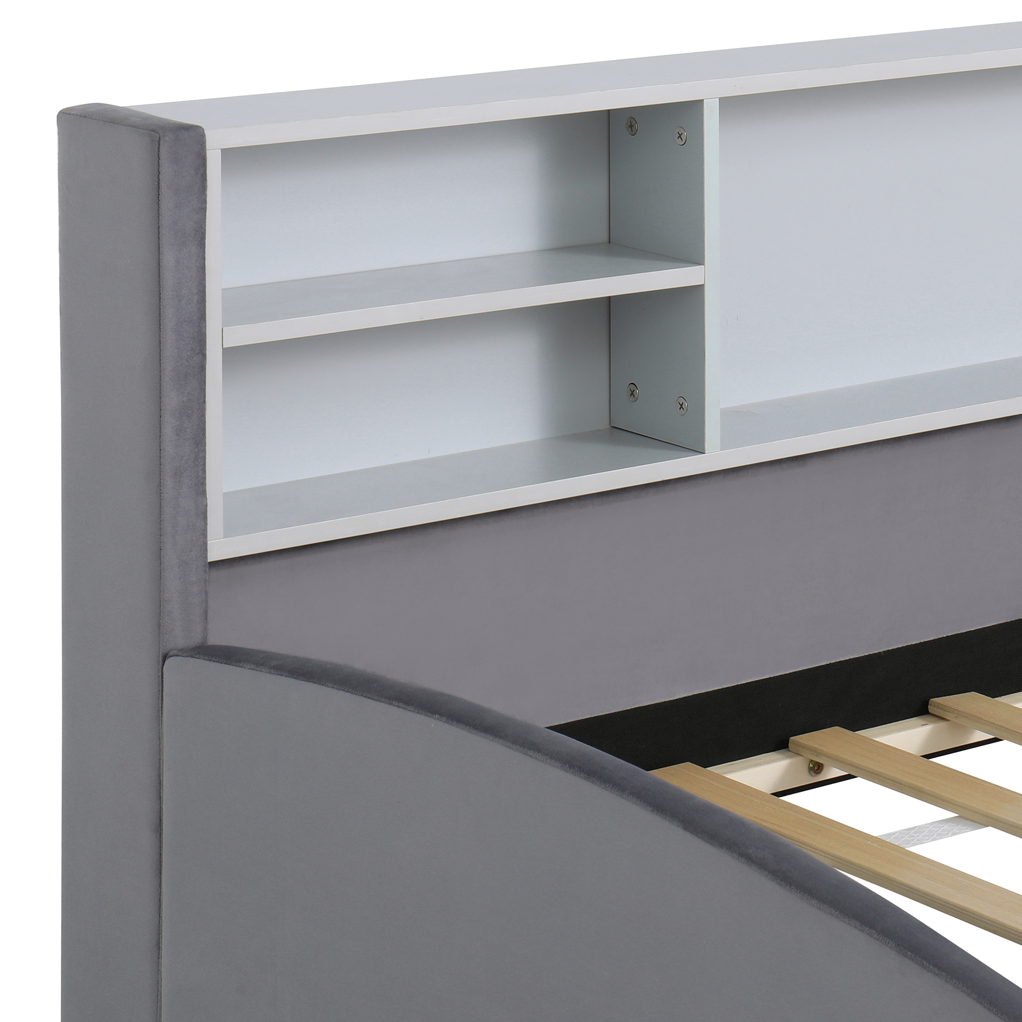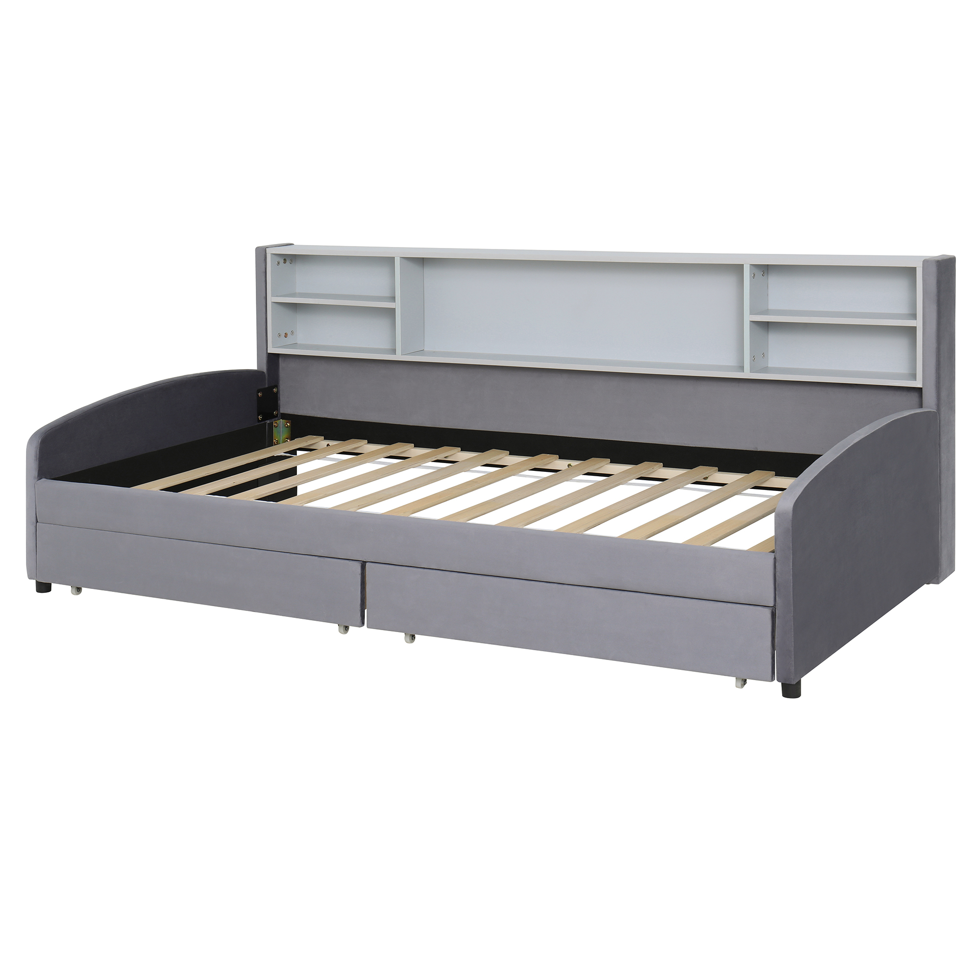 - Built-In Side Storage: An integrated storage shelf offers additional space for books, decor, or personal items, making this bed a functional piece of furniture for any bedroom.