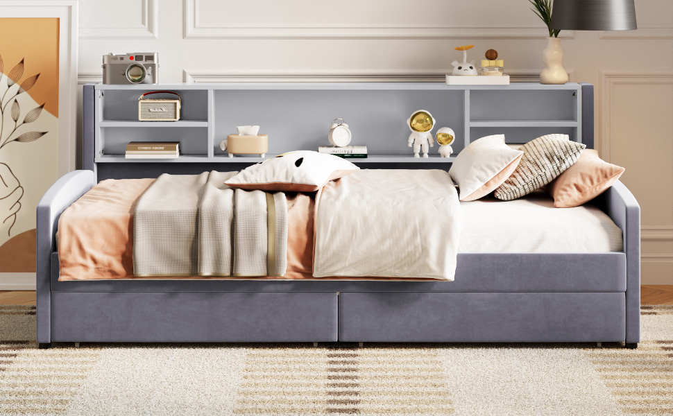 - Spacious Storage and Drawers: Featuring two large, smooth-rolling drawers beneath the bed, you can easily organize and access extra bedding, clothing, or other essentials, keeping your room neat and tidy. The drawers are designed with high-quality wheels for smooth and effortless operation, ensuring easy access to stored items anytime.