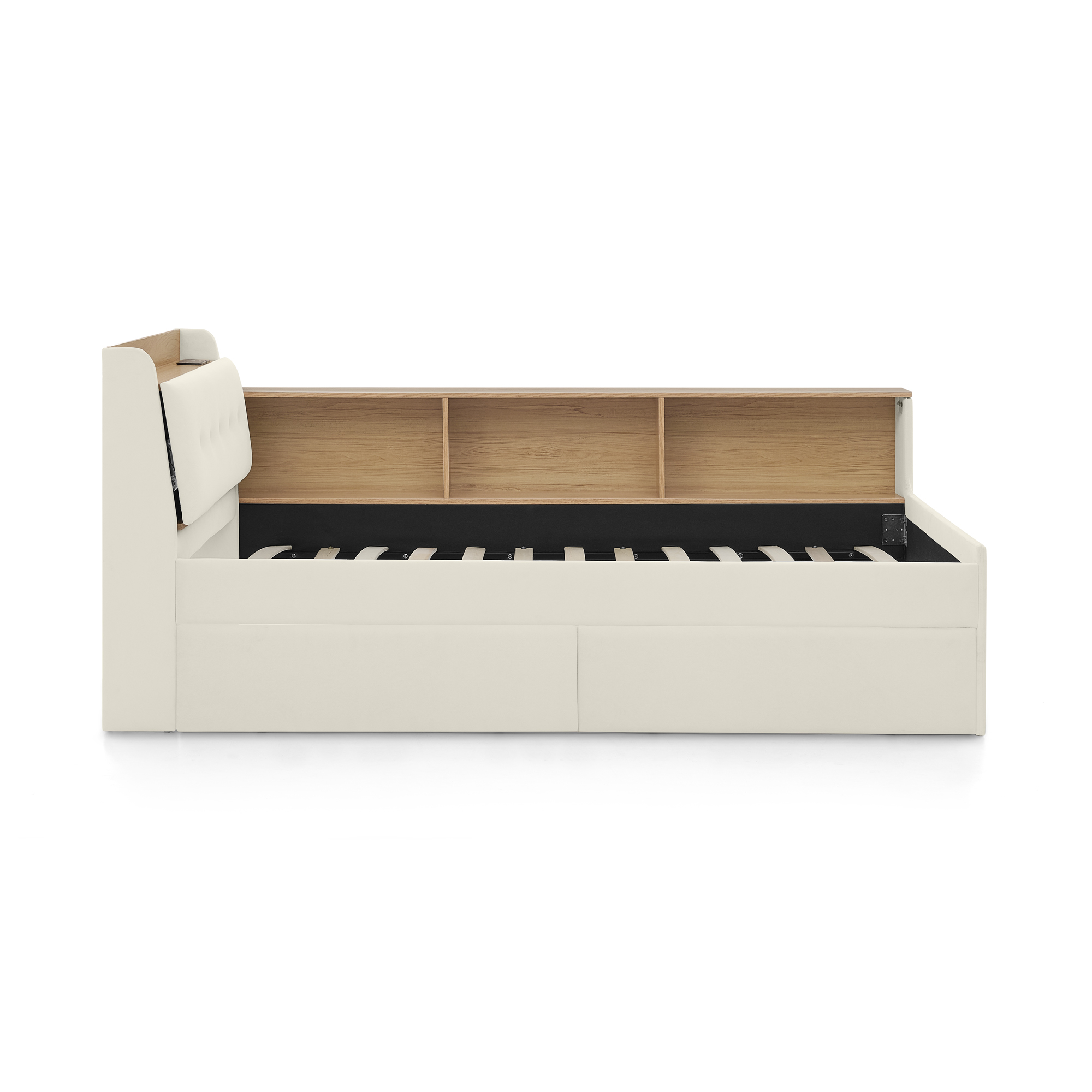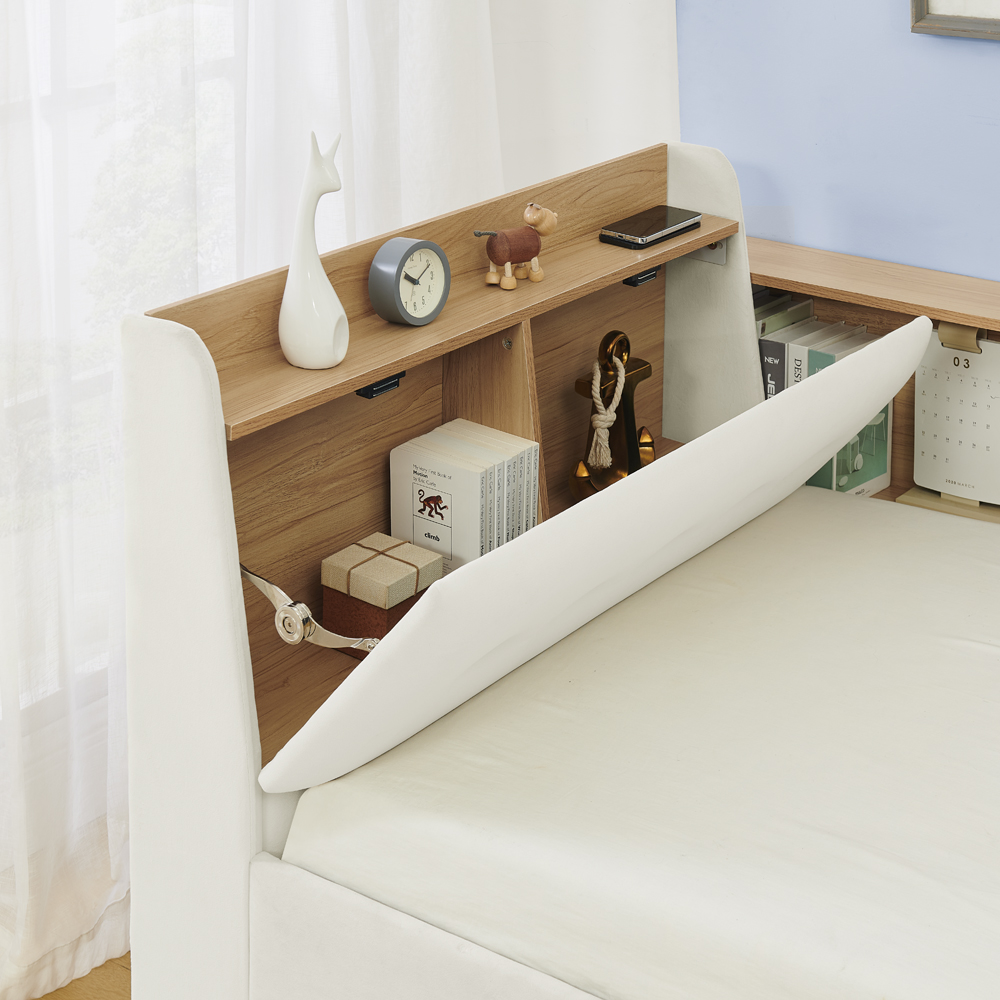 - Headboard storage: The headboard design offers easy access to daily items like books, alarm clocks, or decor. Keep essentials within reach while adding a tidy, organized look to your bedroom.
