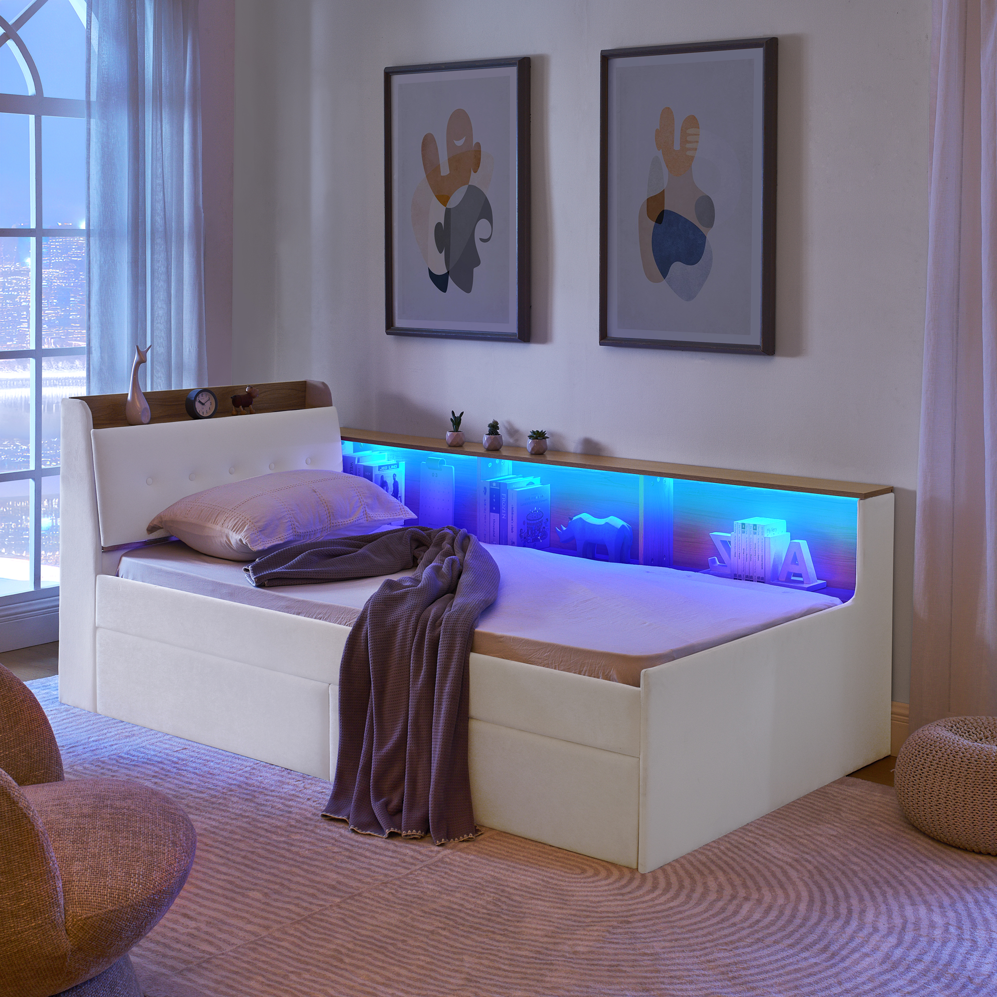 - Ambient Lighting: Built – in LED lights with color create a warm, unique atmosphere for bedtime or relaxation, and won’t dazzle during night.
