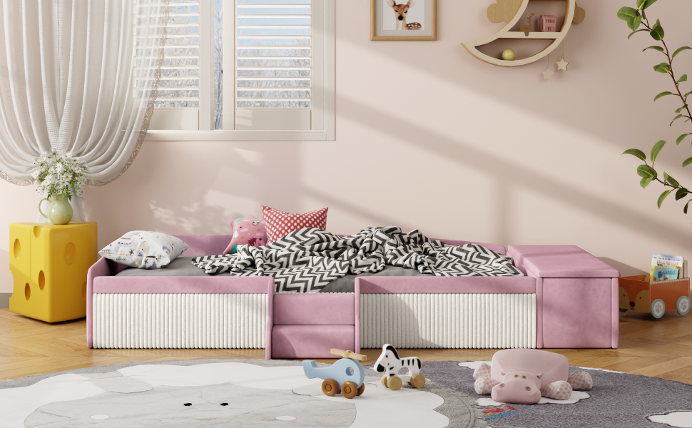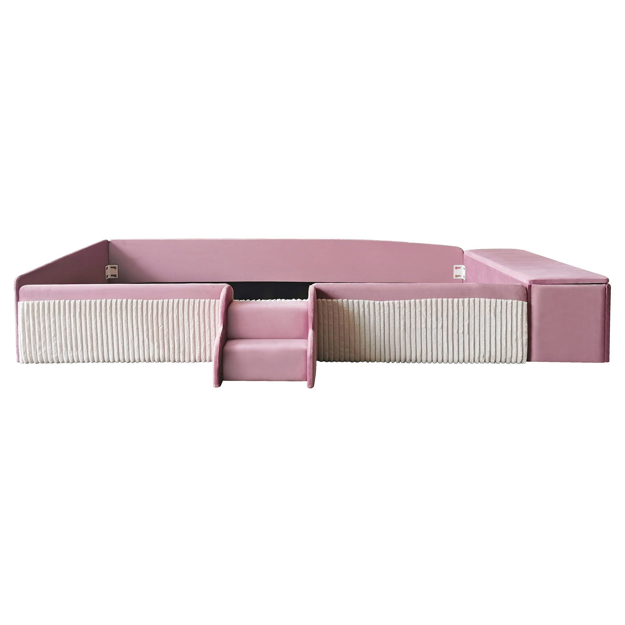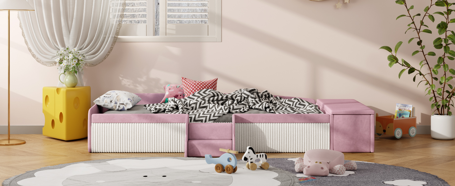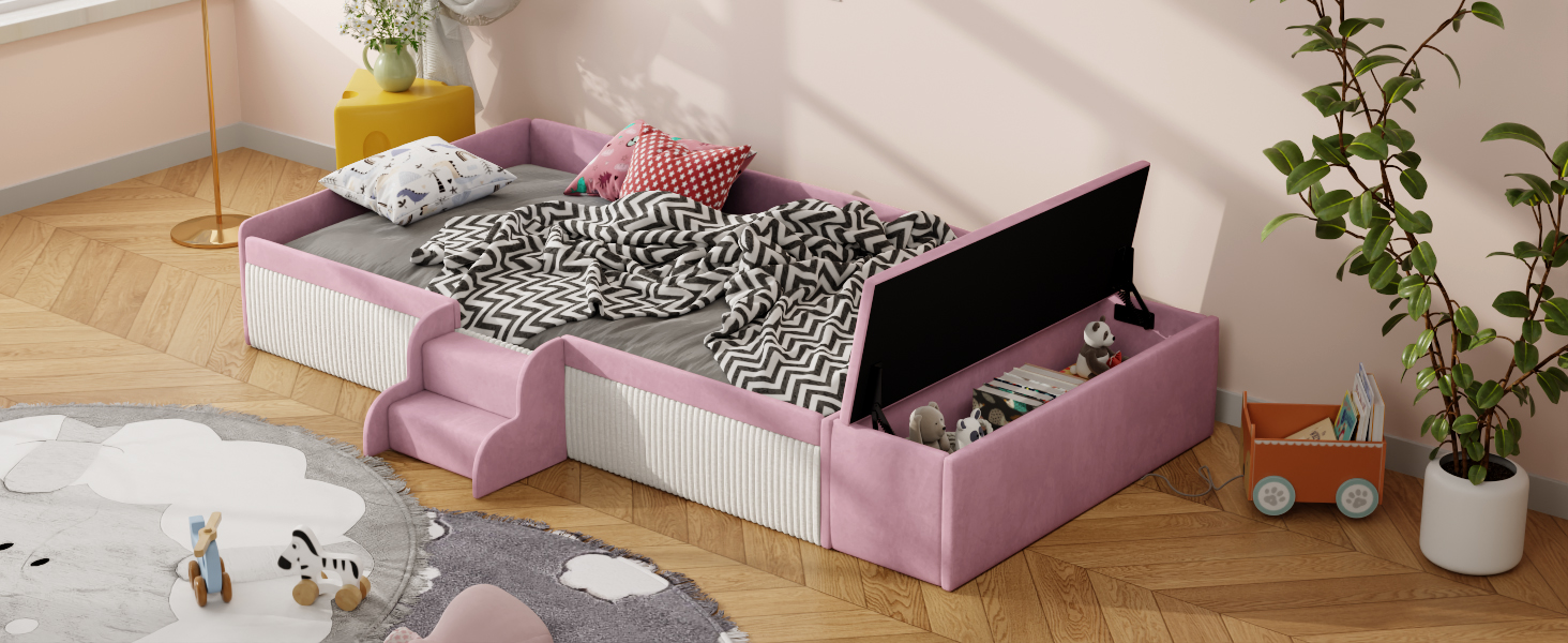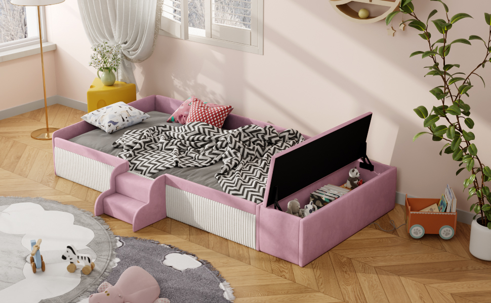 - Integrated Storage Ottoman with Gas Lift: The side-mounted storage ottoman offers ample space for toys; equipped with a premium gas lift mechanism for smooth buffering to prevent finger pinching.