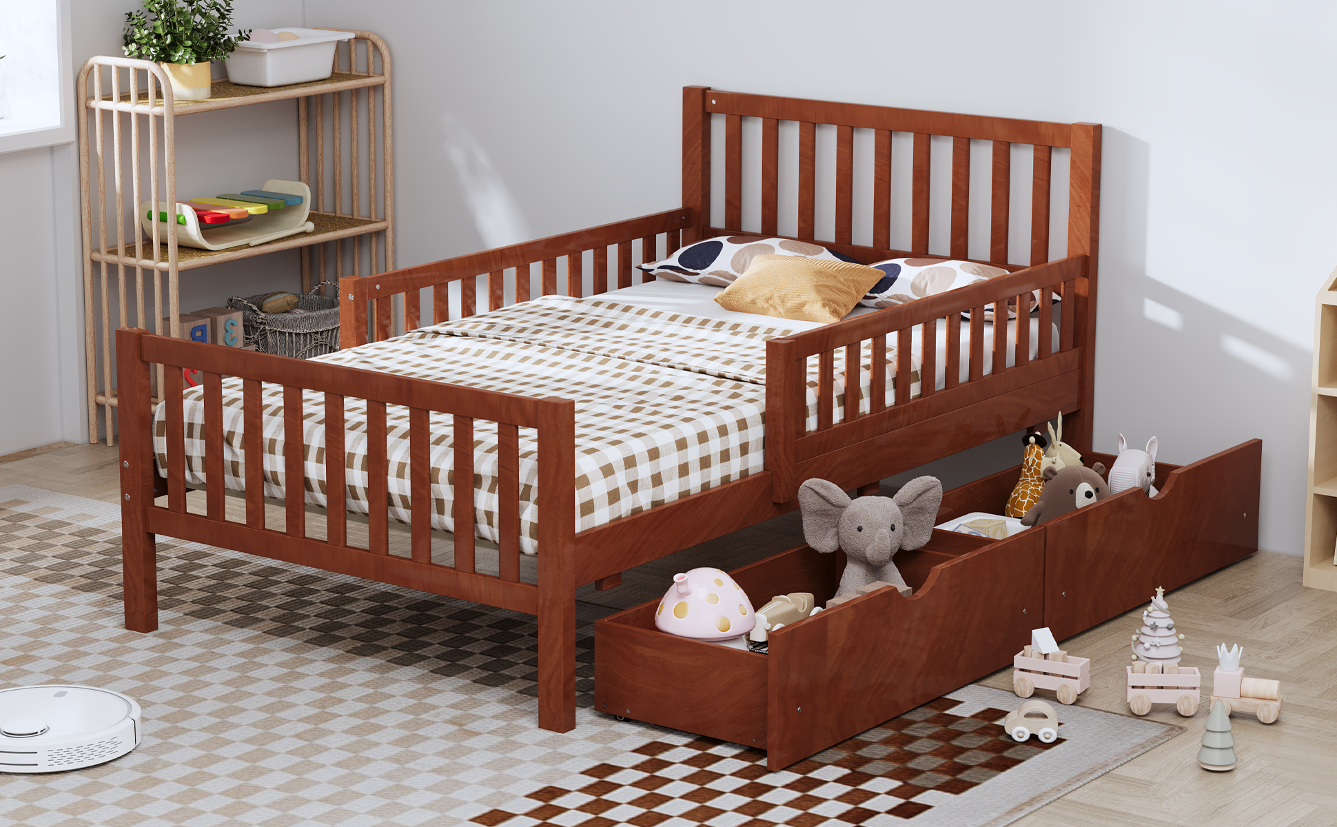 - [Space saving] There are two large drawers under the bed for storing clothes, pillows, etc., fully saving your bedroom space. Drawers can be installed on the left and right sides of the bed.
