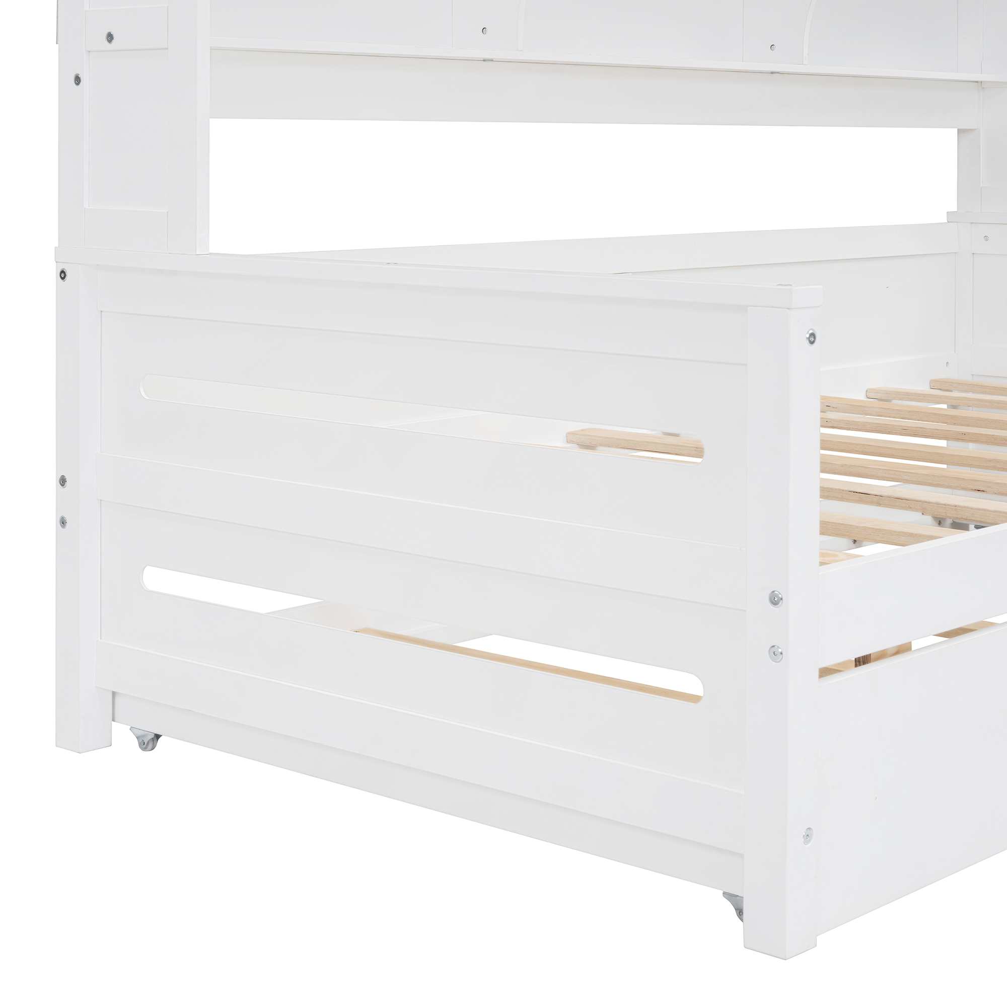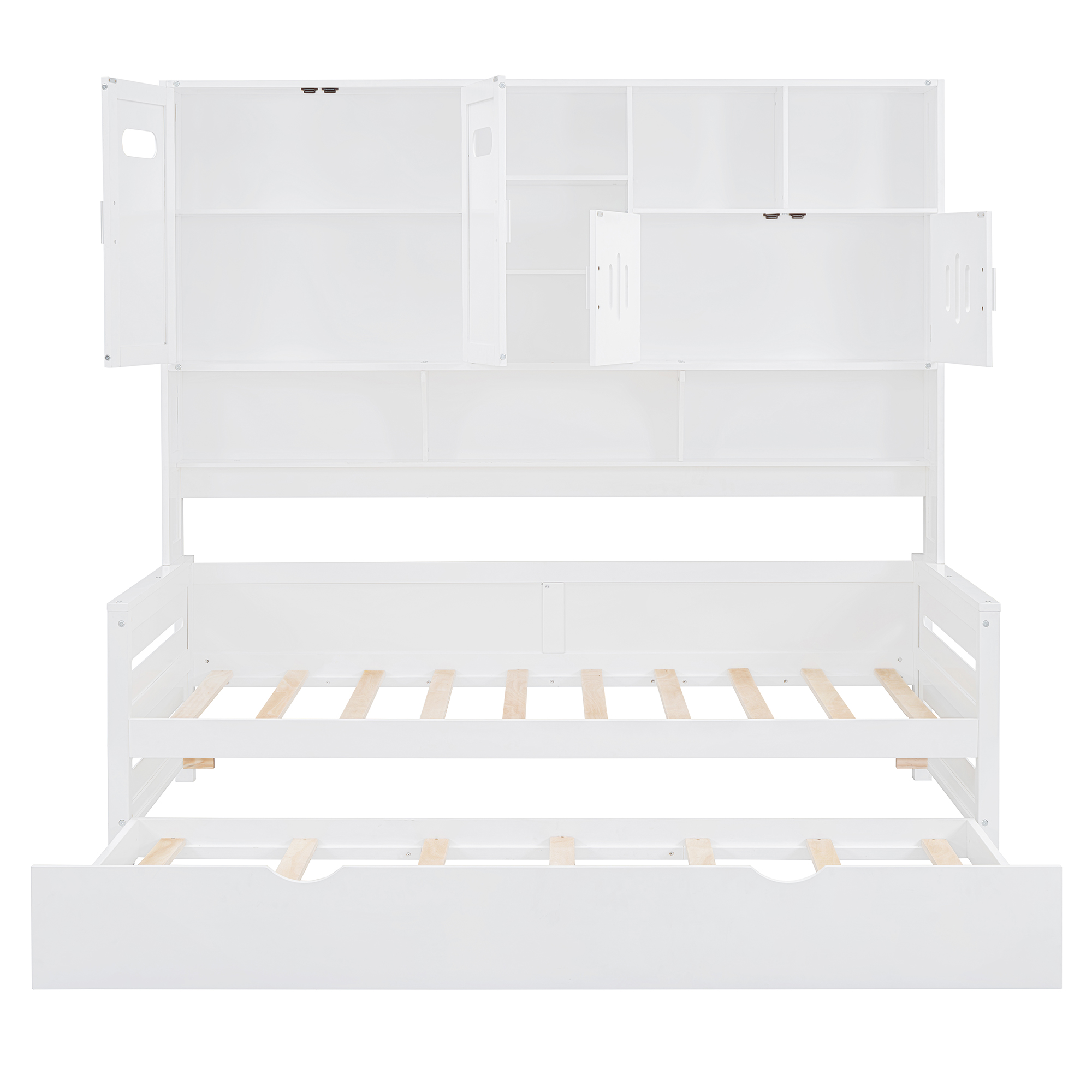 Twin Size Wooden Daybed With Twin Size Trundle, and All-in-One Cabinet and Shelf