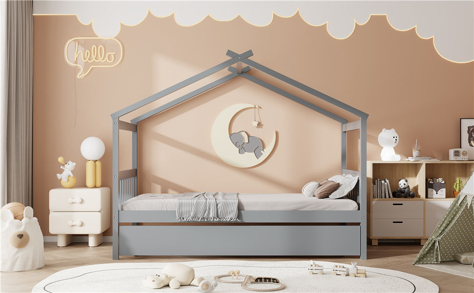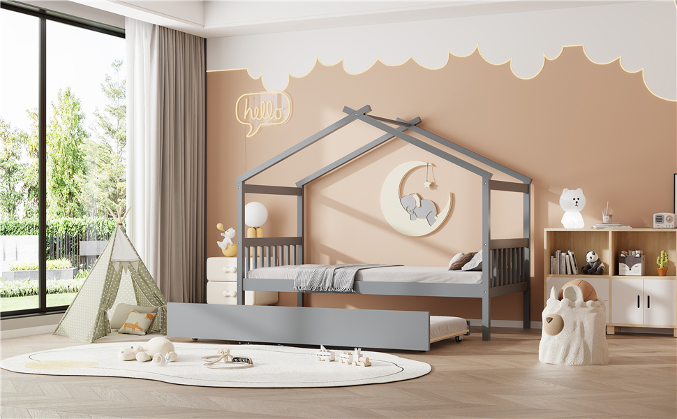 - [Maximized space] The house bed with handy pull-out trundle takes up minimal space for the spontaneous sleepover guest. Such a versatile piece, bringing functionality, versatility, and style to your home, perfect for those who have lots of visitors.