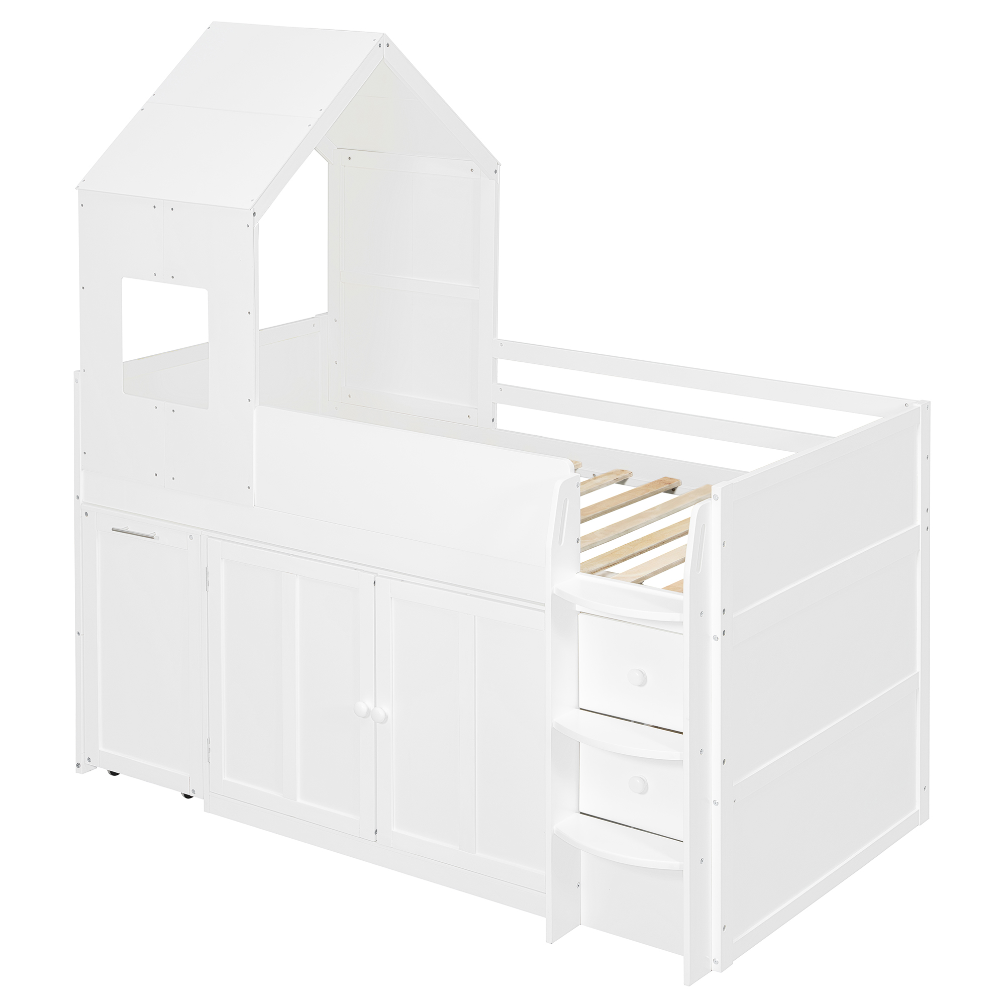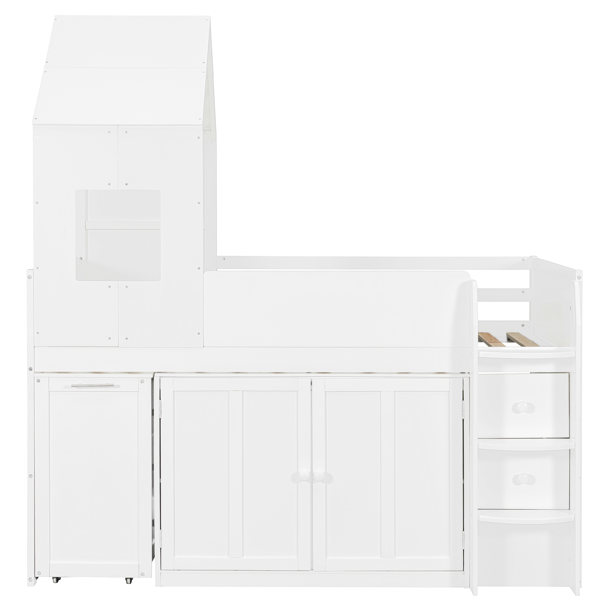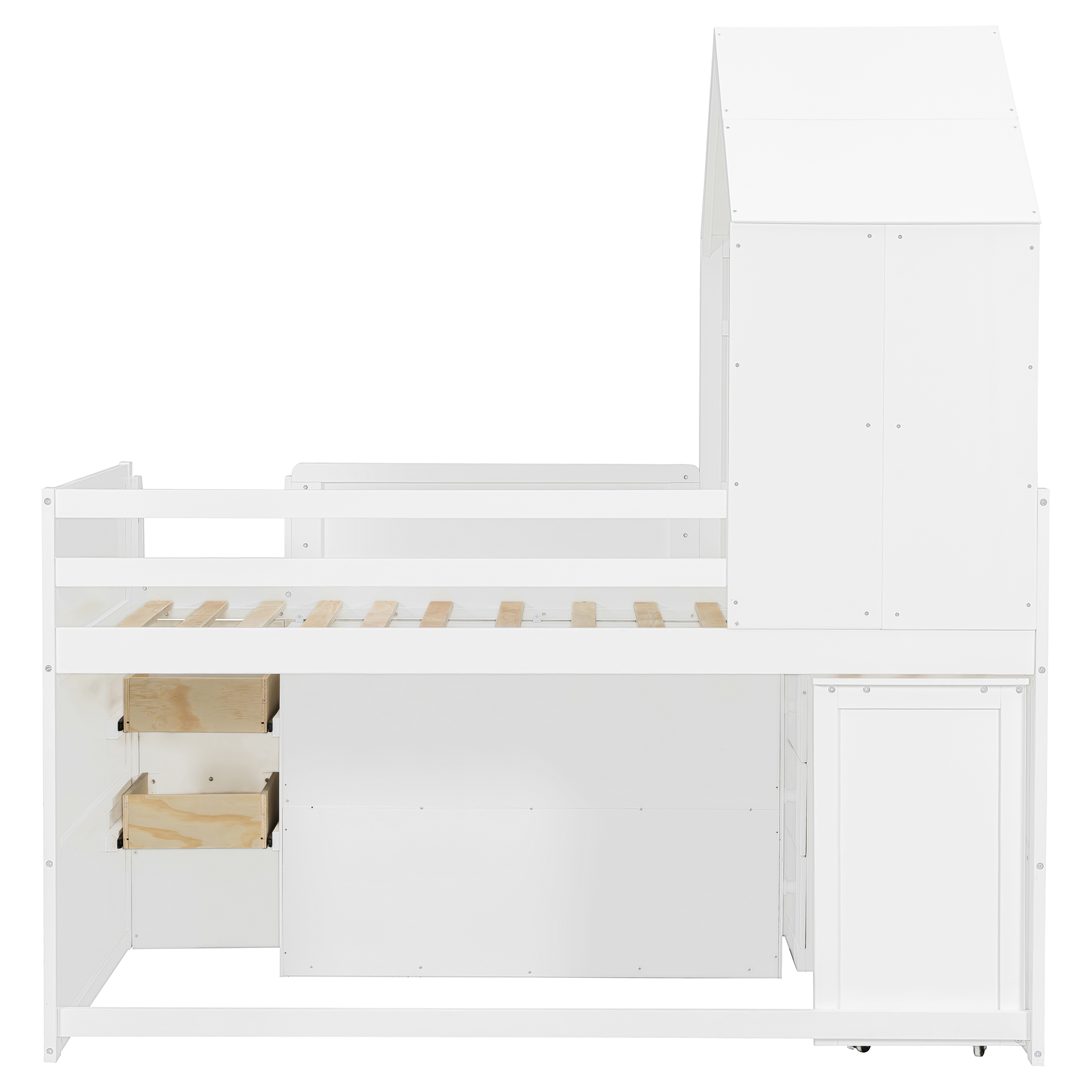 - This loft bed features a unique house-style roof structure combined with window details, creating a warm and playful environment that inspires imagination and creativity. The architectural design makes the bed feel like a private little hideout while adding strong visual appeal to any teen’s bedroom.