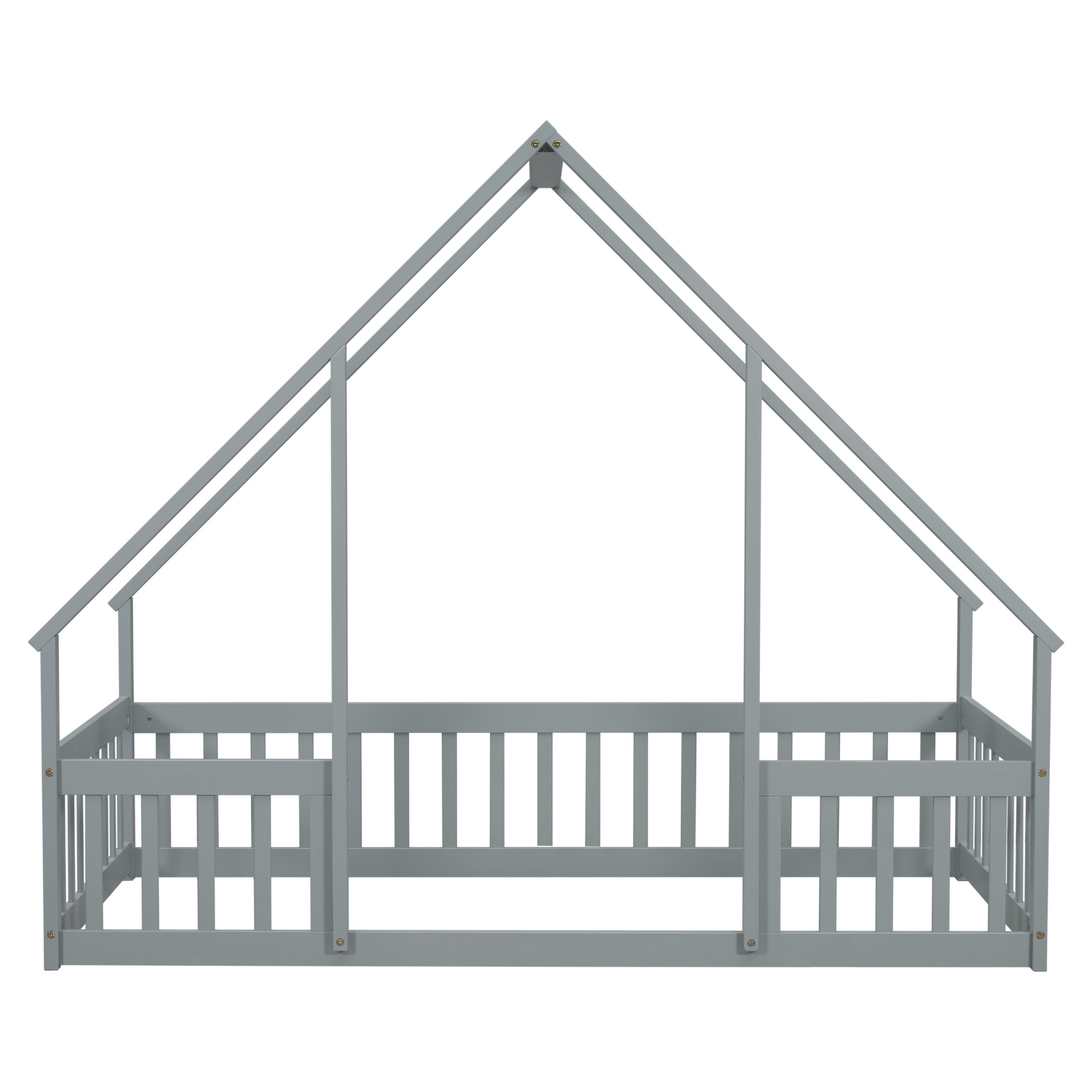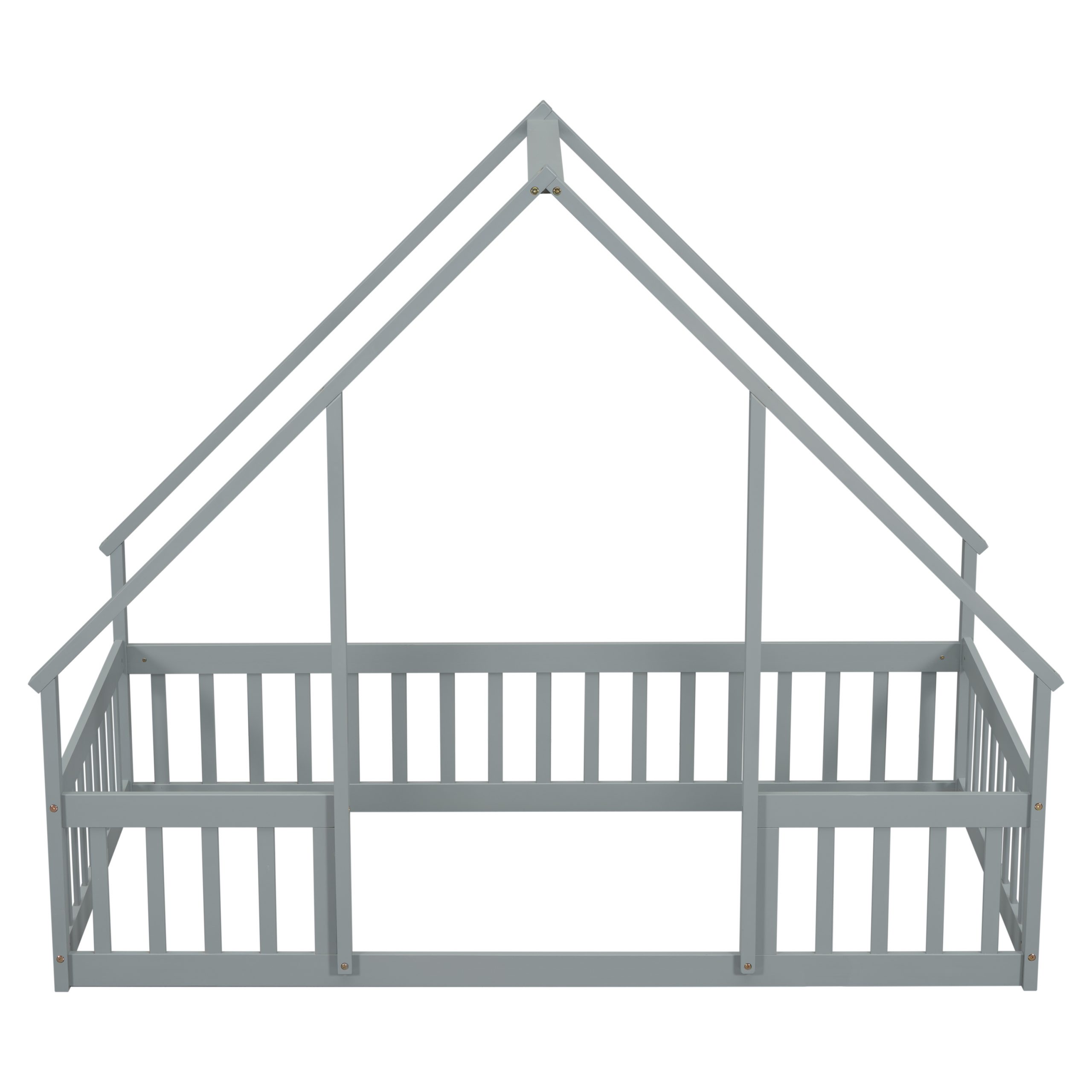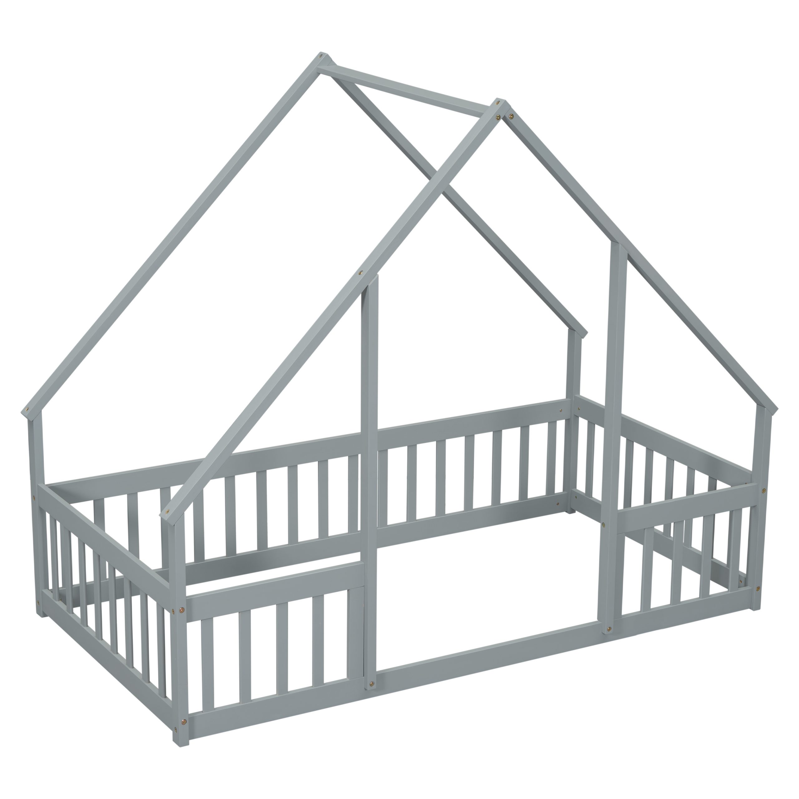 - [Floor Bed with Guardrail Design] This floor bed featuring fence not only ensures better stability but also reduce safety concerns, offering restful nights of sound sleep. In addition, the guardrails and roof frame are designed with an attracting structure to provide a solid and comfortable support when you put a mattress (not included) on the floor.