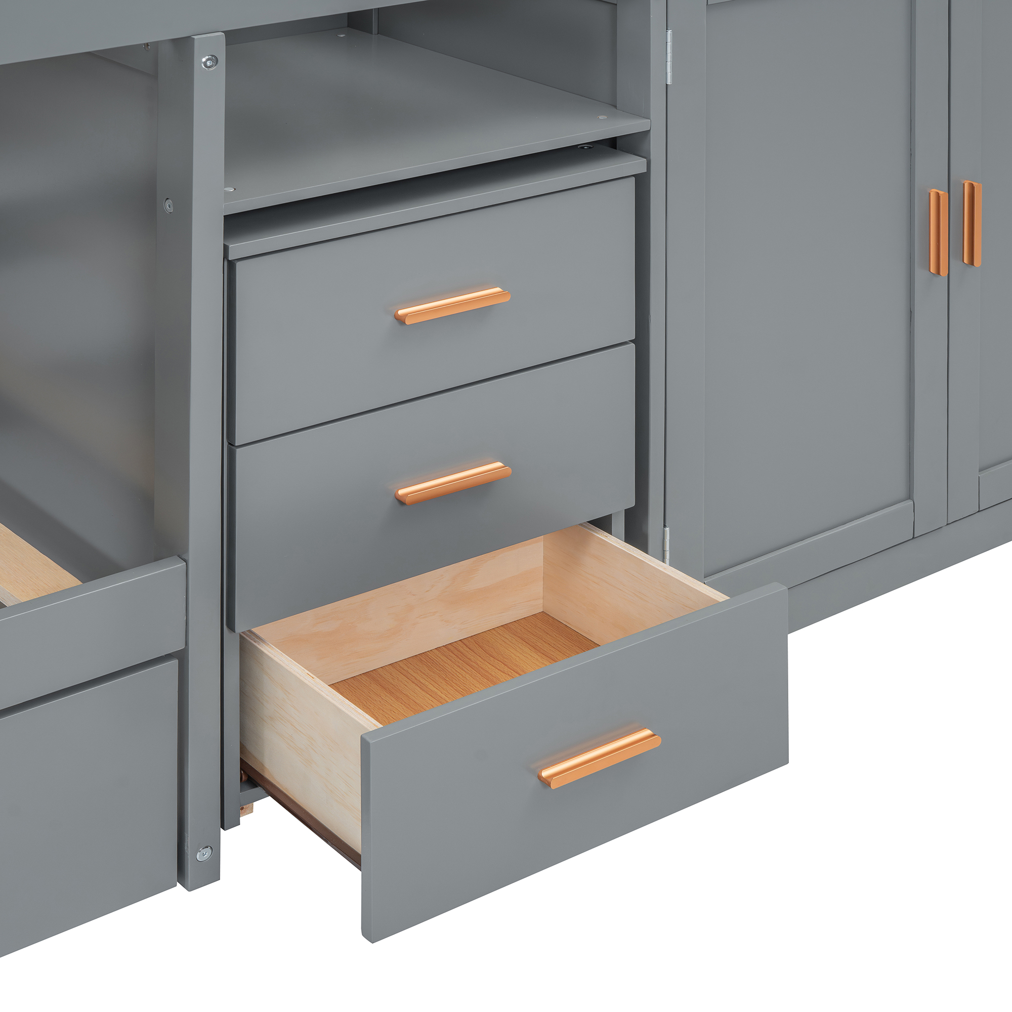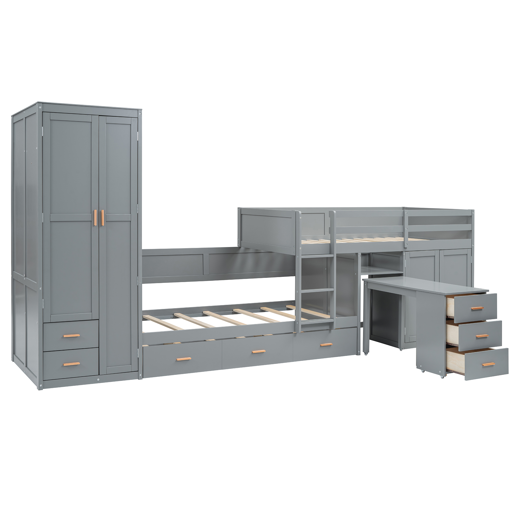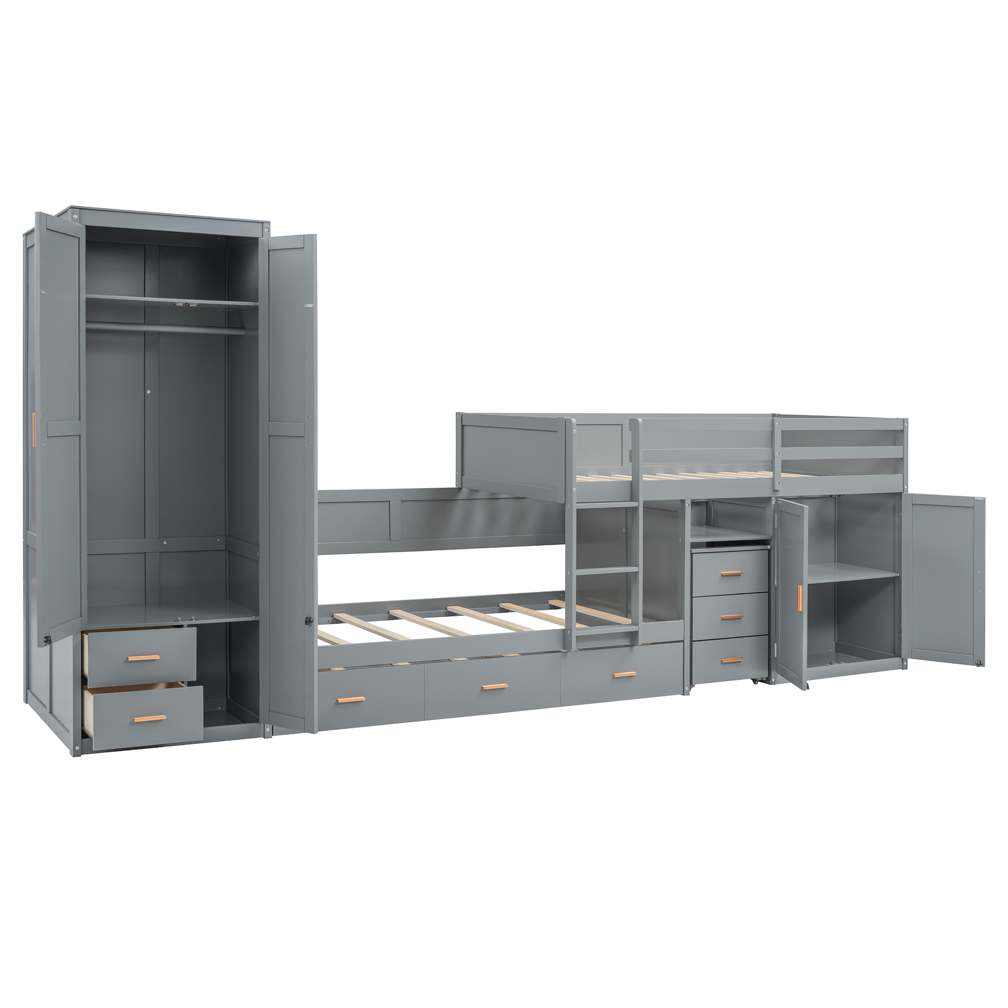 - Quality Craftsmanship: Built to last with sturdy aluminum handles and wooden twin-size beds, this furniture piece combines durability with modern aesthetics.