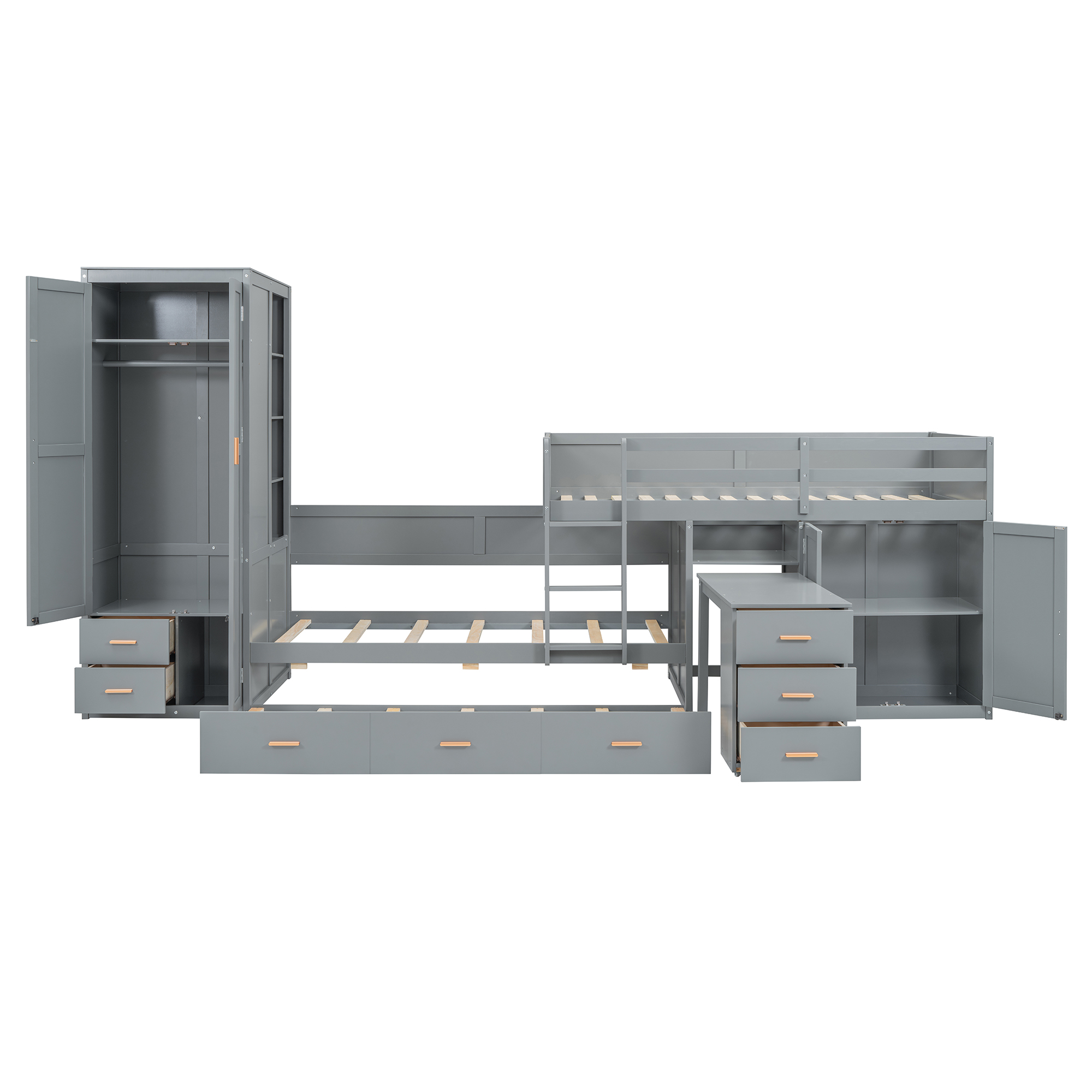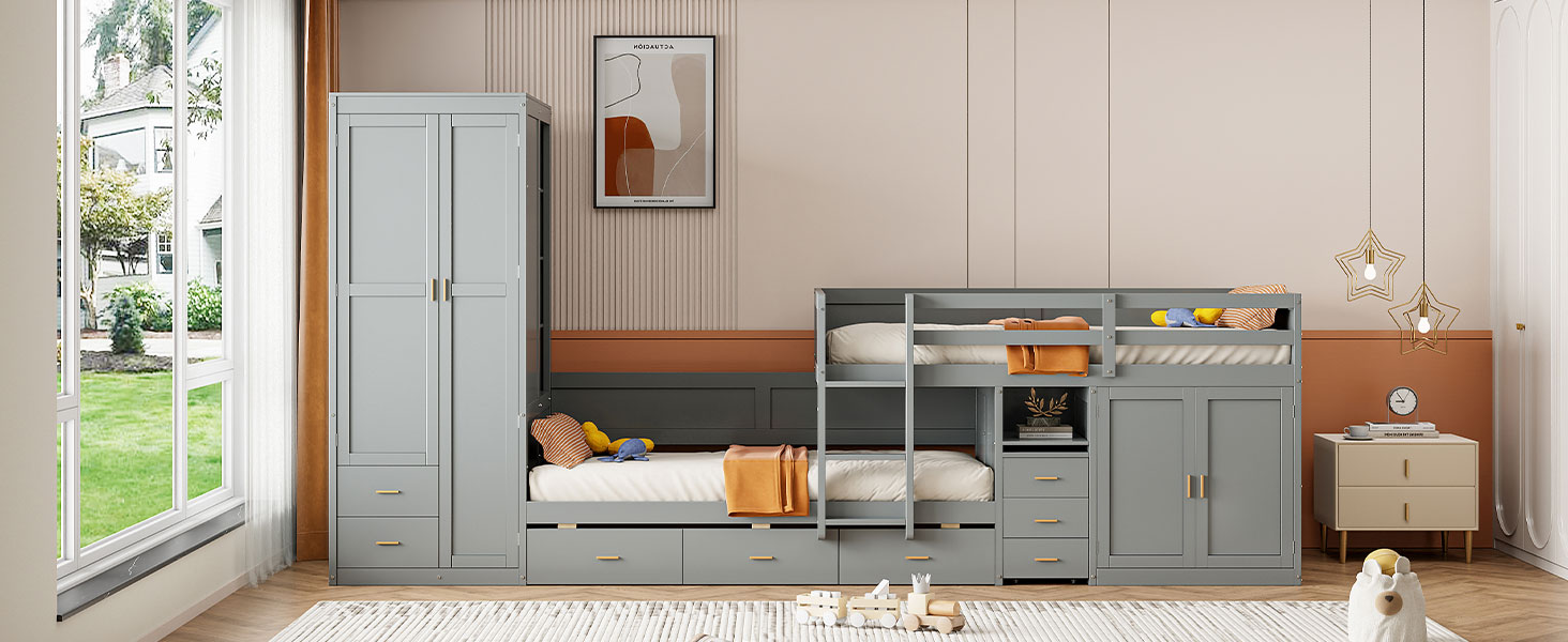 - Ample Storage: Equipped with 5 drawers and 2 cabinets, along with multiple shelves and a wardrobe, it offers generous storage space for clothes, toys, books, and more. Its spacious backside offers additional storage for luggage or extra belongings.