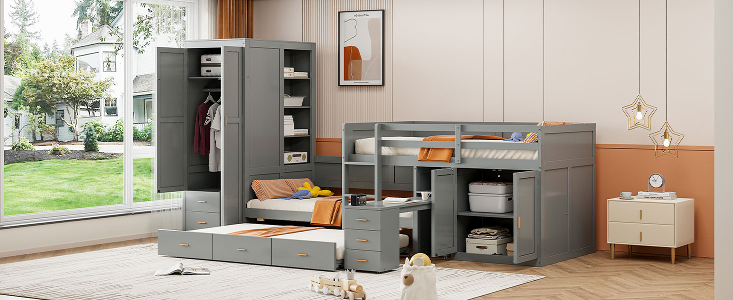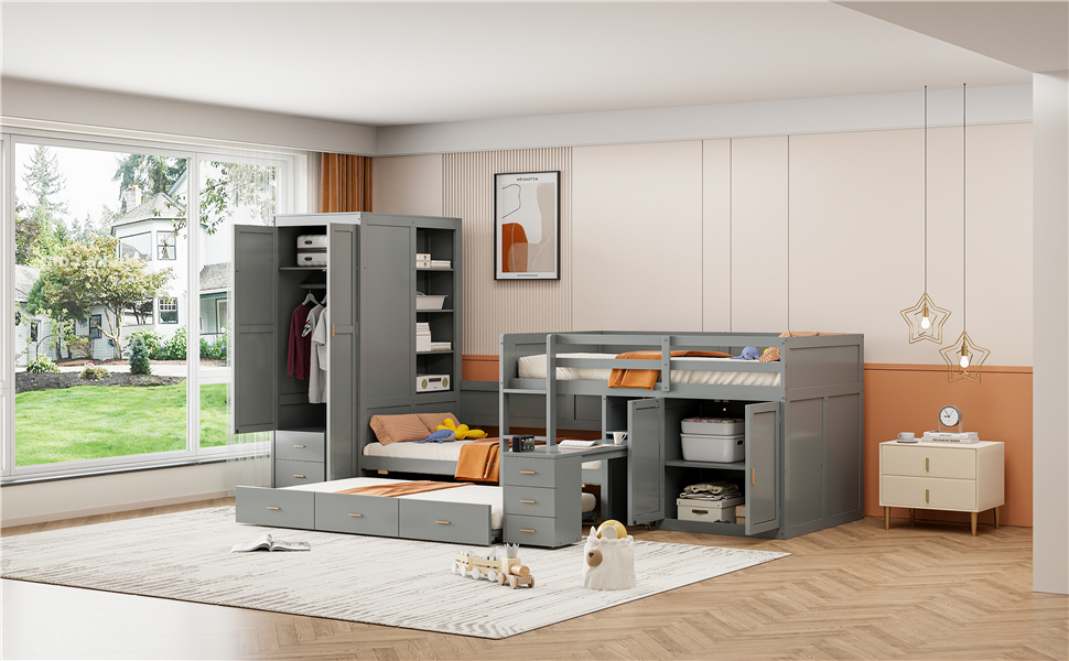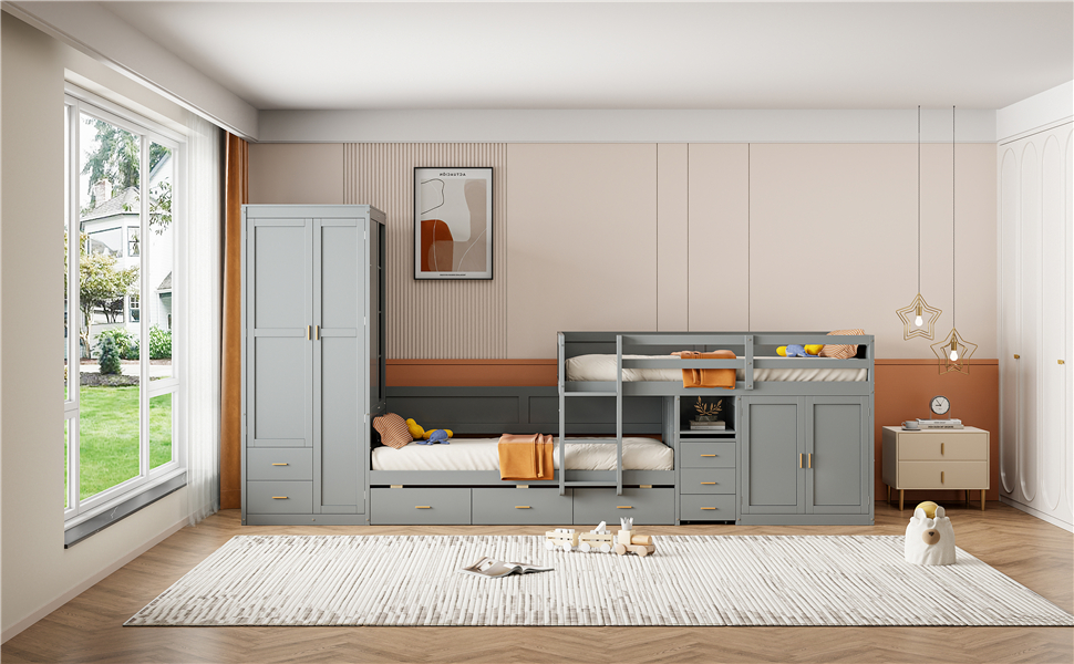 - Dual Functionality: This bed features a unique design with a bunk bed and a pull-out trundle bed, ideal for accommodating guests or siblings comfortably. The trundle bed’s panel design seamlessly integrates with the drawers