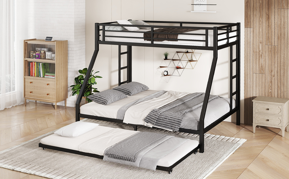 Twin Xl Over Queen Metal Bunk Bed With Twin Size Trundle