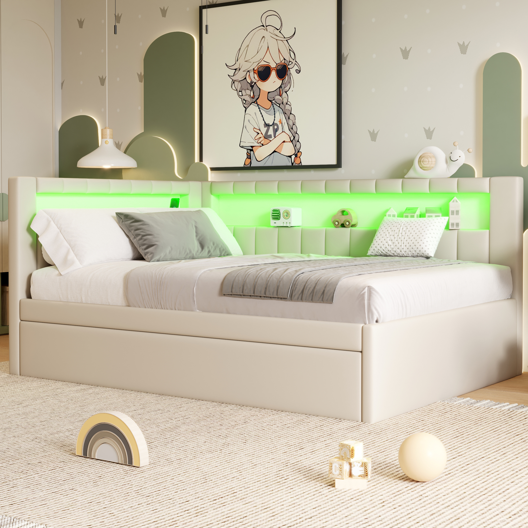 - [LED Design] LED lighting is surrounded the bed for your leisure. 7 colors can be adjusted.