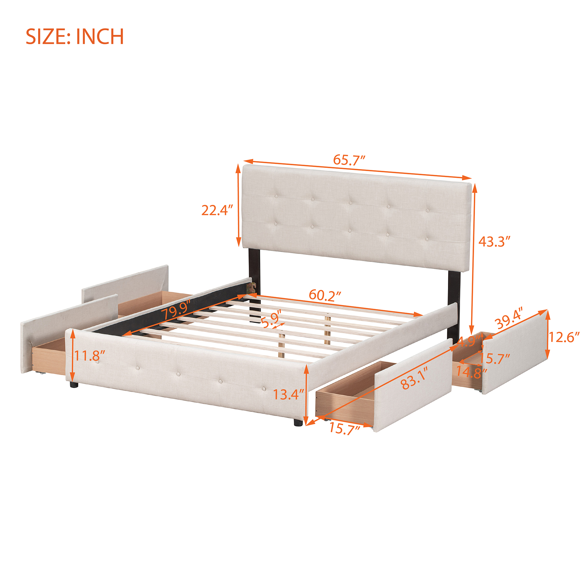 - [Maximized space] The platform bed with four big drawers can easily be pulled in and out for maximum storage space, perfect for organizing anything from clothes and bed linens to toys and games. Such a versatile piece, bringing functionality, versatility, and style to your home, perfect for those who have lots of visitors.