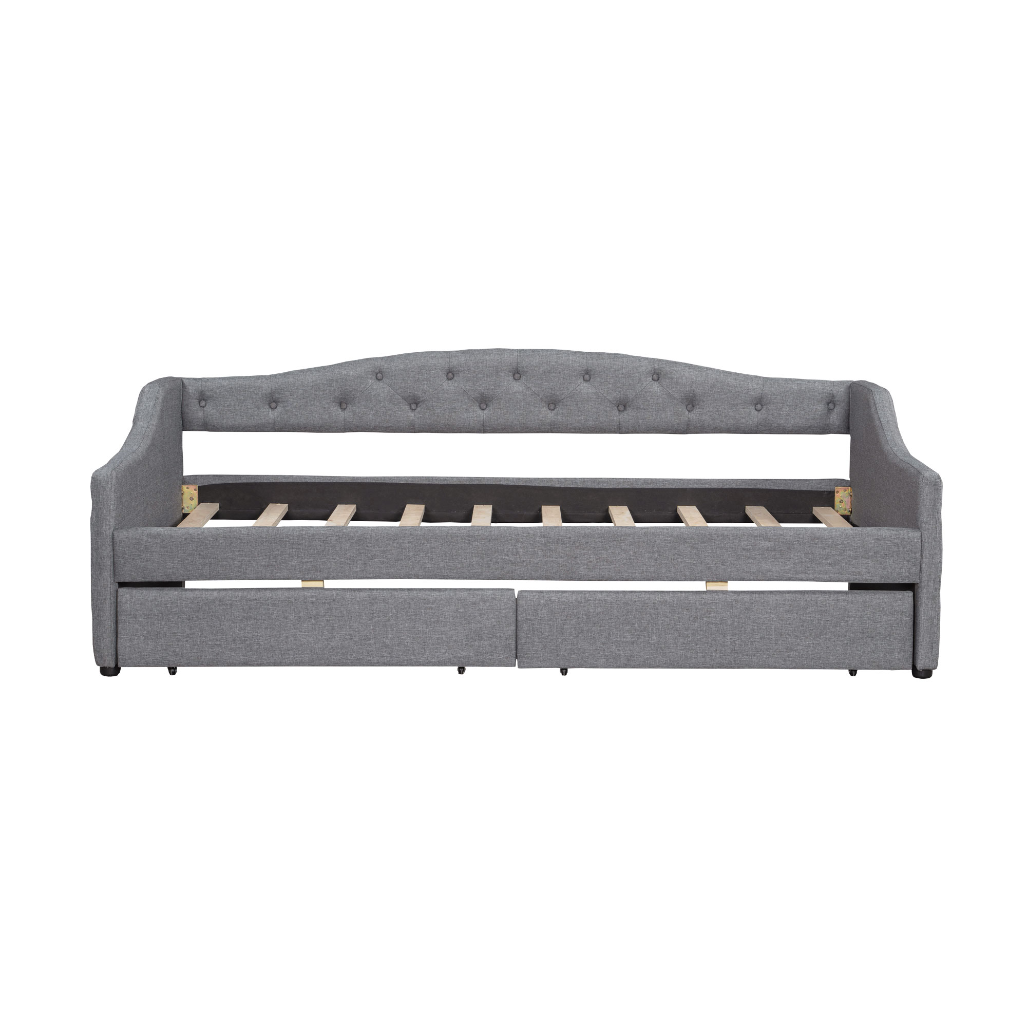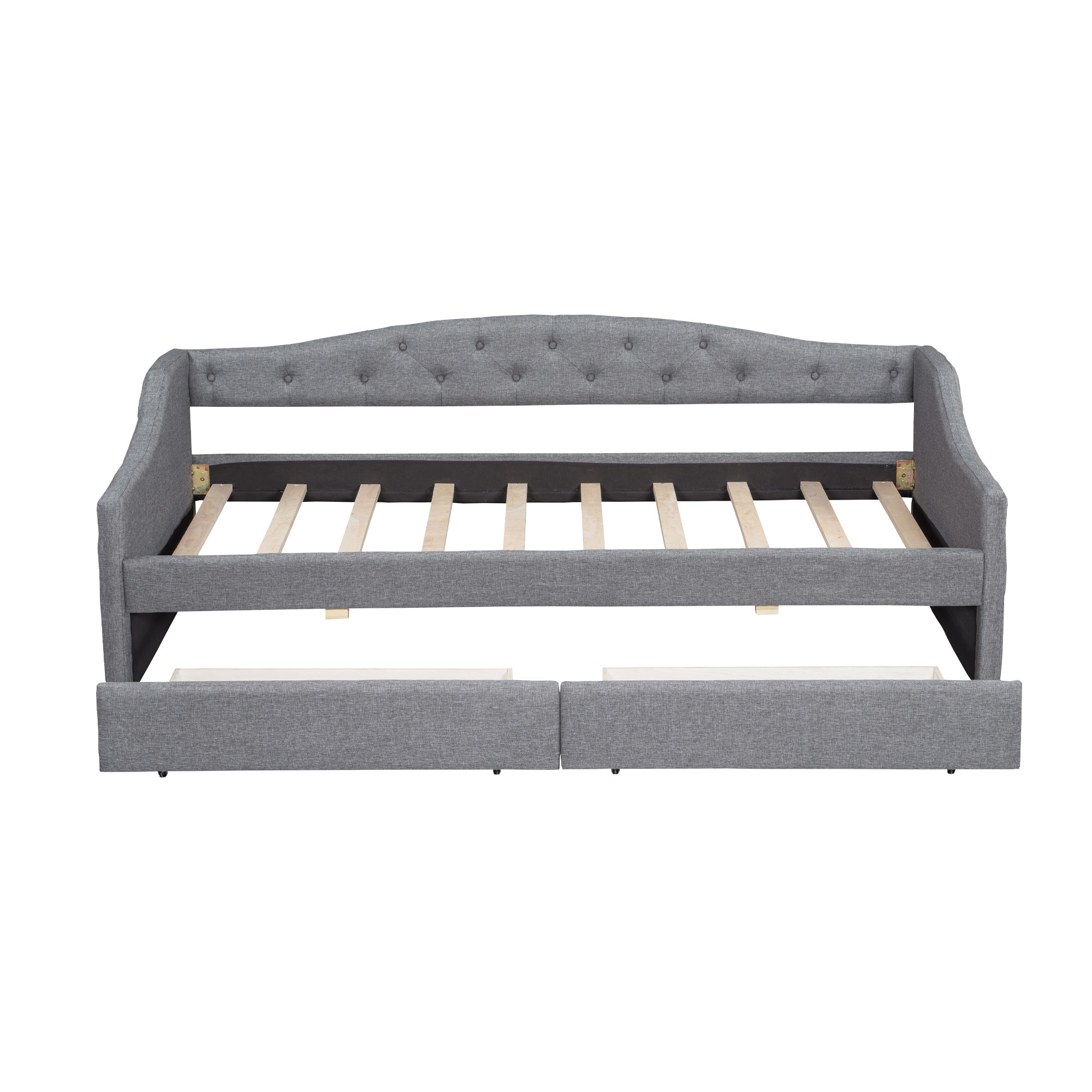 - [Linen Upholstered Daybed] The high-quality upholstery with thickly padded sponge at the back and all sides offers cozy comfort. This Upholstered Daybed with covered linen provides soft hand feeling and get superior experience for you!