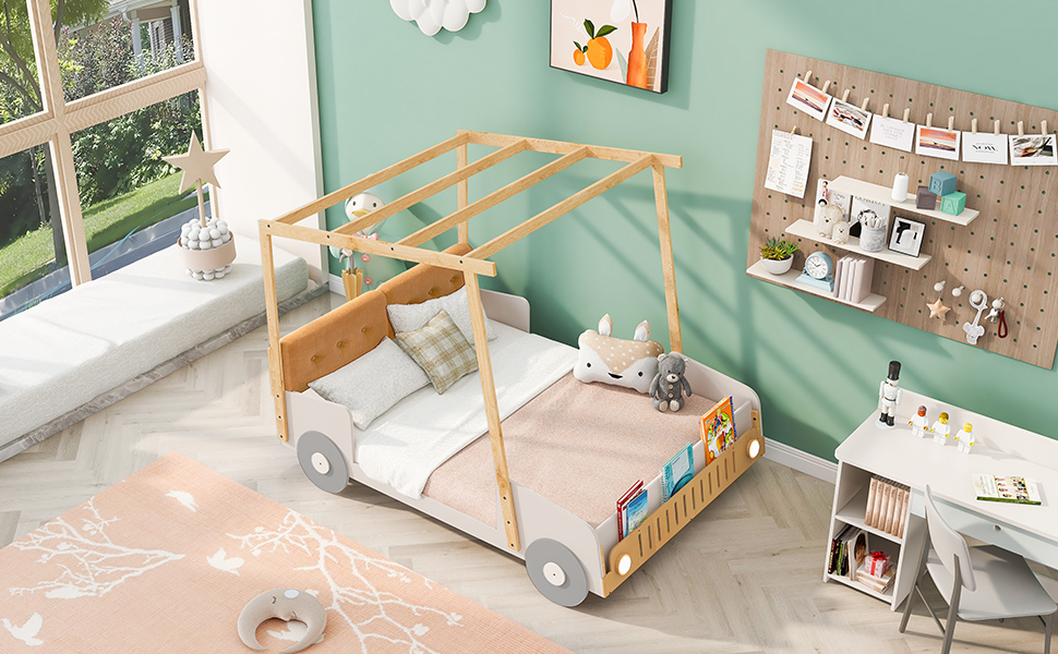 - [Playful Design] This bed featuring a car-shaped decoration, this unique bed creates a fun and adorable space that not only serves as a comfortable sleeping area but also double as a space to play and have fun.
