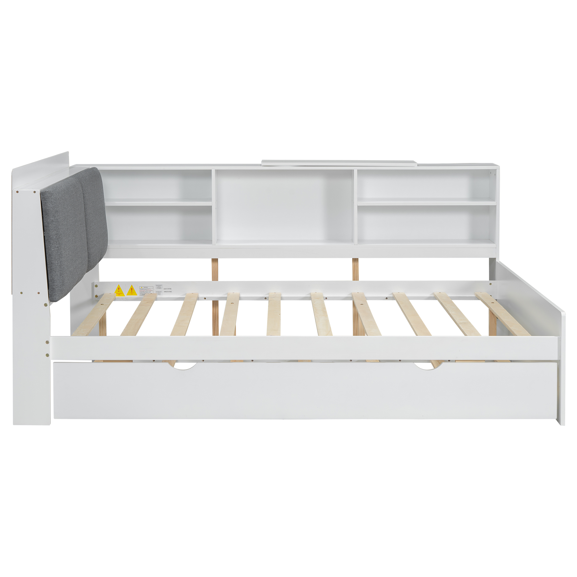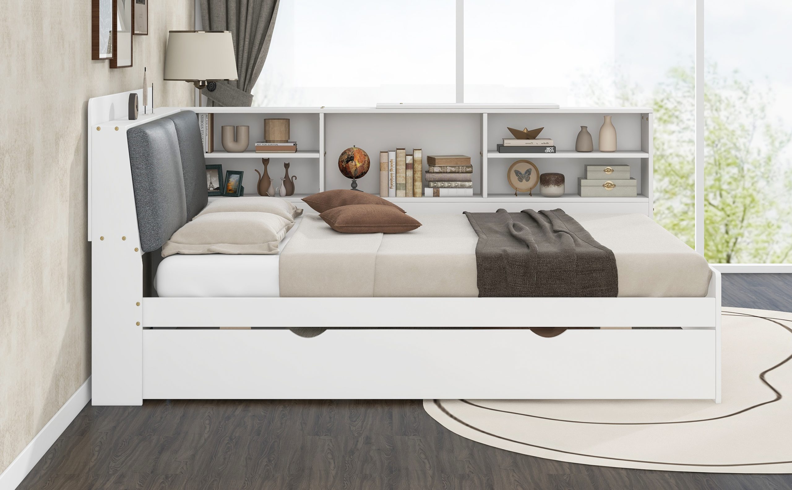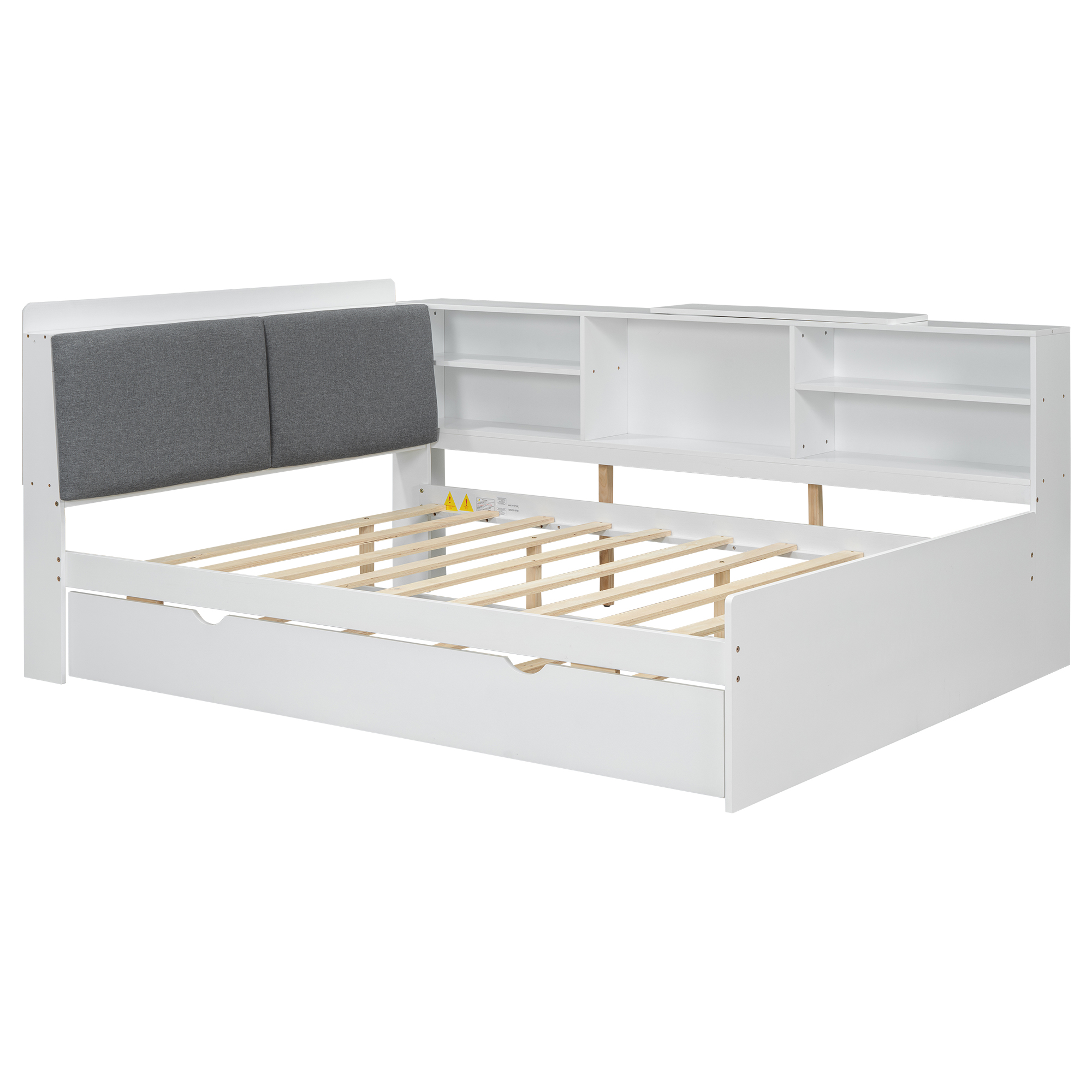 - [Multiple Storage Space] The headboard features built-in storage shelves and box. Your bedding, toys, mobile phones, and so on can all be properly stored.