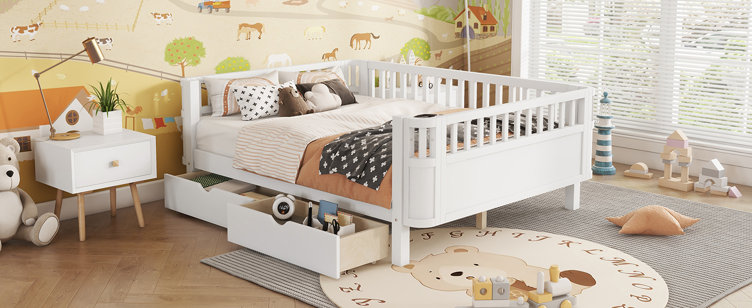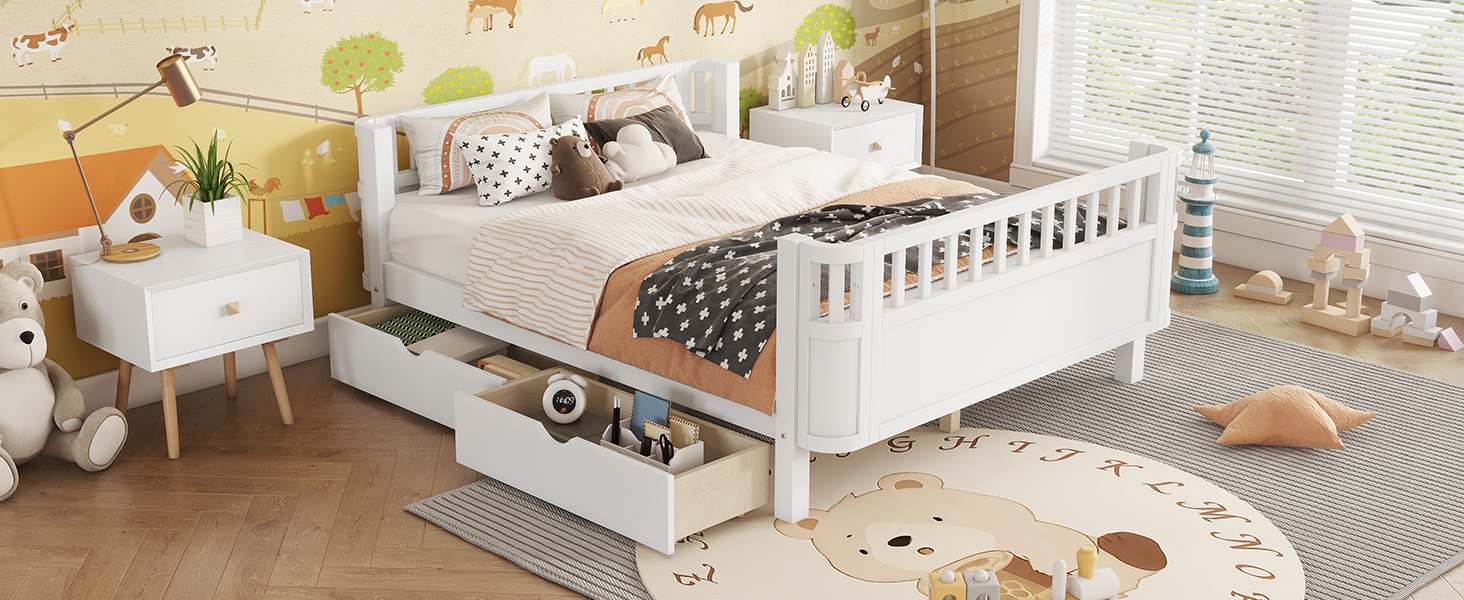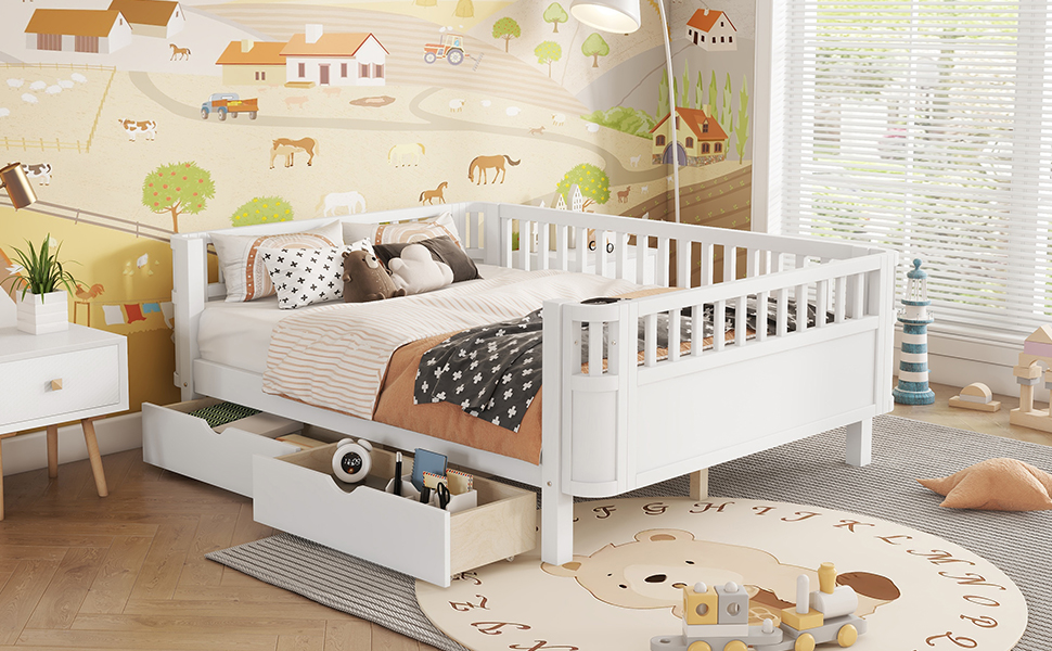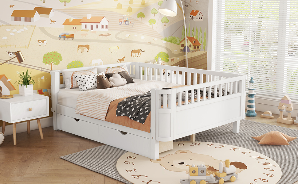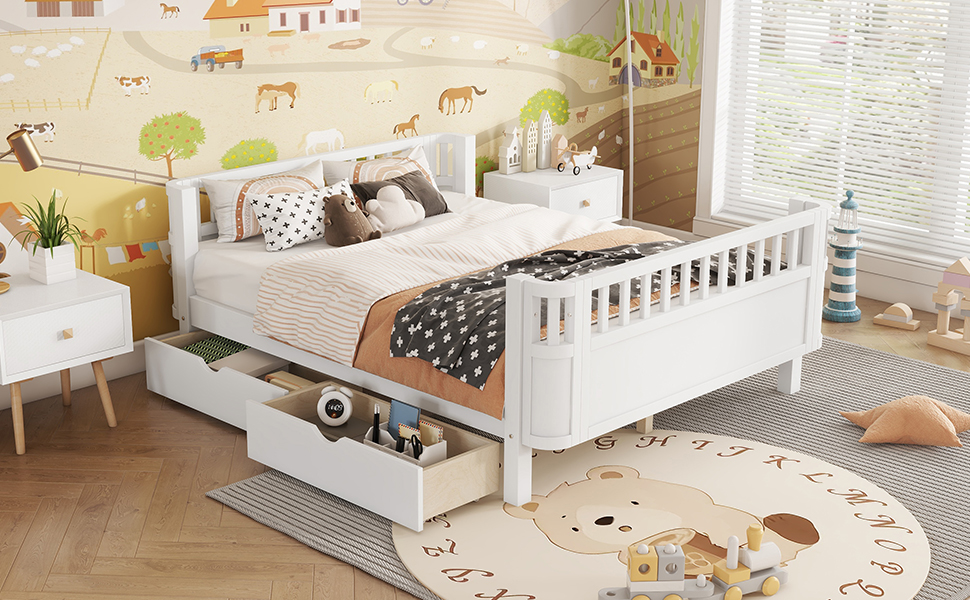 - Ample Storage: Featured with 2 wheeled drawers, this kids full bed frame provides ample storage space under the bed, perfect for storing bed sheets, accessories or off-season clothing.