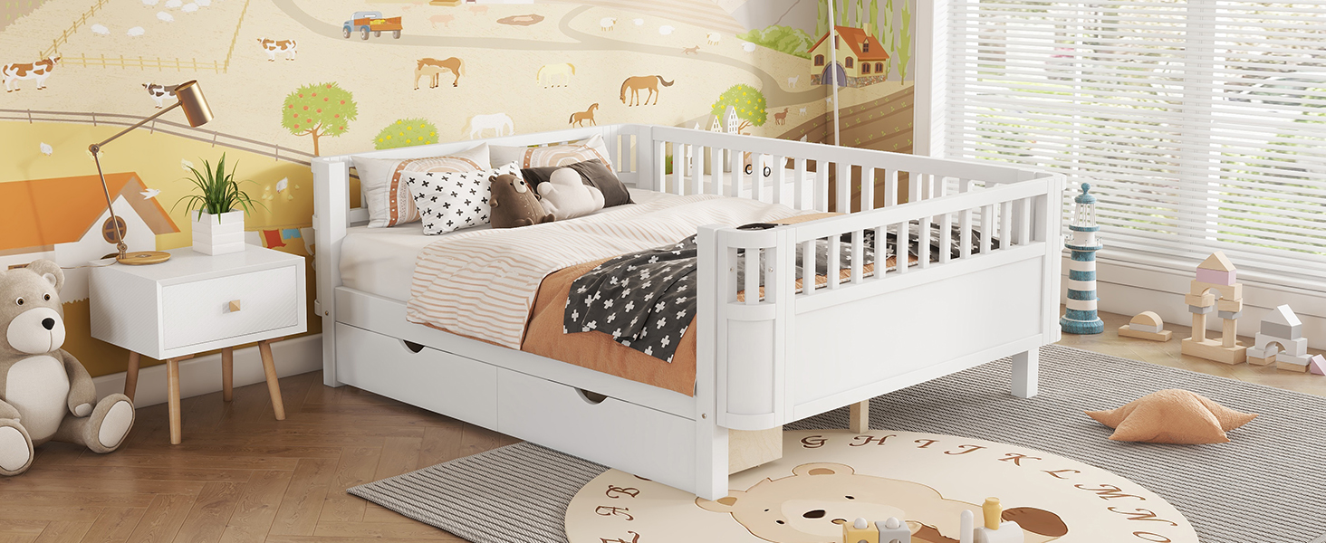 - Our full kids bed designed with the safety of your children in mind. 4 corners of the full bed is round shape and leg is at inside which protect your kids more safe and avoid bumps feet.