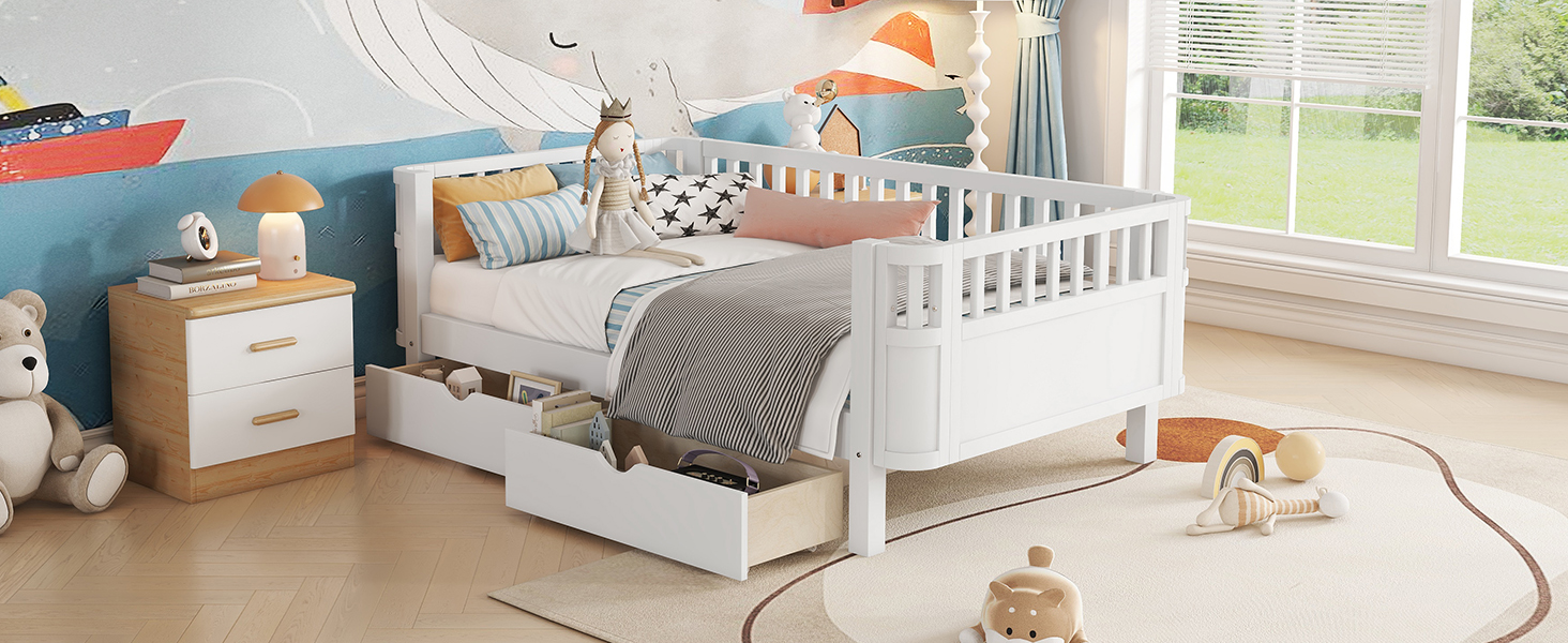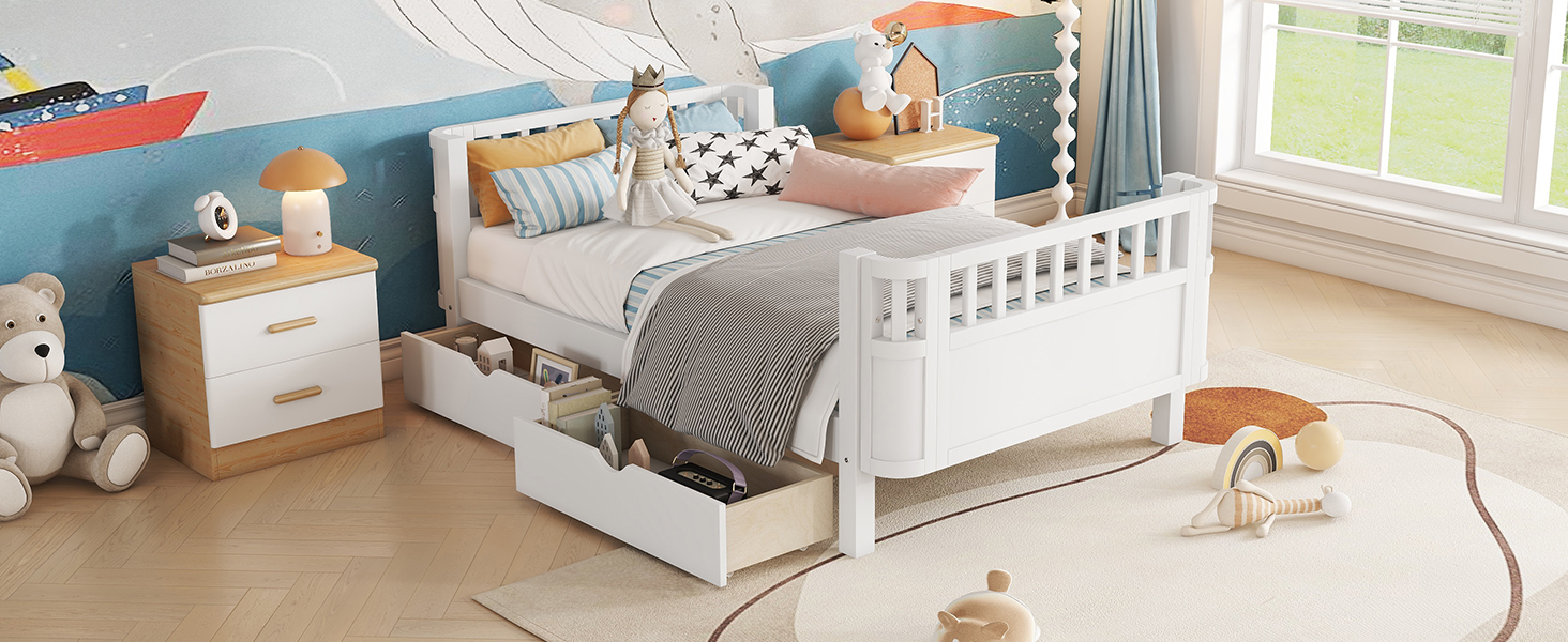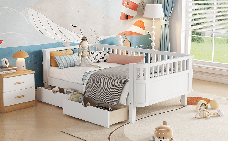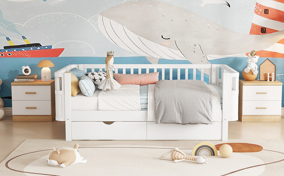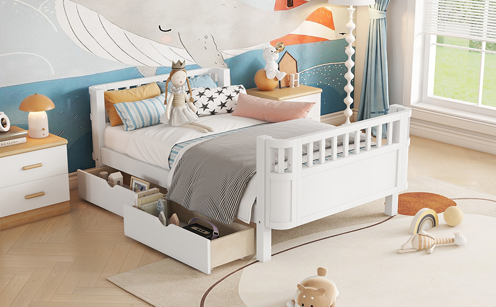 - Ample Storage: Featured with 2 wheeled drawers, this kids twin bed frame provides ample storage space under the bed, perfect for storing bed sheets, accessories or off-season clothing.