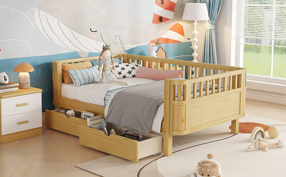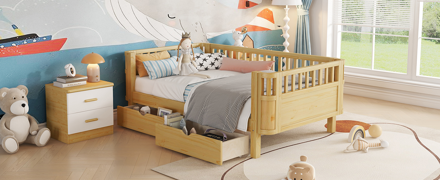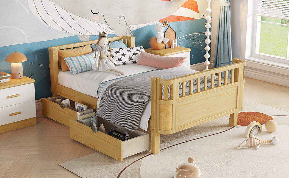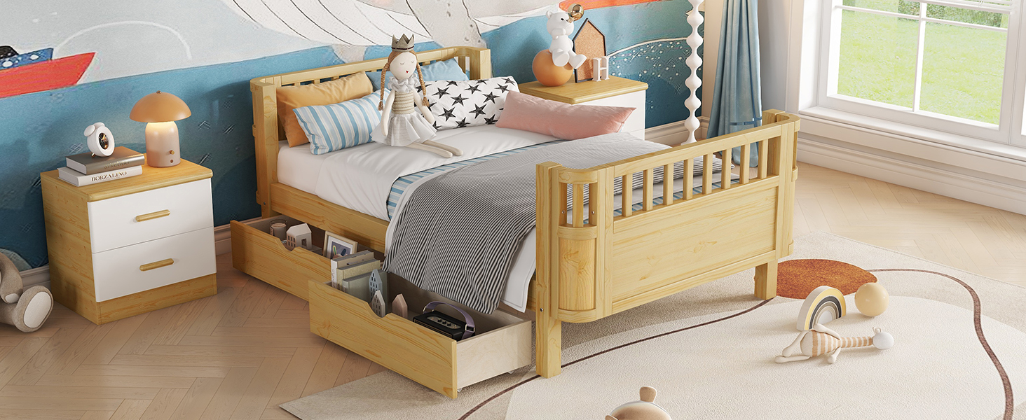 - Ample Storage: Featured with 2 wheeled drawers, this kids twin bed frame provides ample storage space under the bed, perfect for storing bed sheets, accessories or off-season clothing.