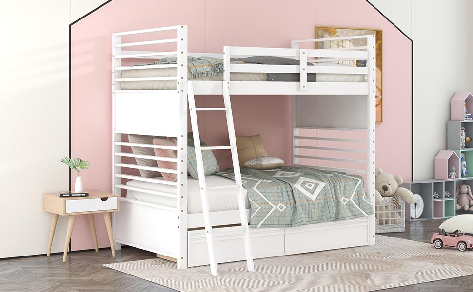 - [Maximized space]: The bunk bed takes up minimal space for the spontaneous sleepover guest. Even better, a pair of drawers offers extra space for clothes and bedtime stories down below. Functional and aesthetic, this bunk bed will enhance any bedroom.