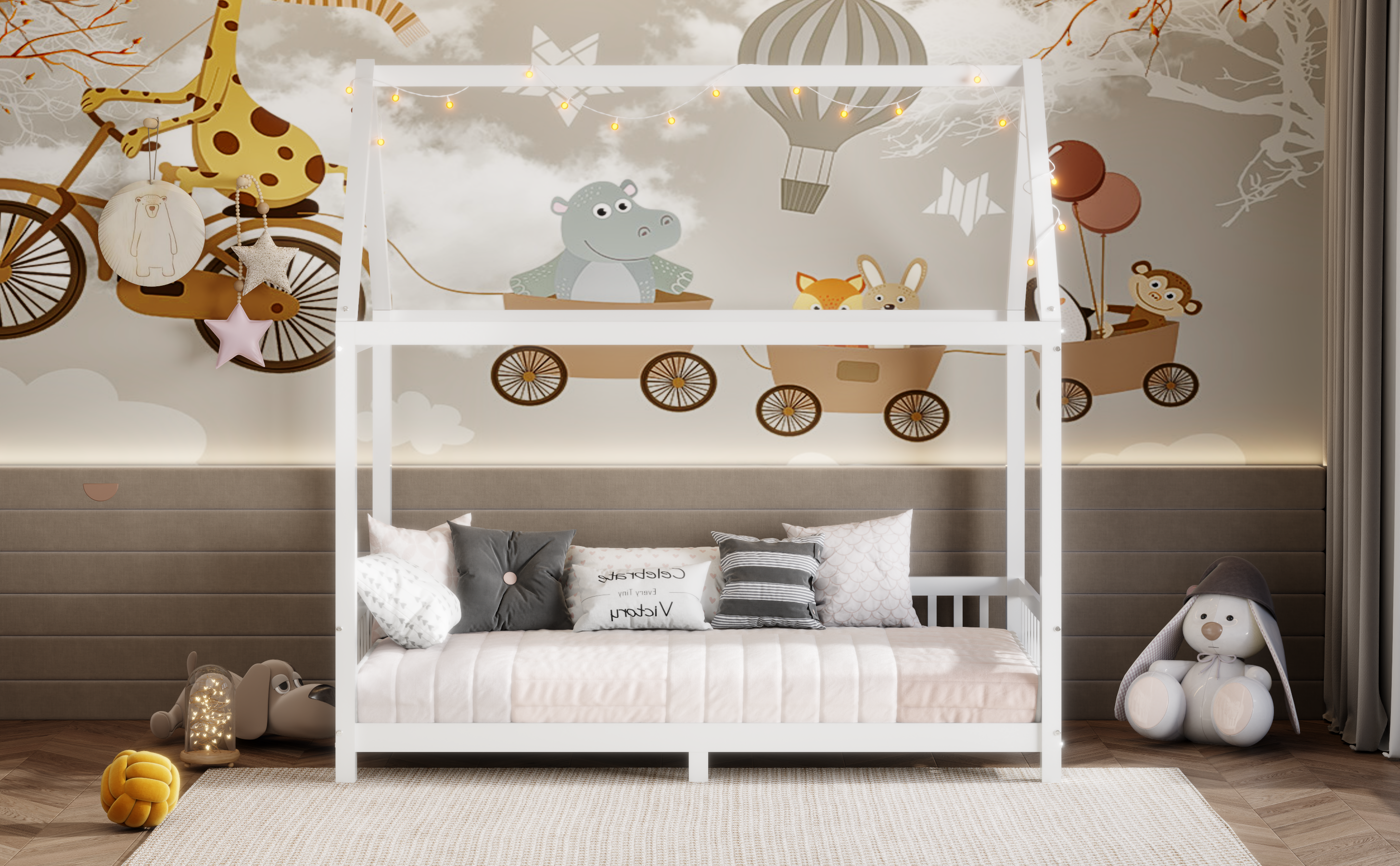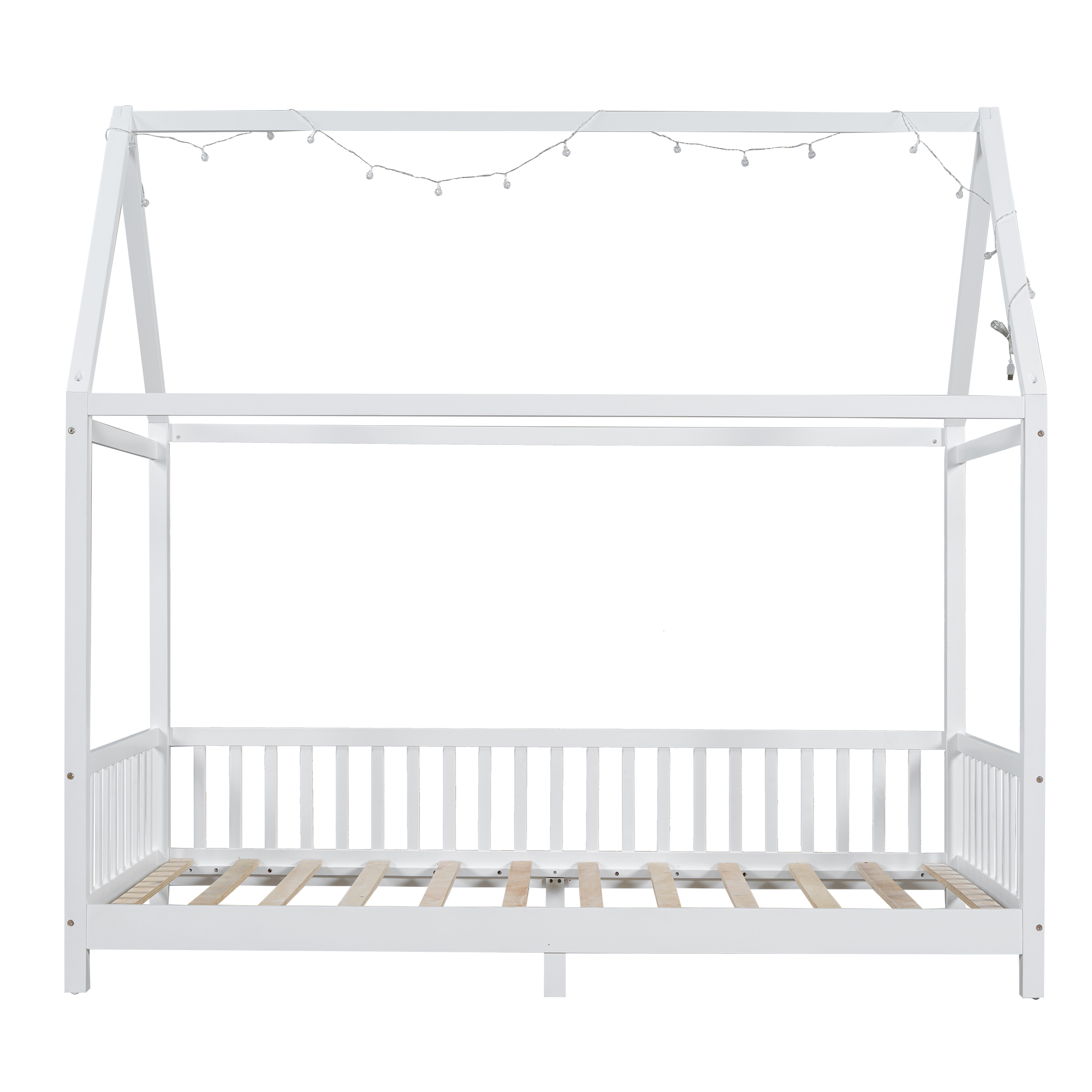 - [House-Shaped Bed] The house bed featuring a classic house-shaped, this imaginative bed is equipped with a whimsical sky roof and uniquely shaped guardrail for a fun bedroom environment that your child will love.