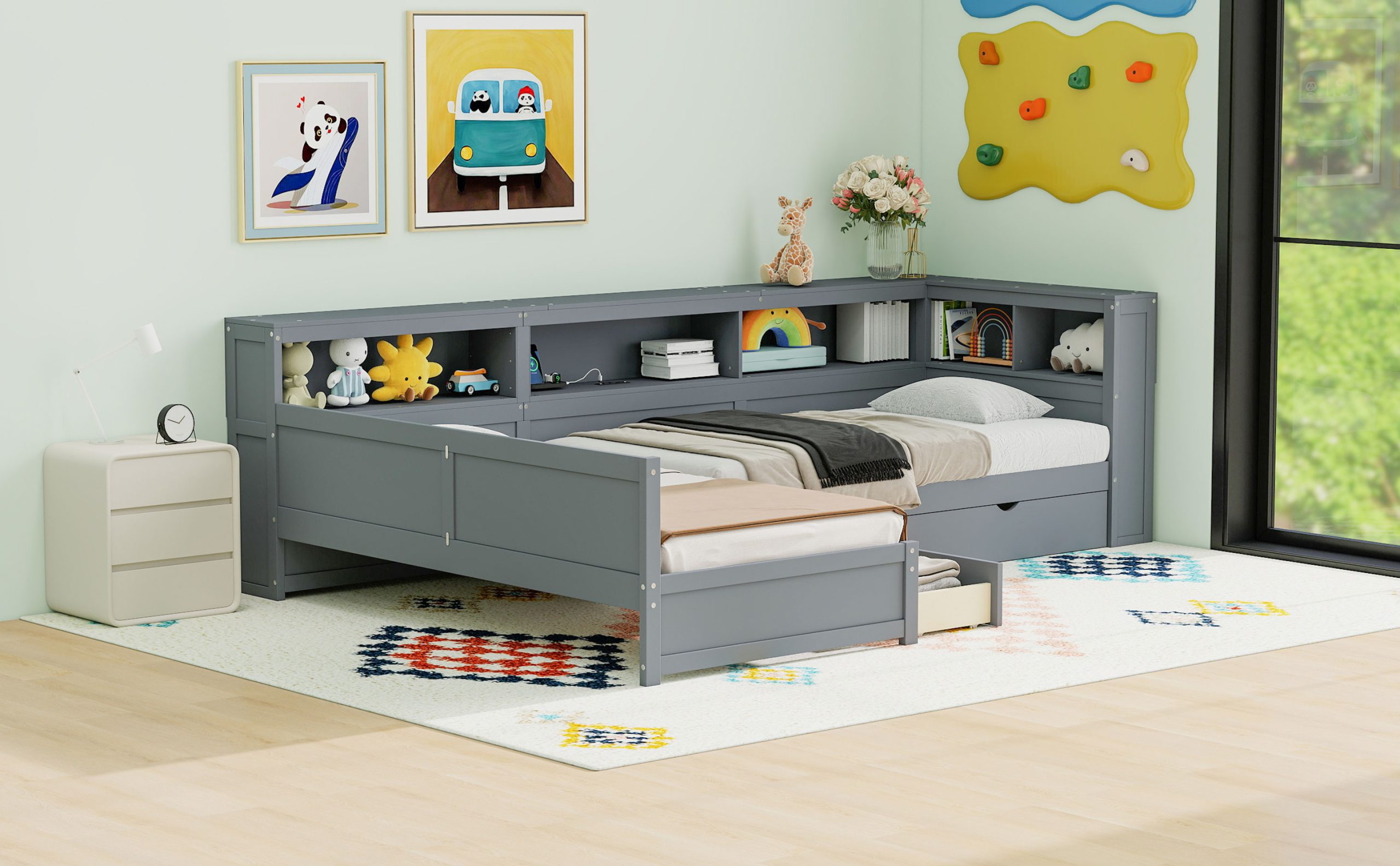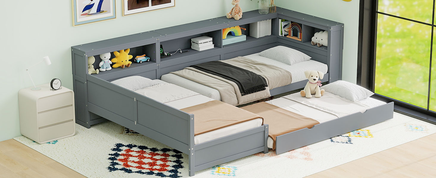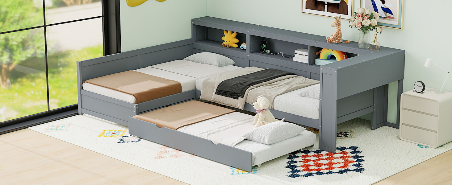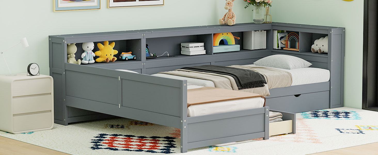 - [L-Shaped Platform Bed] Designed for the maximum of comfort and with a space-saving idea in mind, this L-shape bed is a perfect complement to any small space.