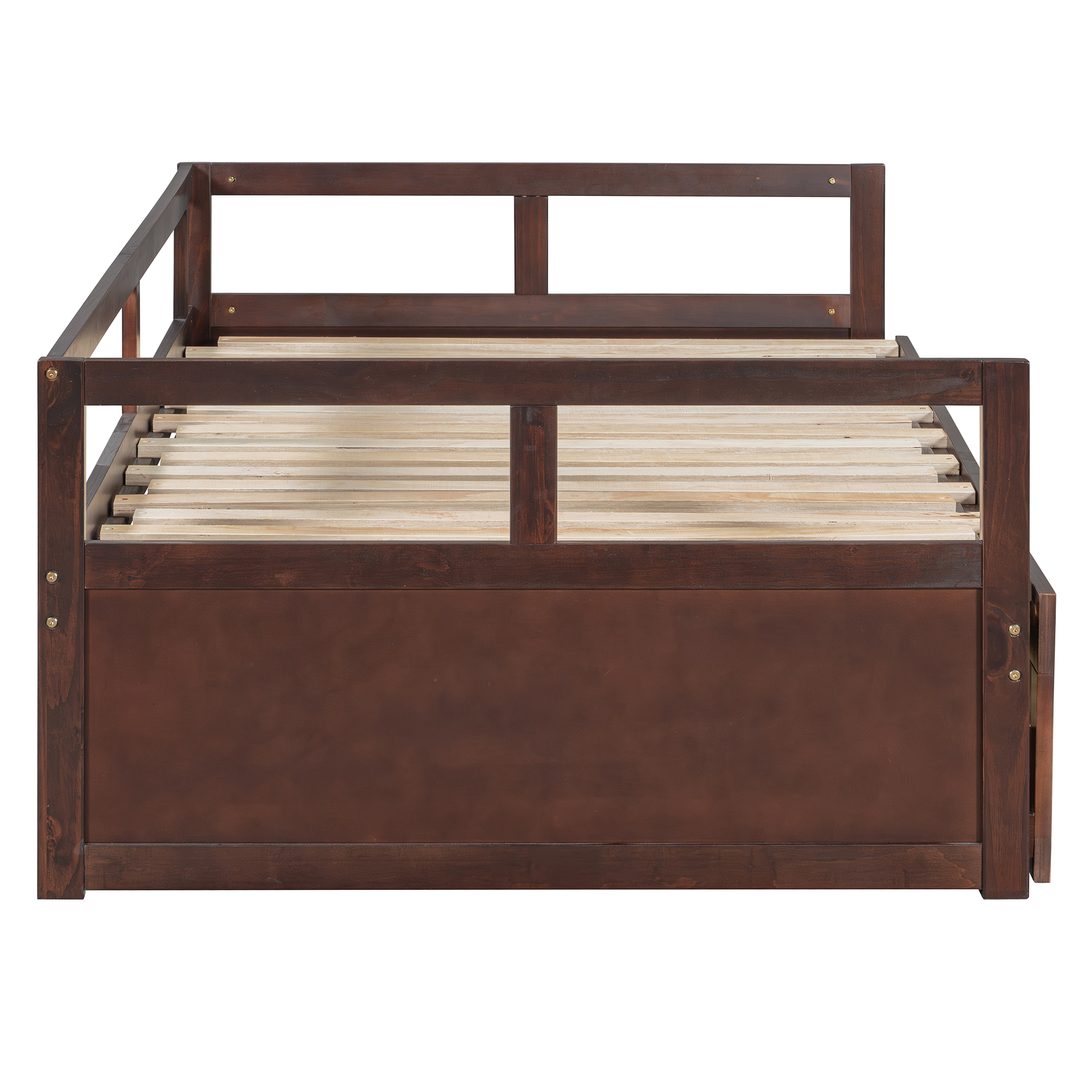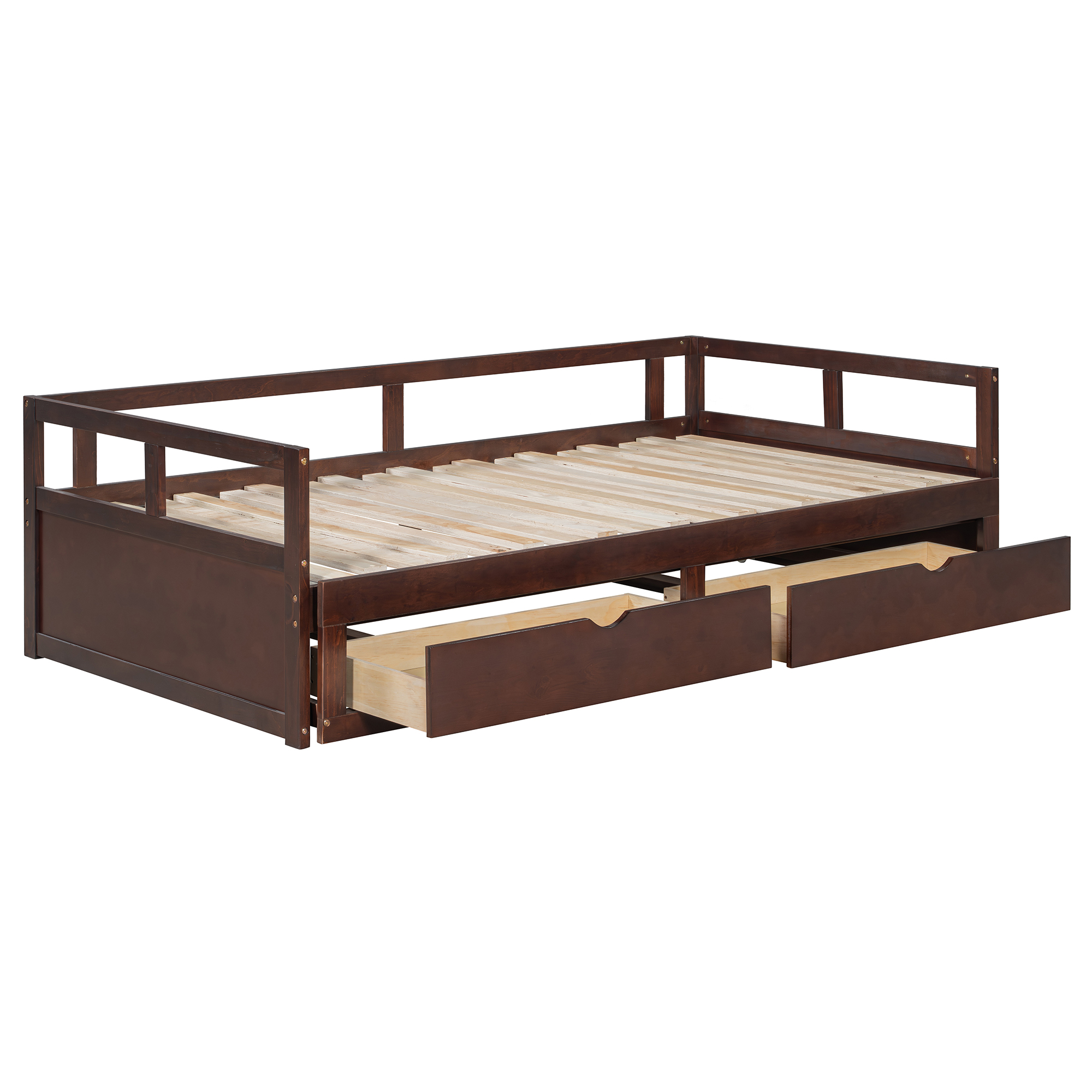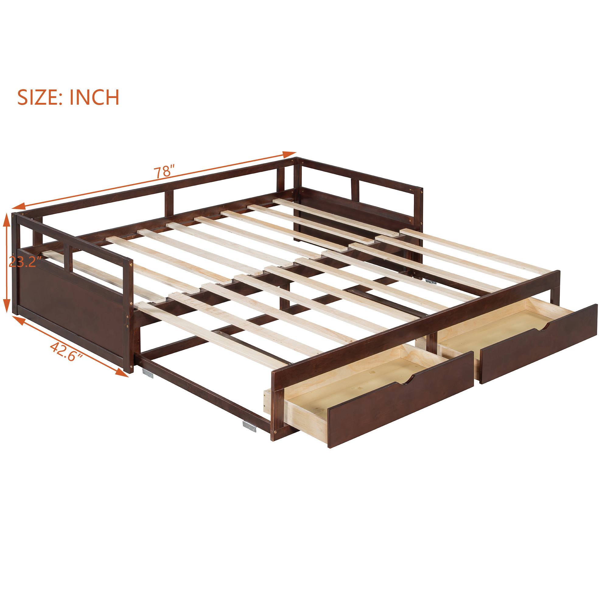 - [Twin to King Design] When the trundle is pulled apart, this daybed can be expanded from twin size to King size.The twin size is suitable for children or daily use, but when the guests arrive, King size is the best choice.
