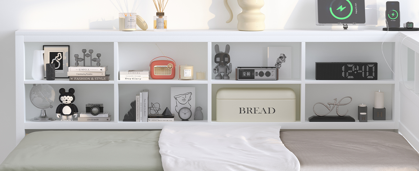 - Space-saving:The daybed includes one trundle, which can be rolled out to provide extra sleeping space. This design is ideal for families with children or users who need to host guests frequently. There is a double-layer storage shelf next to the bed, where users can store bedding, toys and other items.