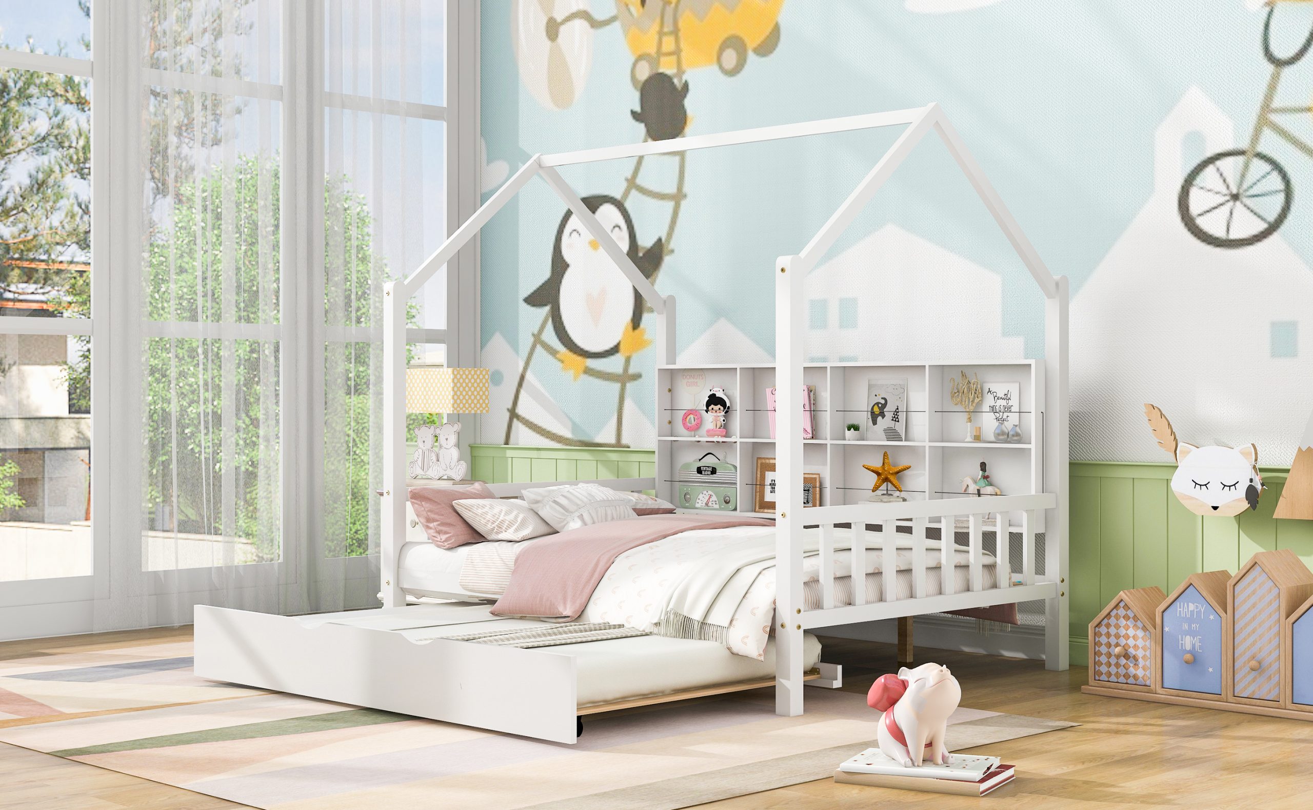 The full size bed is perfect for my child, providing them with plenty of space to sleep and move around. The house-shaped framework and trundle feature provide an additional touch of playfulness to the room.