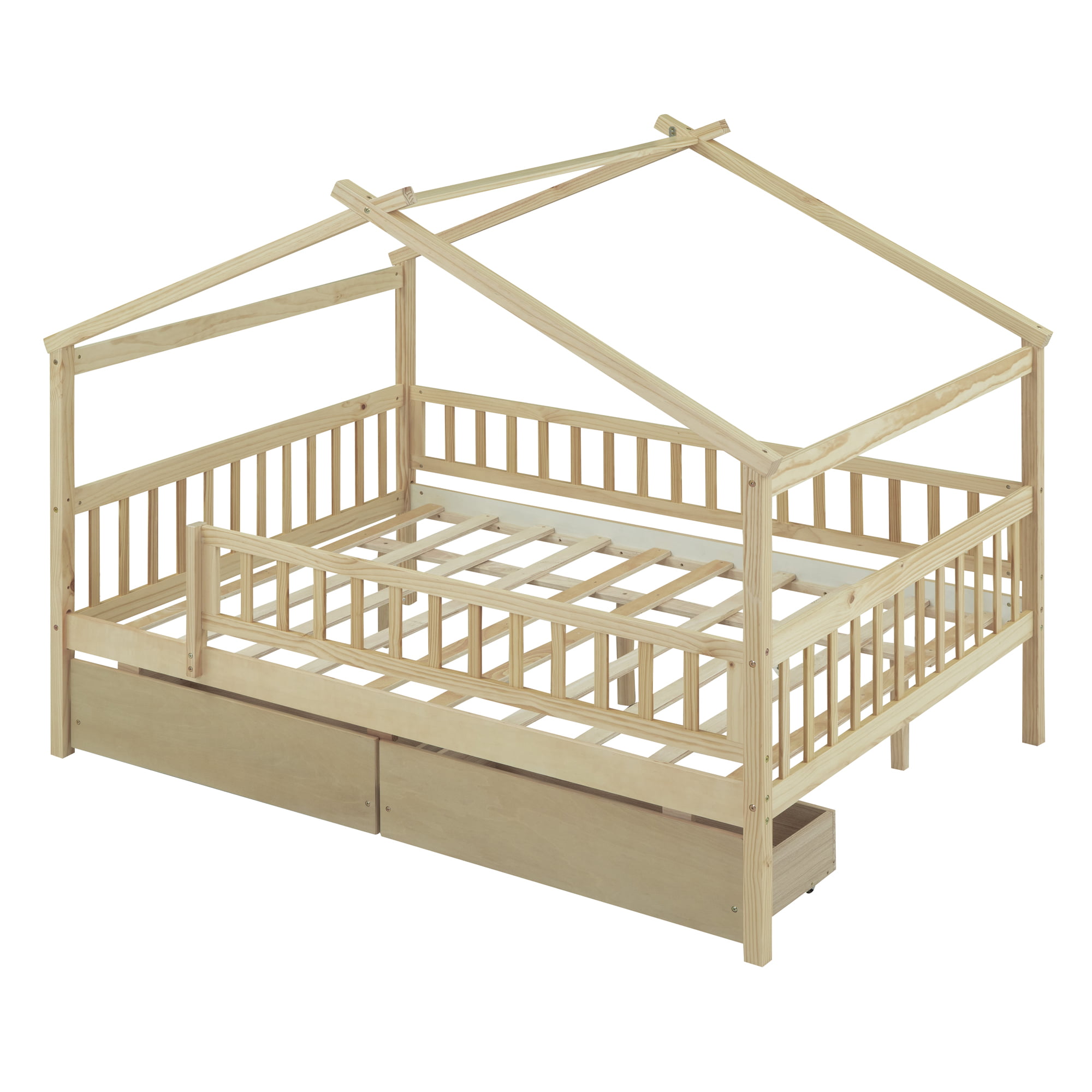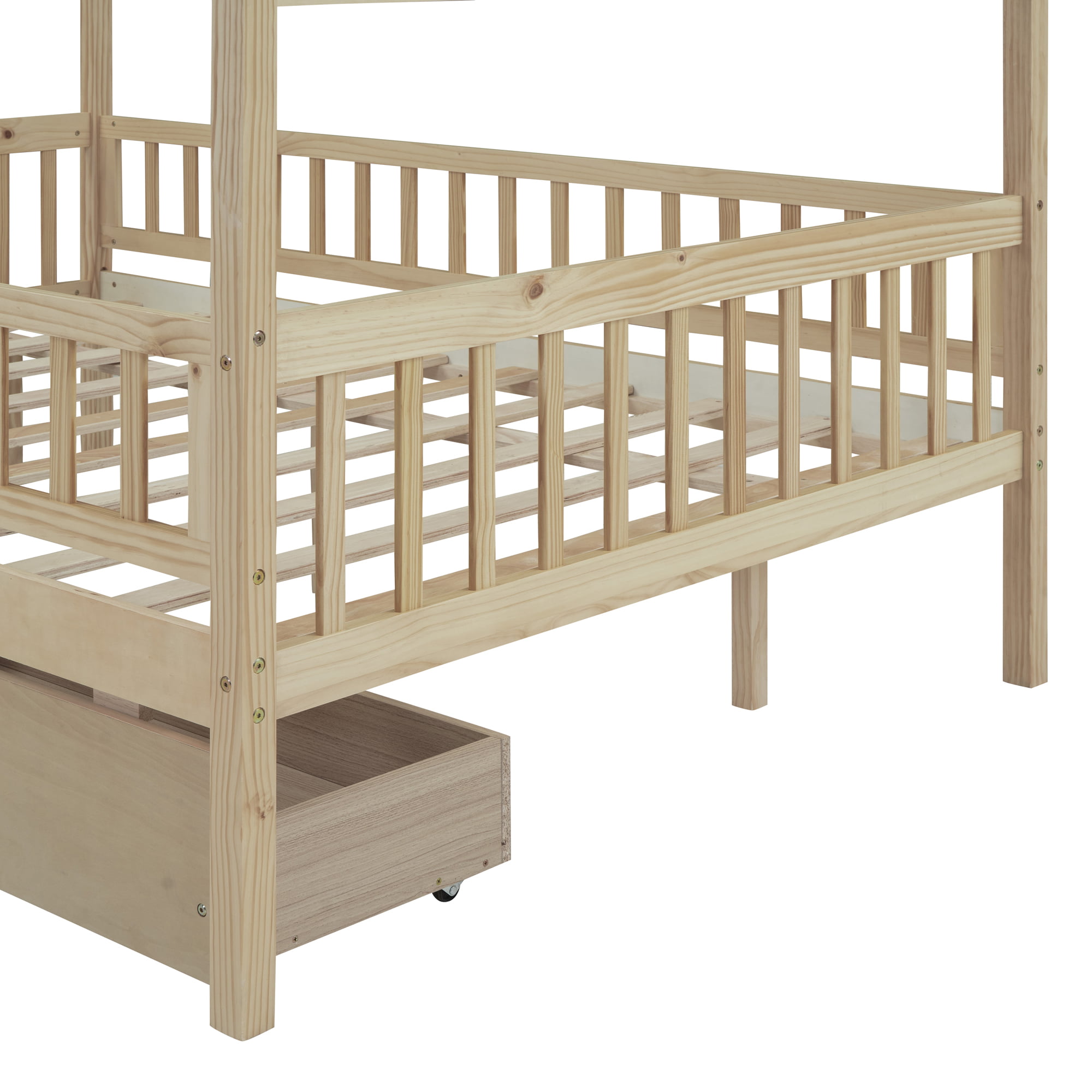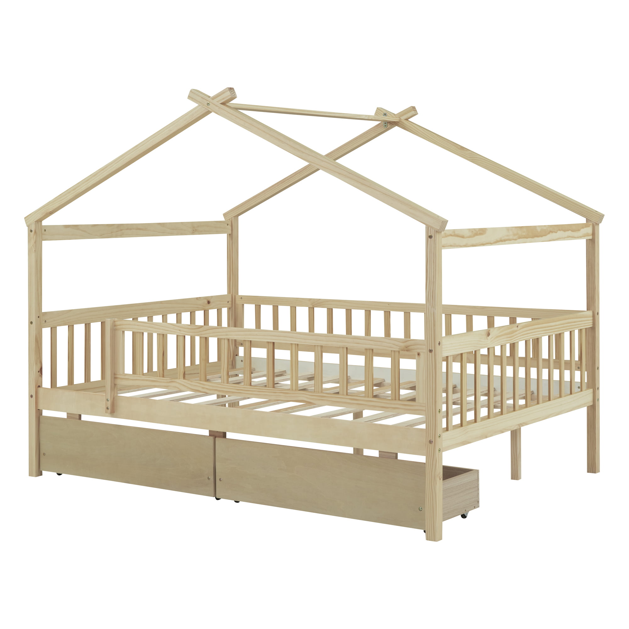 - [Spacious Storage] The wood house platform bed with two drawers offer storage space for clothes and toys, Maximize space and help to develop your child’s habit of storage. It’s a perfect space-saving solution to you.