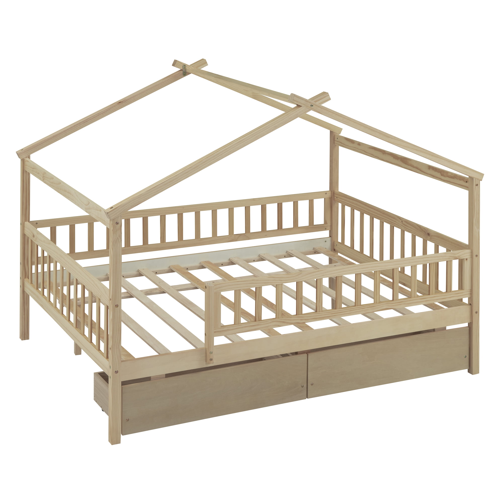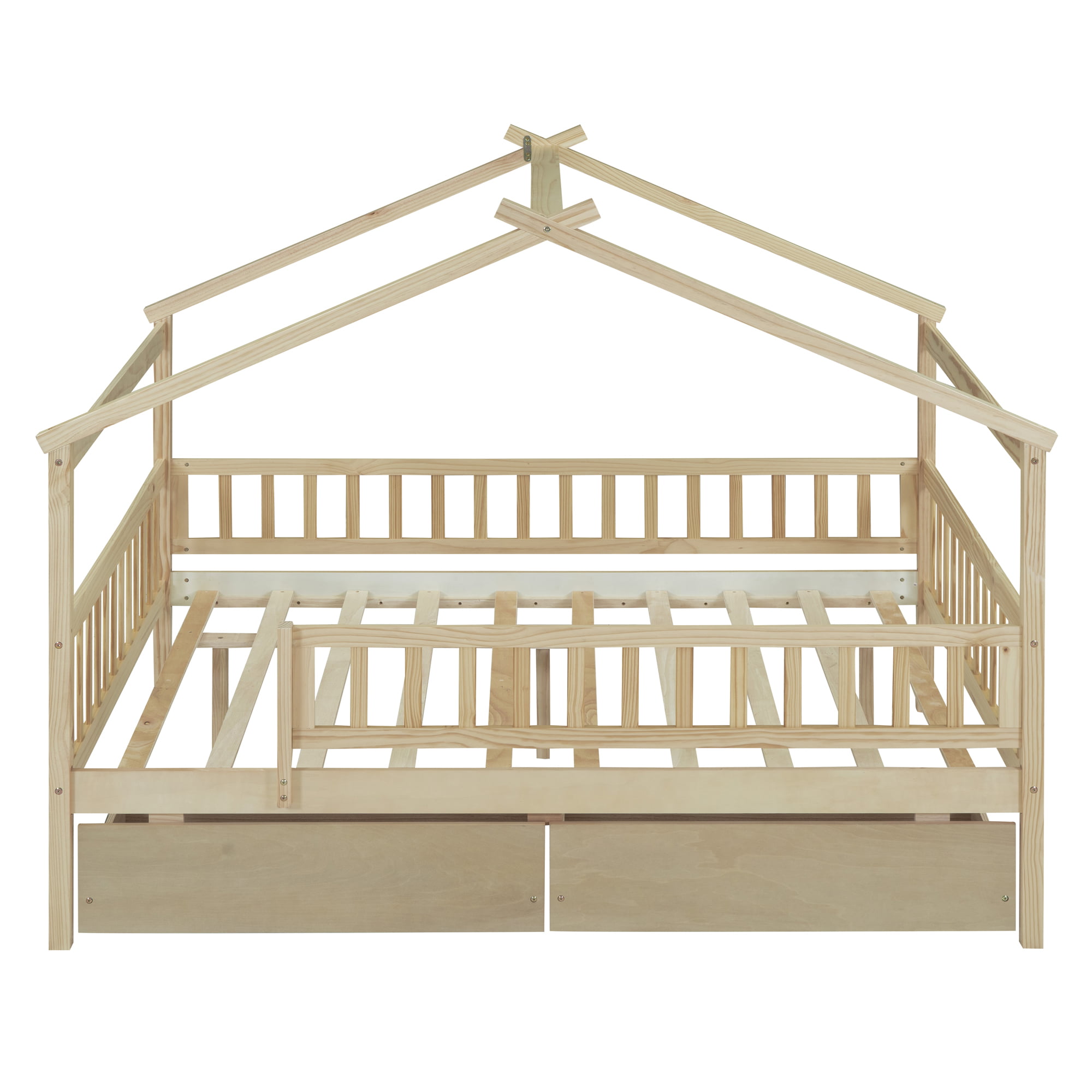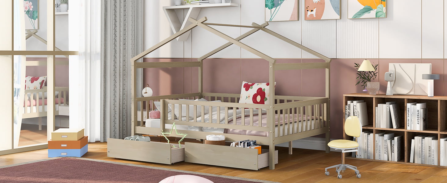 - [Spacious Storage] The wood house platform bed with two drawers offer storage space for clothes and toys, Maximize space and help to develop your child’s habit of storage. It’s a perfect space-saving solution to you.