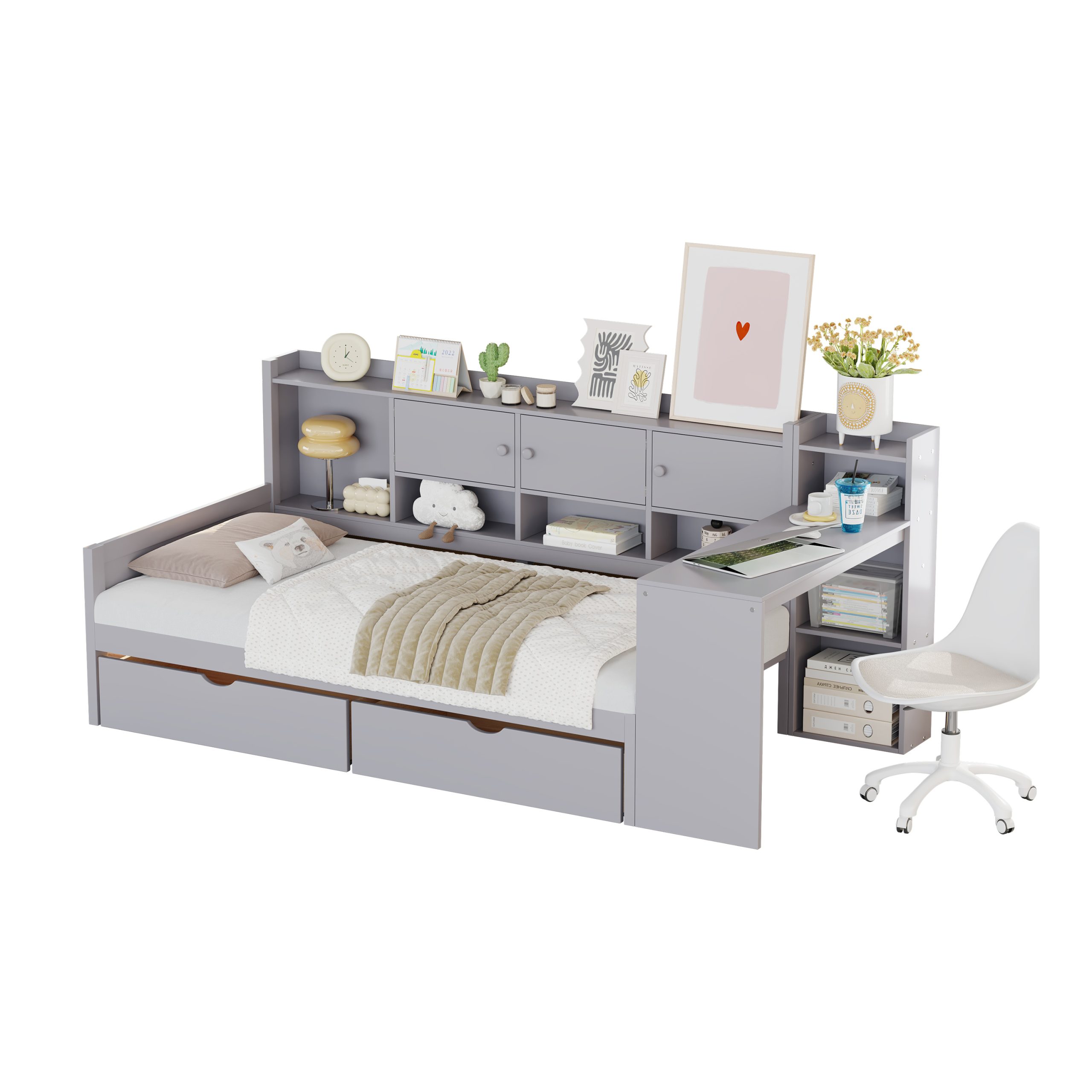 - Versatile Study Desk with Adjustable Placement: The study desk can be installed at either the head or foot of the daybed, allowing for a customizable setup to suit personal preferences and room layouts. The desk is complemented by a built-in bookshelf, providing convenient storage for books, stationery, and other essentials,creating a functional and organized workspace perfect for studying, working, or creative activities.