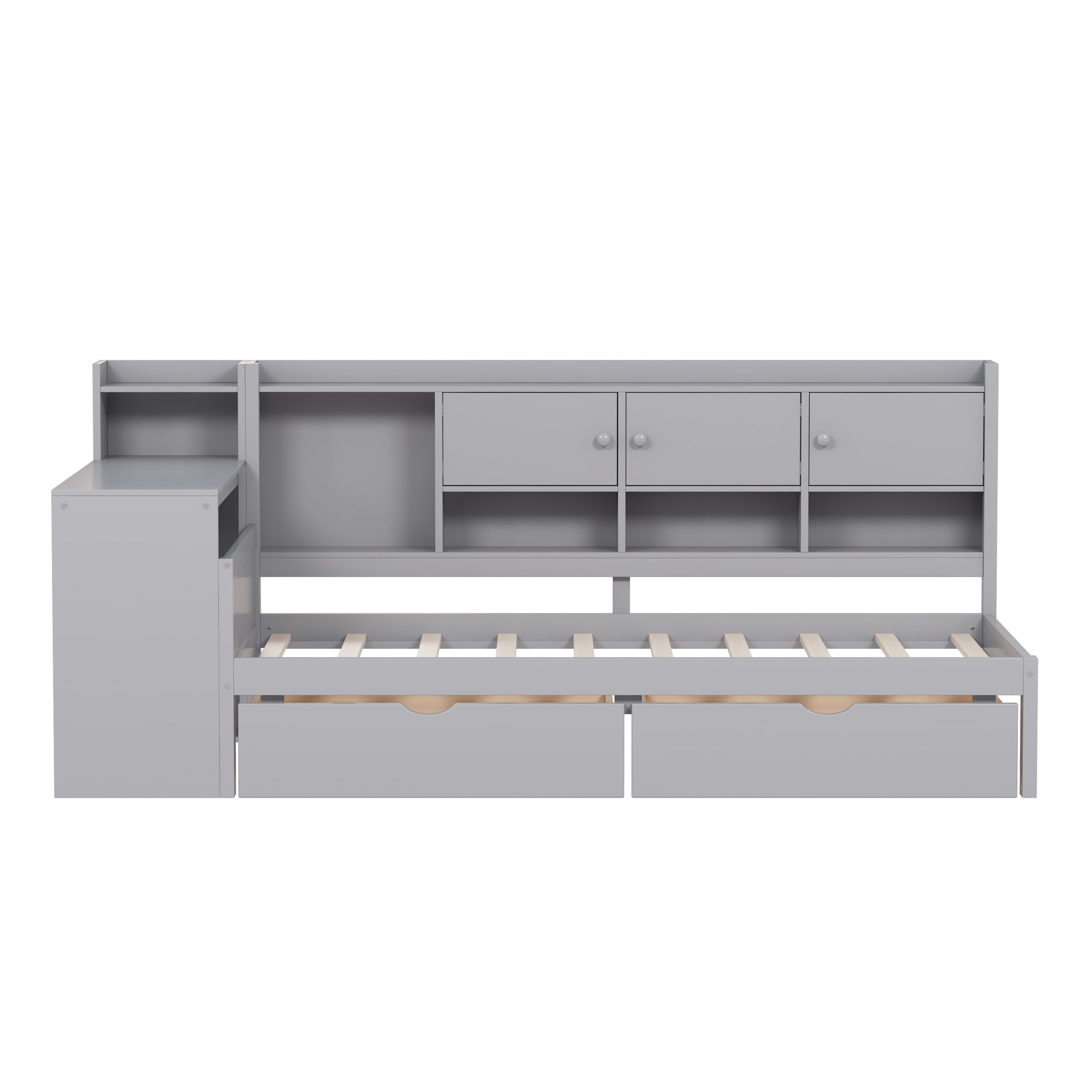 - Daybed with Abundant Storage: Equipped with a variety of open shelves, 3 storage cabinets and 2 large pull-out drawers beneath the bed, this wooden daybed offers ample space to store books, clothes, toys, bedding, and more. The well-organized storage design keeps essentials within easy reach, making it perfect for optimizing smaller living spaces.