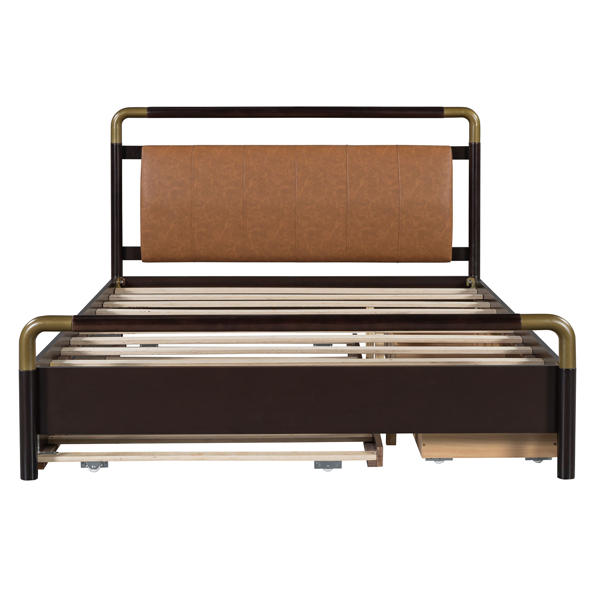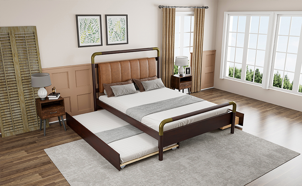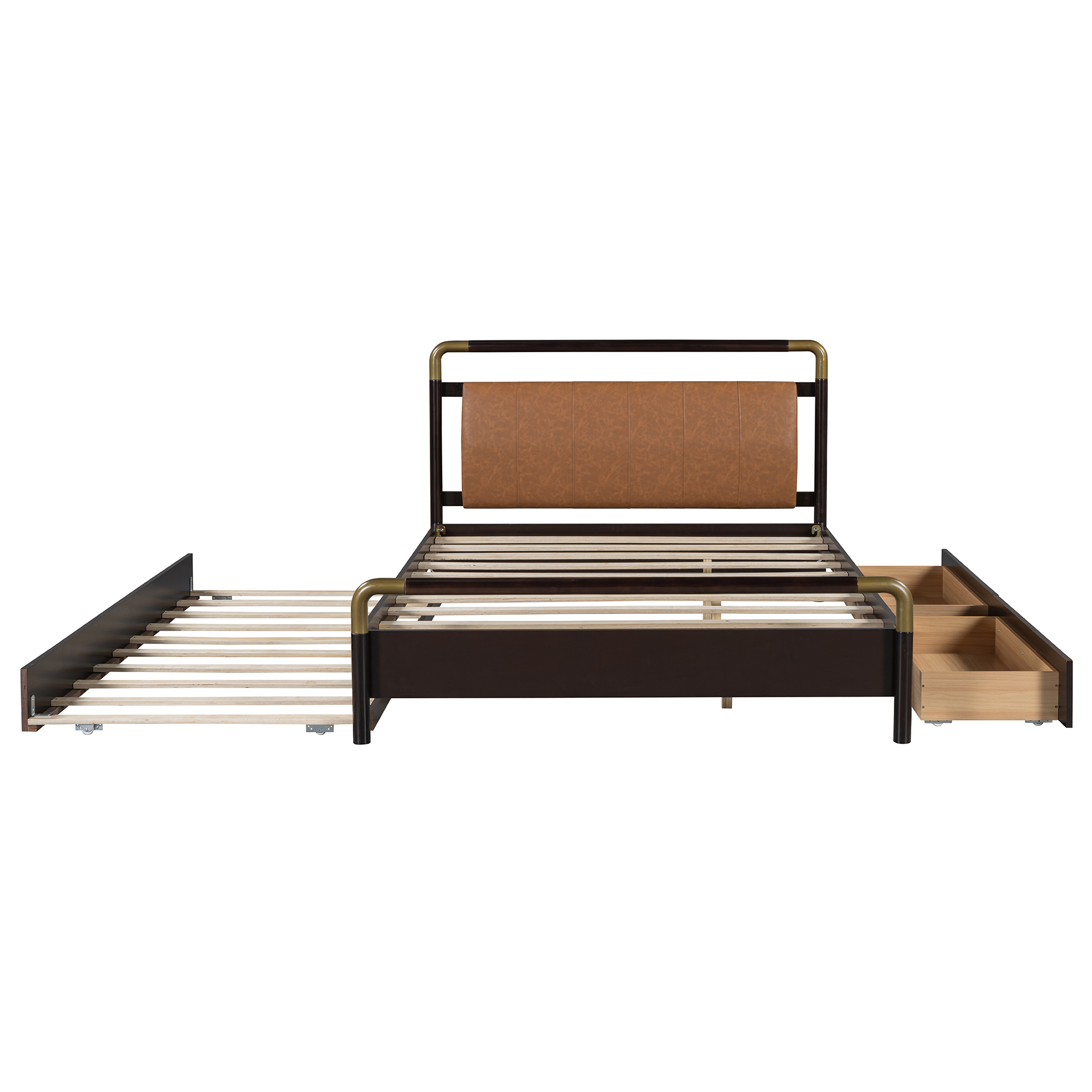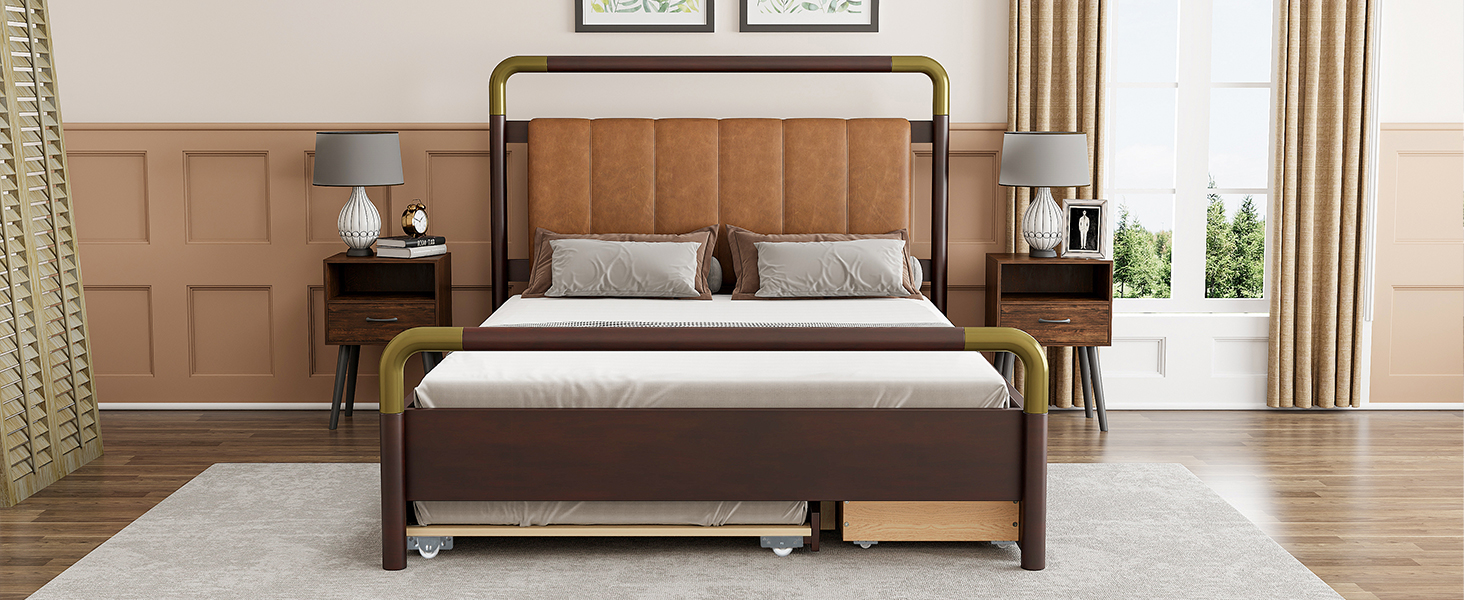 Wooden Queen Size Platform Bed With 2 Big Drawers and T-Xl Size Trundle