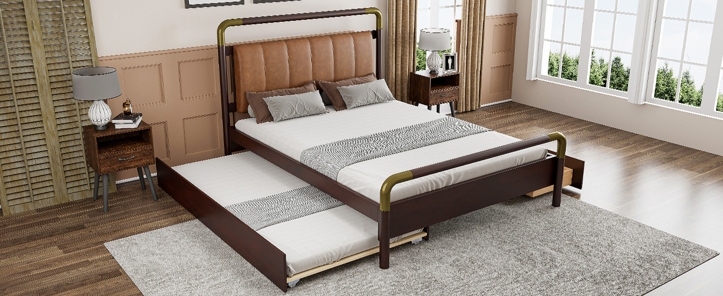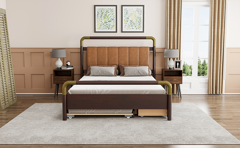 Upgrade your bedroom with our stylish Platform Bed, designed to bring both functionality and elegance to your space. This bed offers various style options, making it perfect for modern interiors. Featuring an additional trundle bed and two large drawers, it’s ideal for small spaces. The soft padded backrest adds comfort and sophistication, creating a cozy yet elegant atmosphere. Revitalize your bedroom with our Platform Bed and experience the perfect blend of style and functionality. Transform your space today and discover the joy of a clutter-free, beautifully designed room.