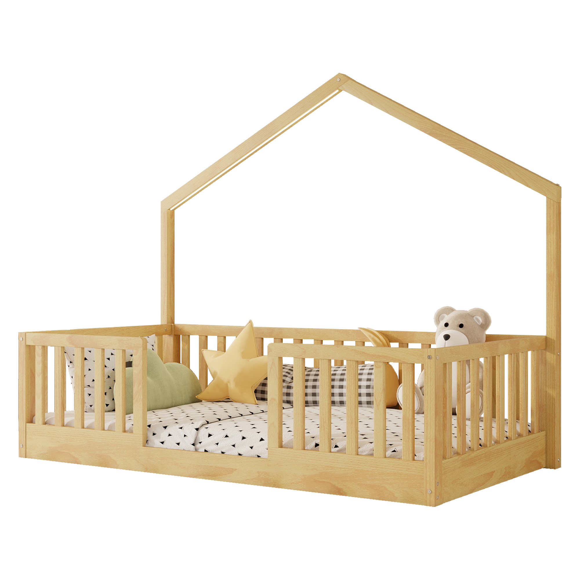 - Sturdy and Durable Construction: This floor bed made from pine, MDF and polywood, this bed frame features a robust construction that ensures long term durability and stability, offering reliable support for kids.