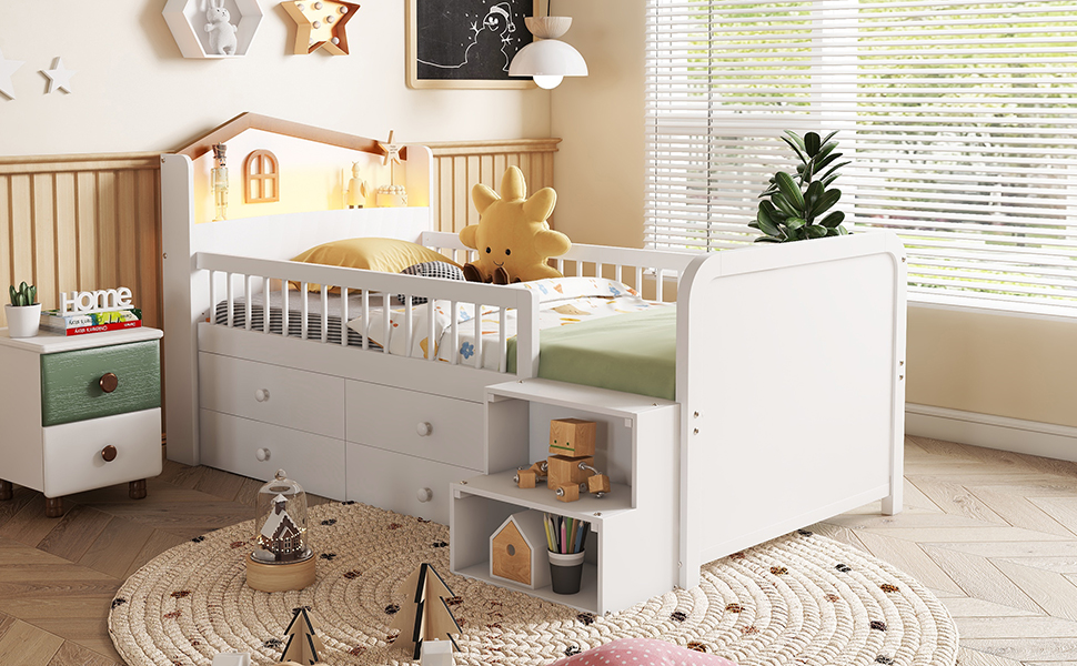 - [House Shape Design]: A house shaped headboard, complete with a window, this bed adds a rustic, country feel to your room. The headboard can store your clock, phones and other small things.